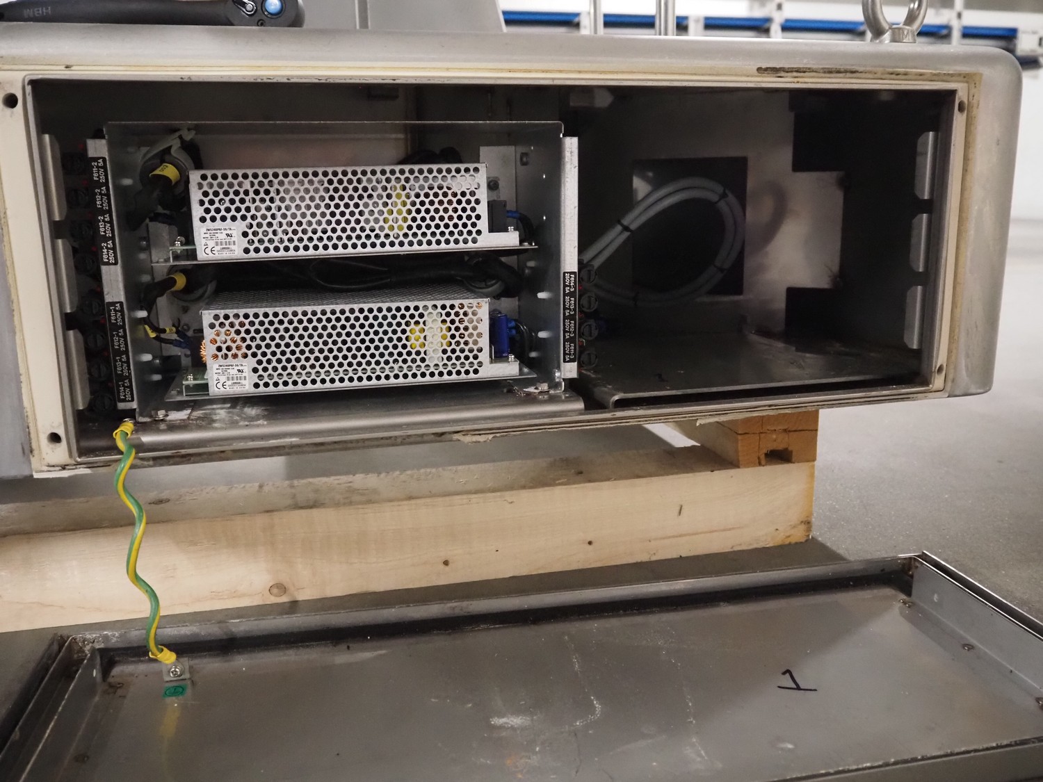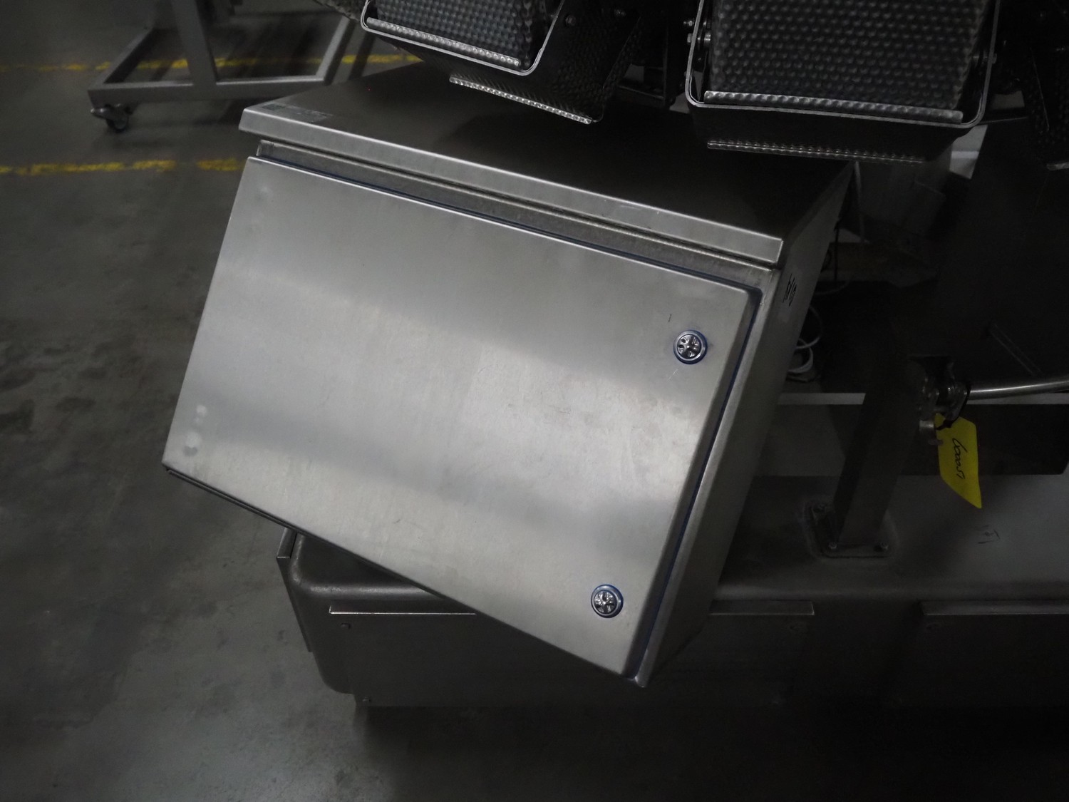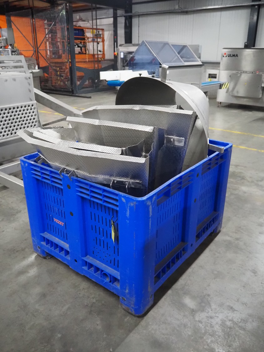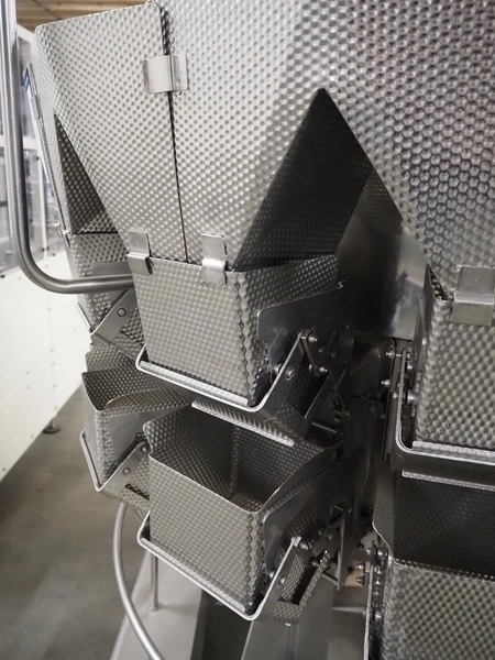 Ishida 14-heads multihead weigher, model: CCW-EM-214W-S/50-WR, serial number: 555175, year of construction: 2005, 220 V, 1 Ph, 50 Hz, 7 A, weight: 920 kg, dimensions: 1850 mm x 1700 mm x 2200 mm. Including pallet box with parts, dimensions pallet box: 1200 mm x 1000 mm x 1250 mm.