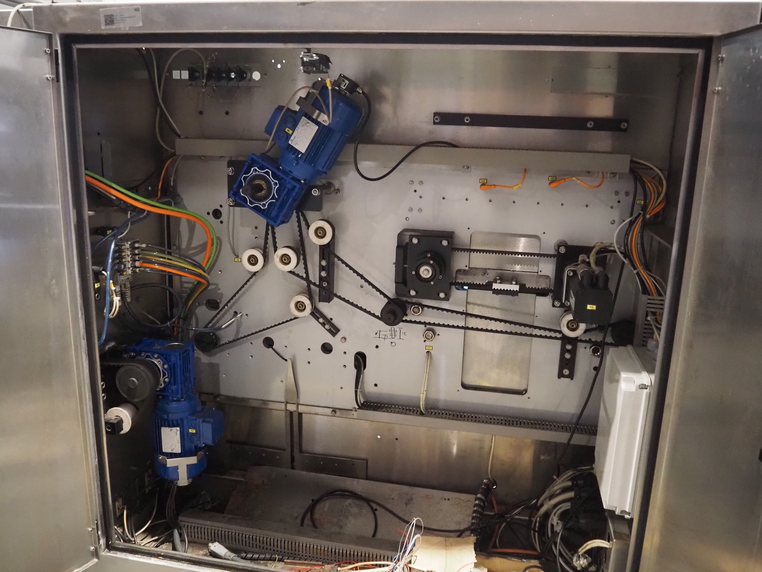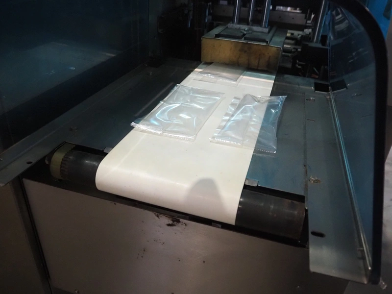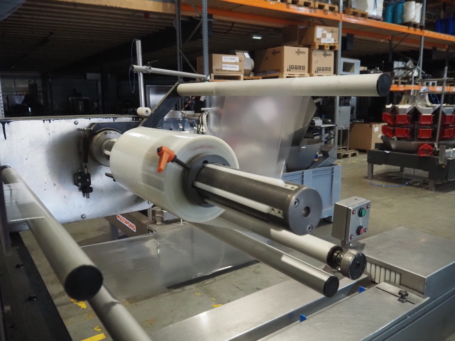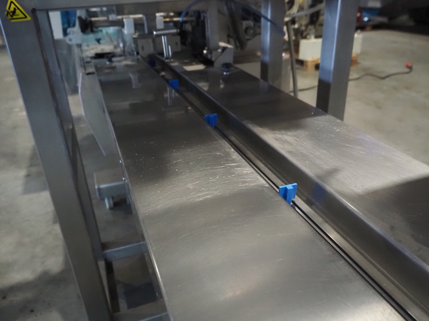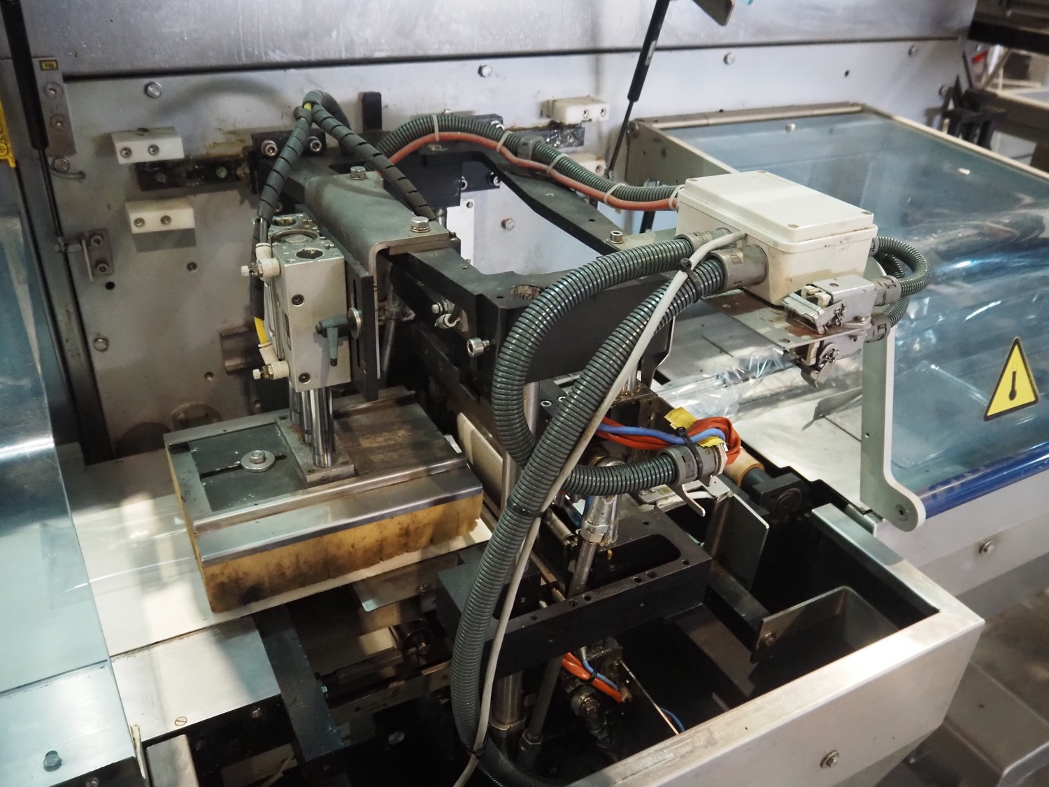Ulma mobile flowpacker, model: Nevada BS, number: 1300052, year of construction: 2003, 380 V, 50 Hz, 23 A, 5 kW, ELS labelling machine, infeed belt with dividers, belt width: 150 mm, distance between dividers: 300 mm, divider height: 30 mm, seal width: 300 mm, plastic outfeed belt, belt width: 200 mm, total dimensions: 4500 mm x 1300 mm x 1150 mm.