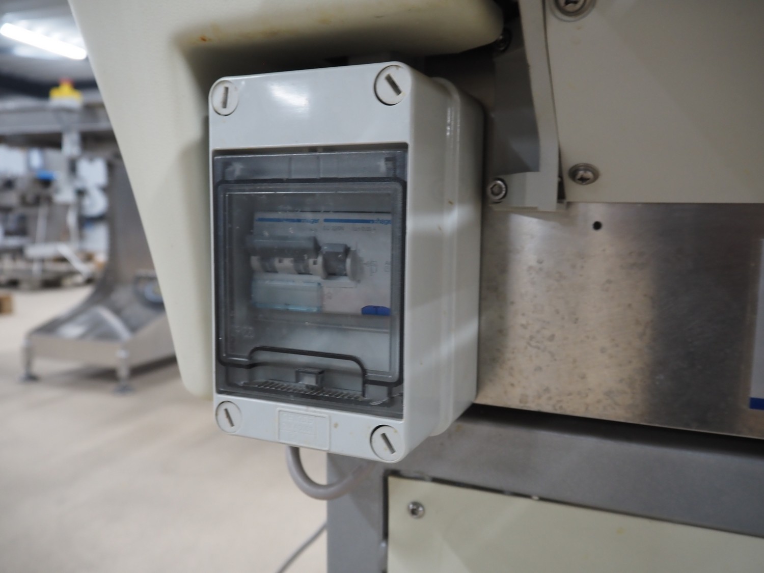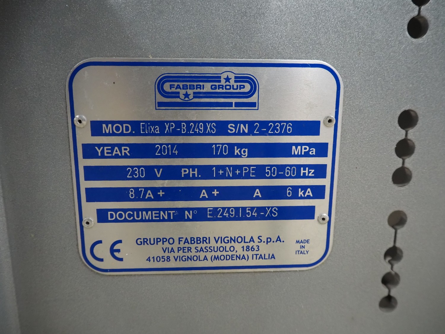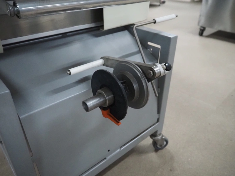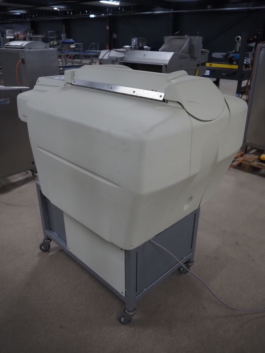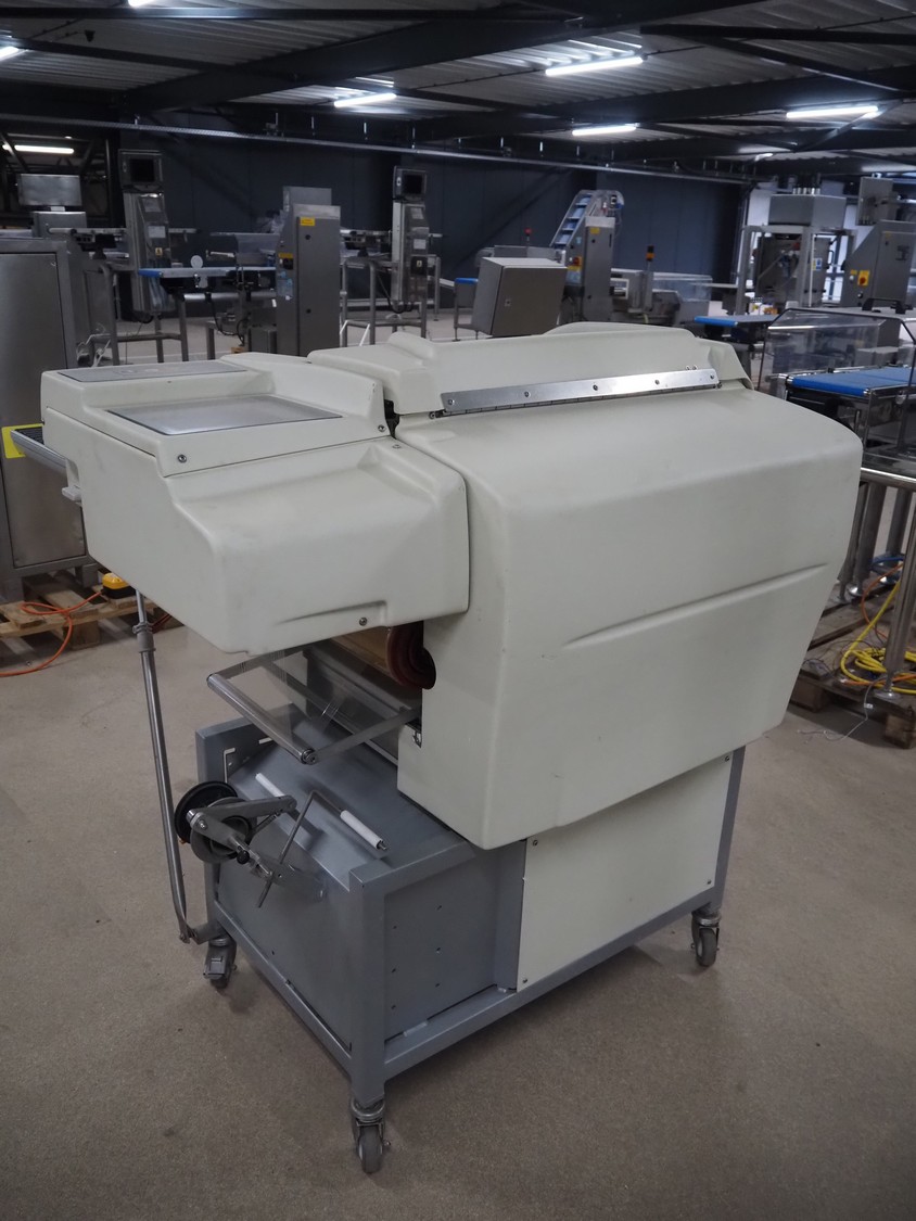Fabbri Group mobile packaging machine, model: Elixa XP-B.249.XS, serial number: 2-2376, year of construction: 2014, 230 V, 1 Ph, 50-60 Hz, 8.7 A, plastic string infeed belt, belt width: 330 mm, plastic outfeed belt, belt width: 340 mm, plastic outfeed rollers, roller width: 300 mm, total dimensions: 1350 mm x 1250 mm x 1300 mm.