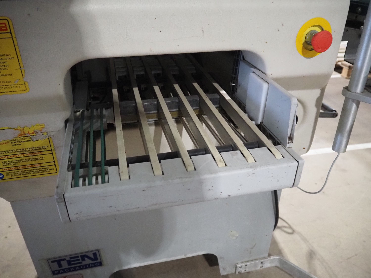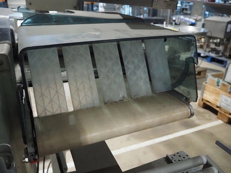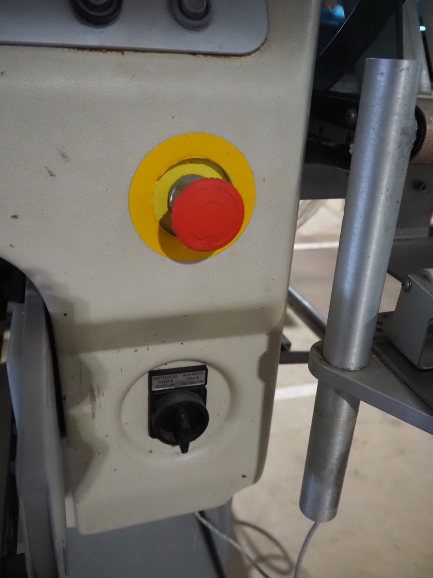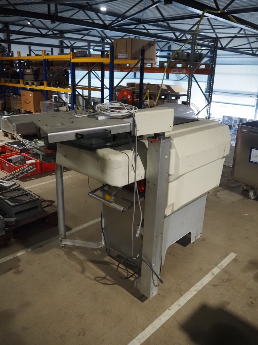 Gruppo Fabbri S.p.A. packaging machine, model: Elixa Plus XS-B.228.XS, serial number: 1/13420, year of construction: 2010, 230 V, 1 Ph, 50-60 Hz, 8,6 A, weight: 170 kg, wire infeed belt, belt width: 662 mm, plastic outfeed belt, belt width: 340 mm, total dimensions: 1500 mm x 1300 mm x 1350 mm.
