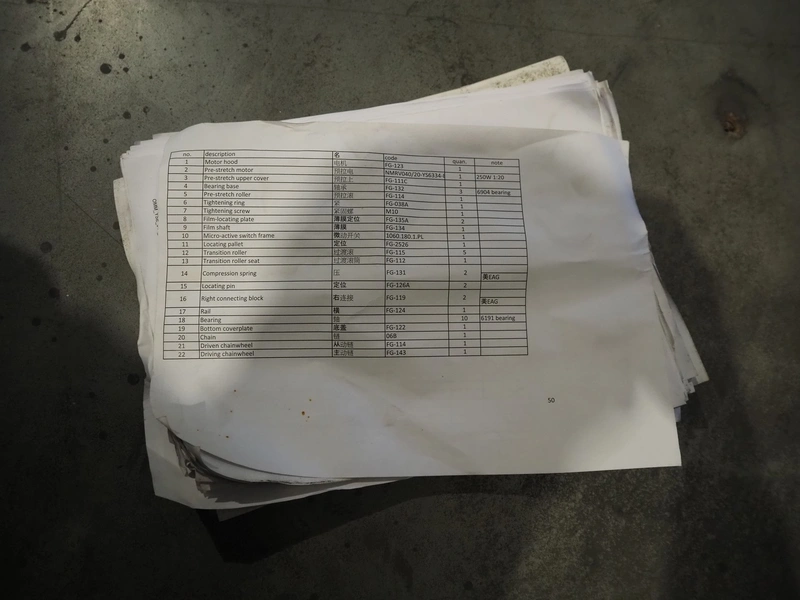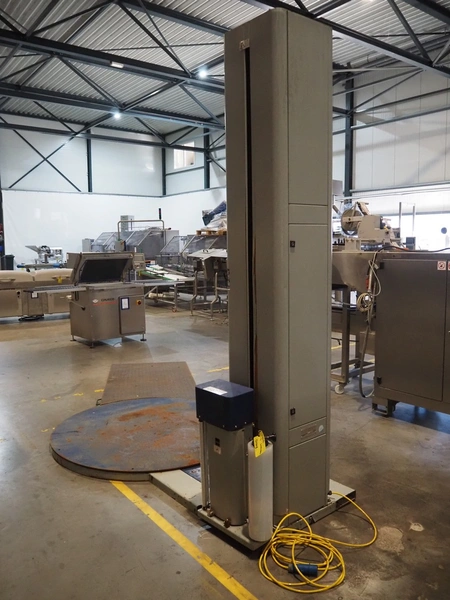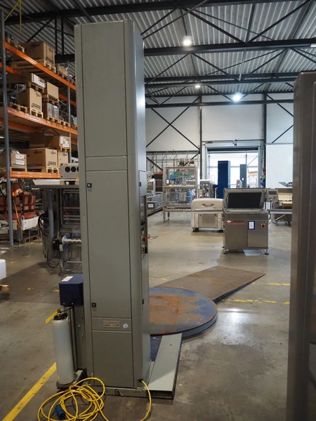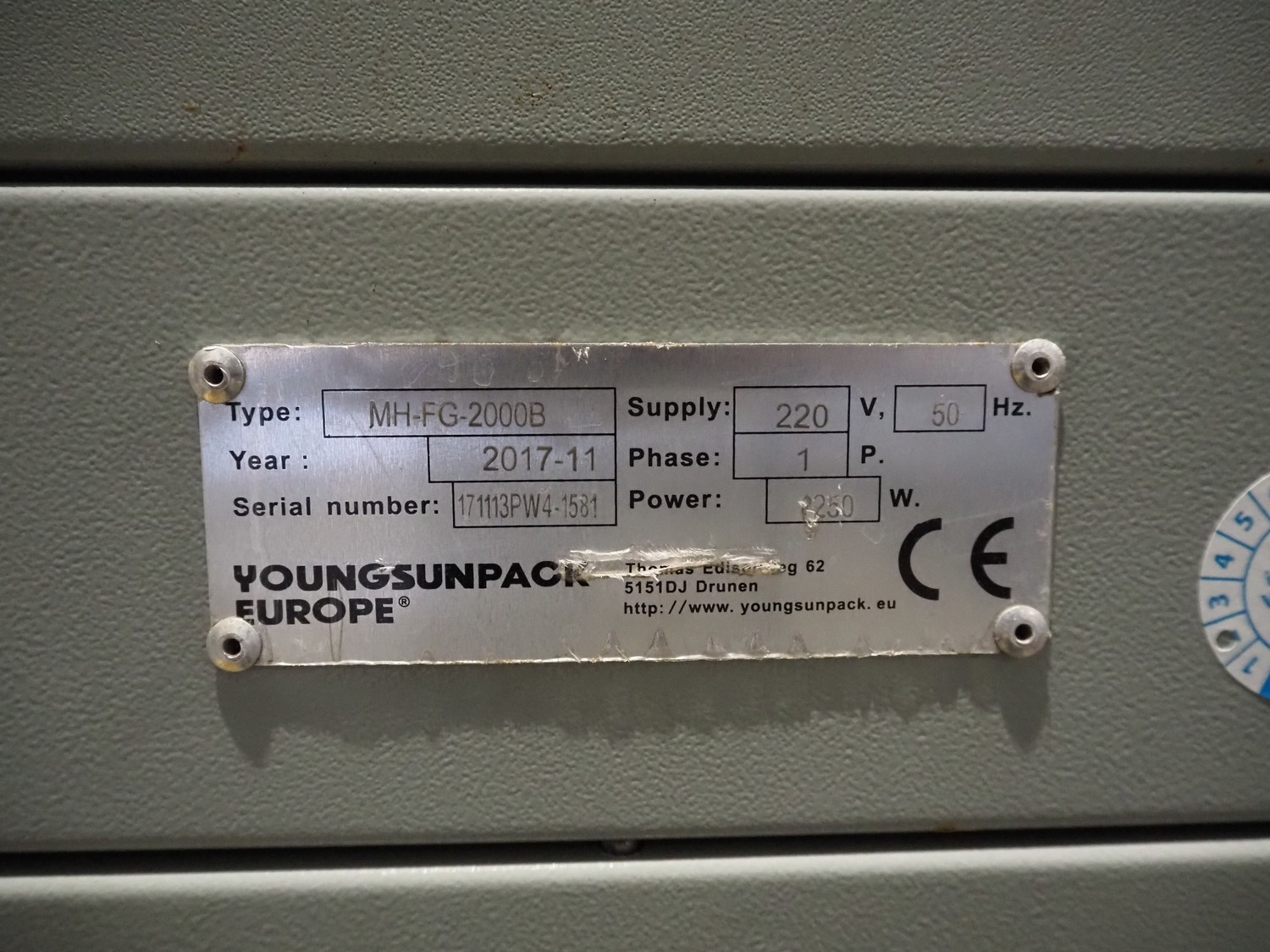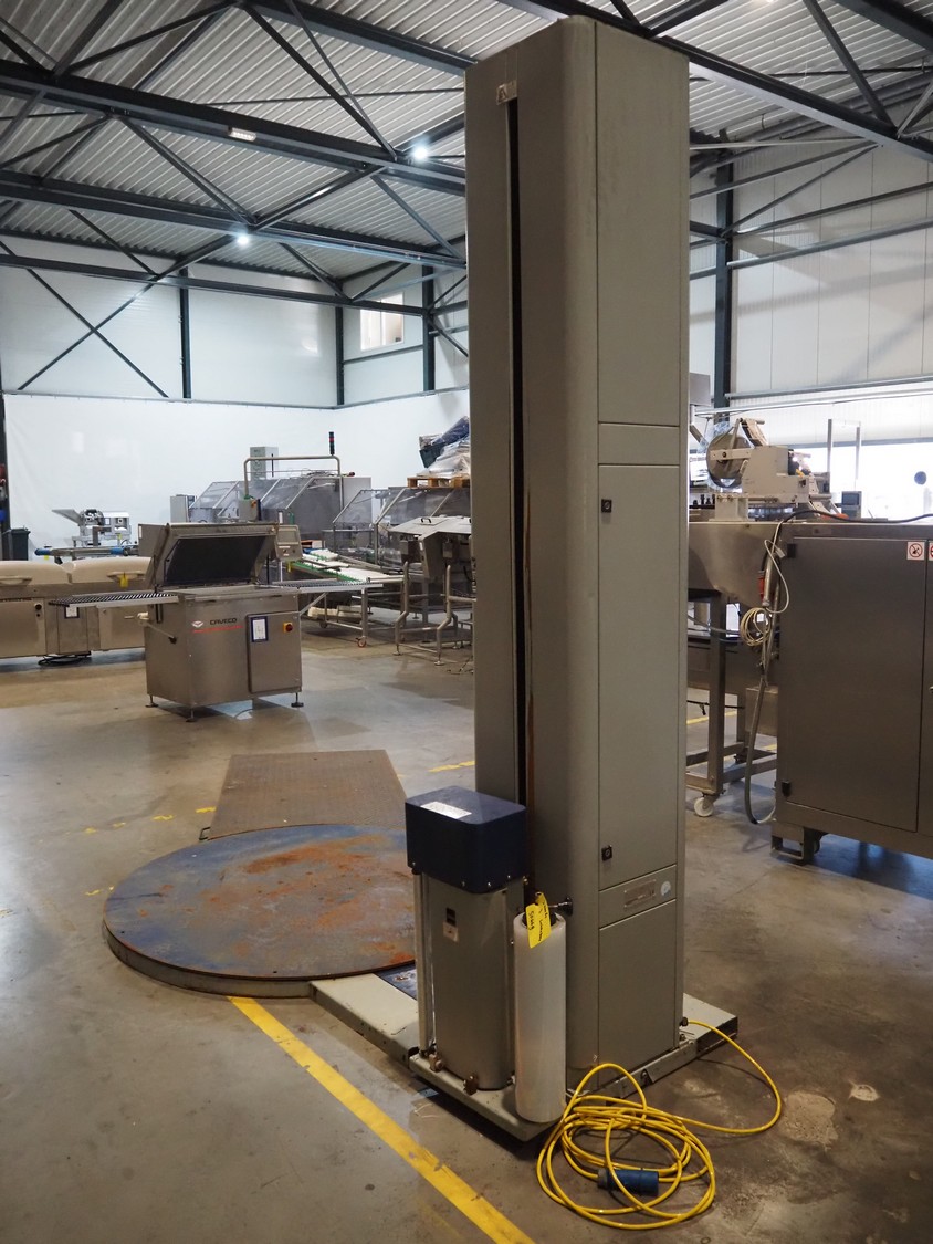 Youngsunpack Europe pallet wrapper, type: MH-FG-2000B, serial number: 171113PW4-1581, year of construction: 11-2017, 220 V, 1 Ph, 50 Hz, 1250 W, diameter platform: 1650 mm, total dimensions: 2600 mm x 1650 mm x 2790 mm.