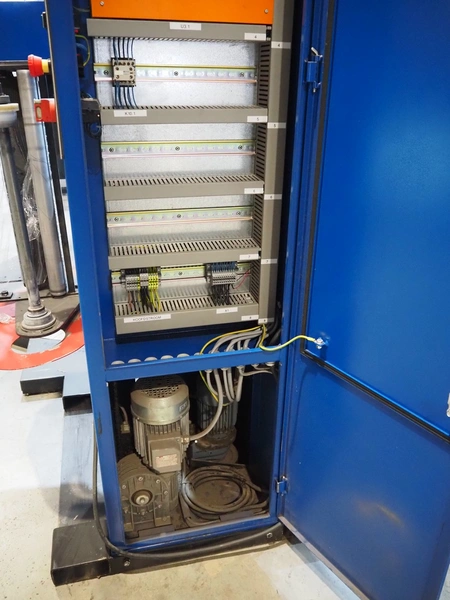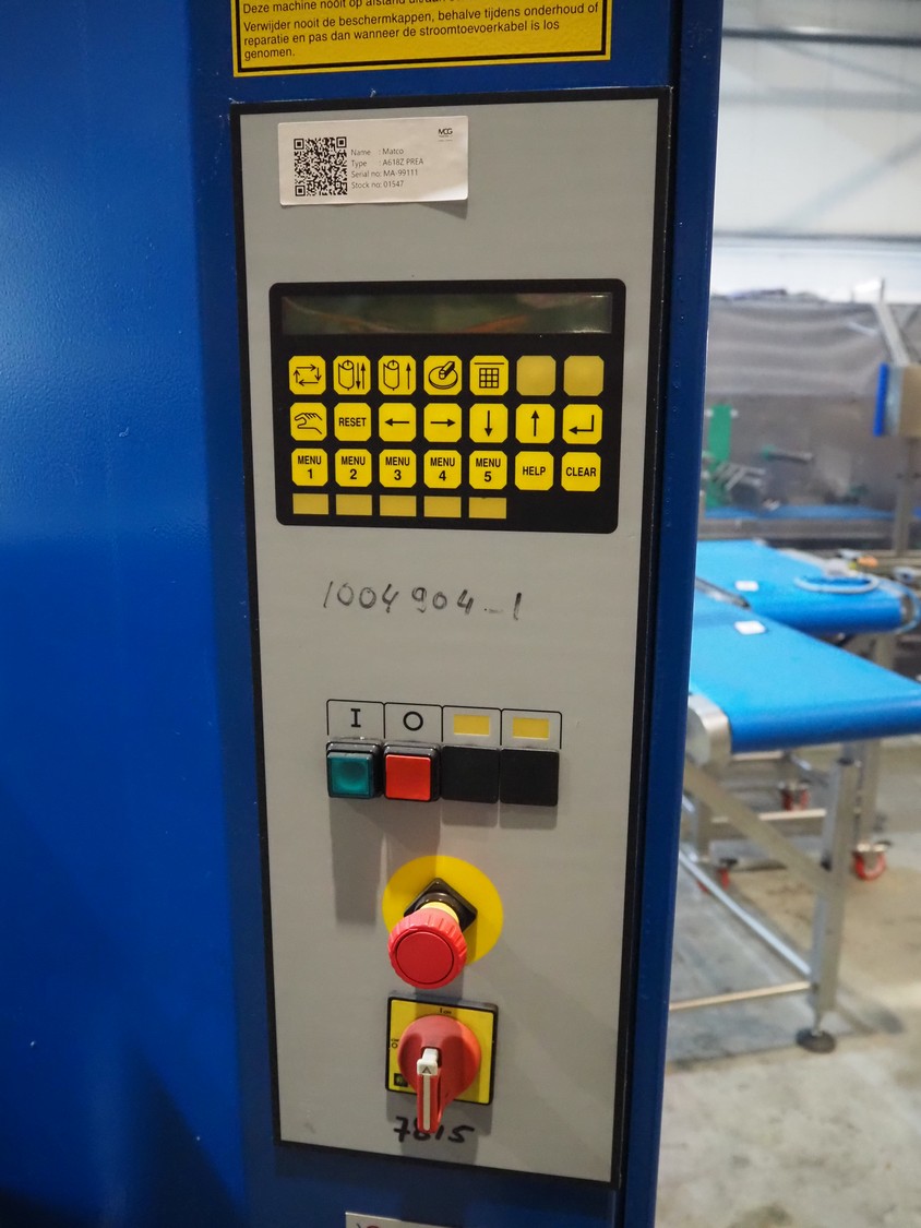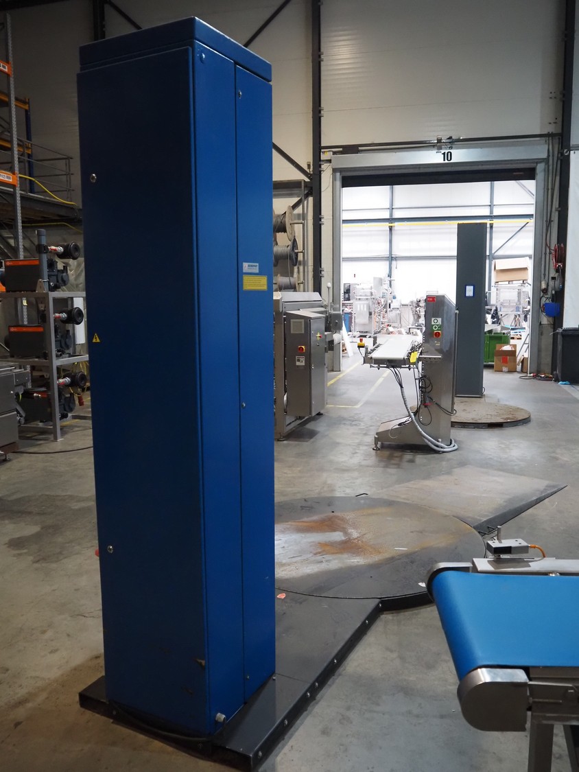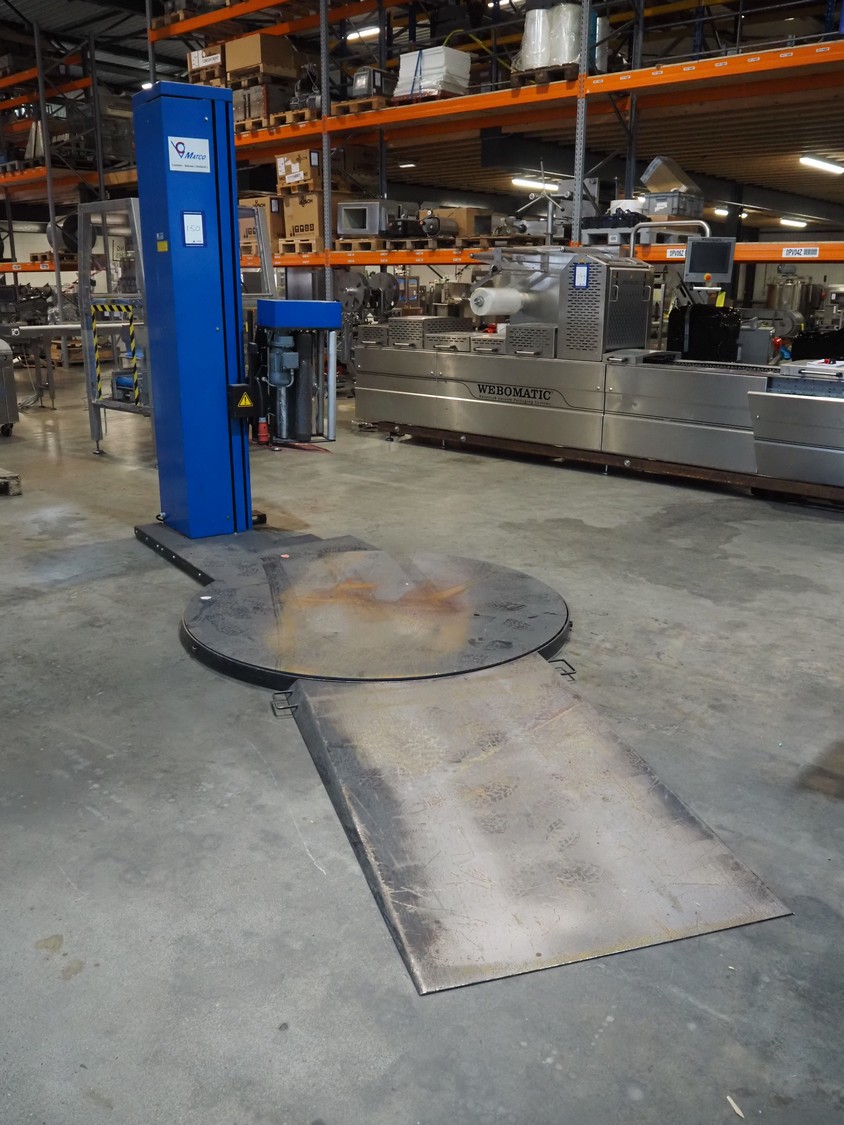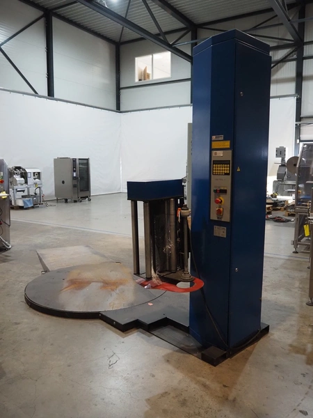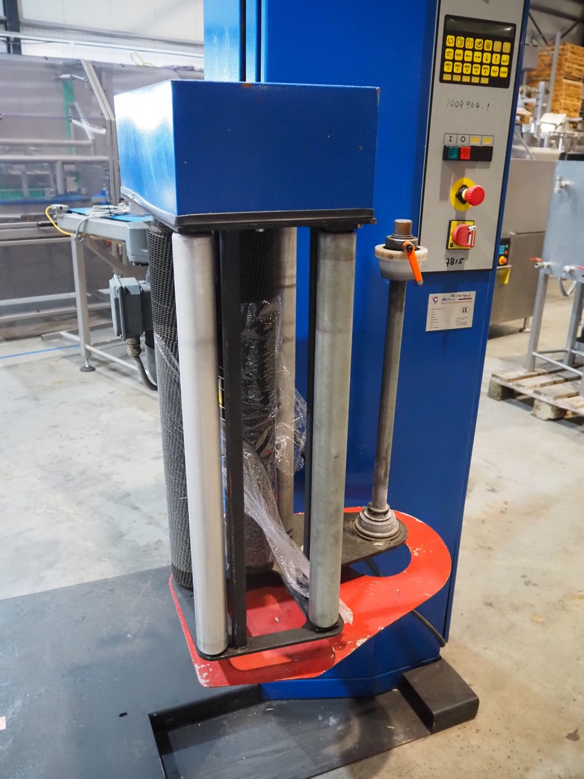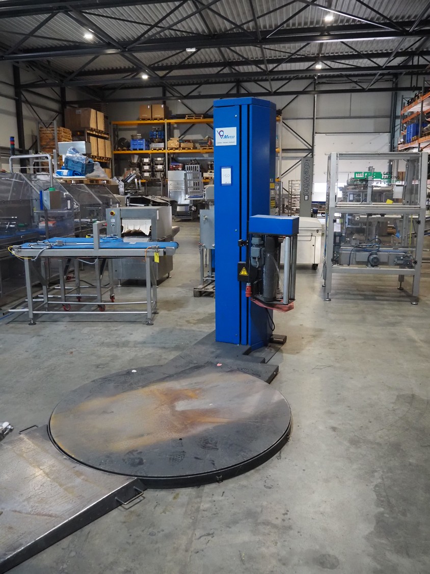 Matco pallet wrapper, type: A618Z PREA, serial number: MA-99111, year of construction: 01/1999, 400 V, 3 Ph, 50 Hz, 765 kg, steel platform, diameter platform: 1750 mm, total dimensions: 3000 mm x 1750 mm x 2600 mm.