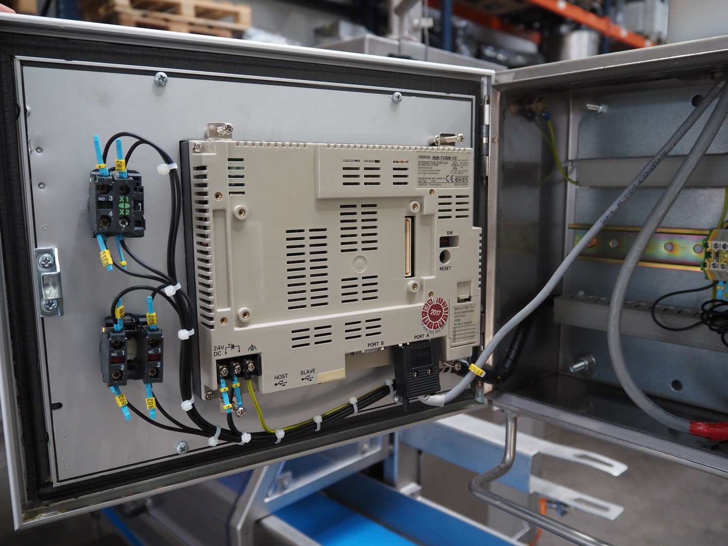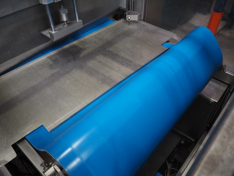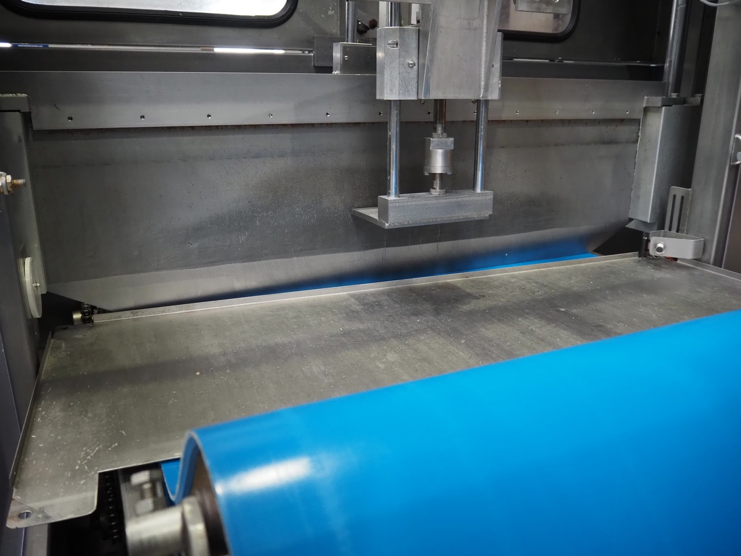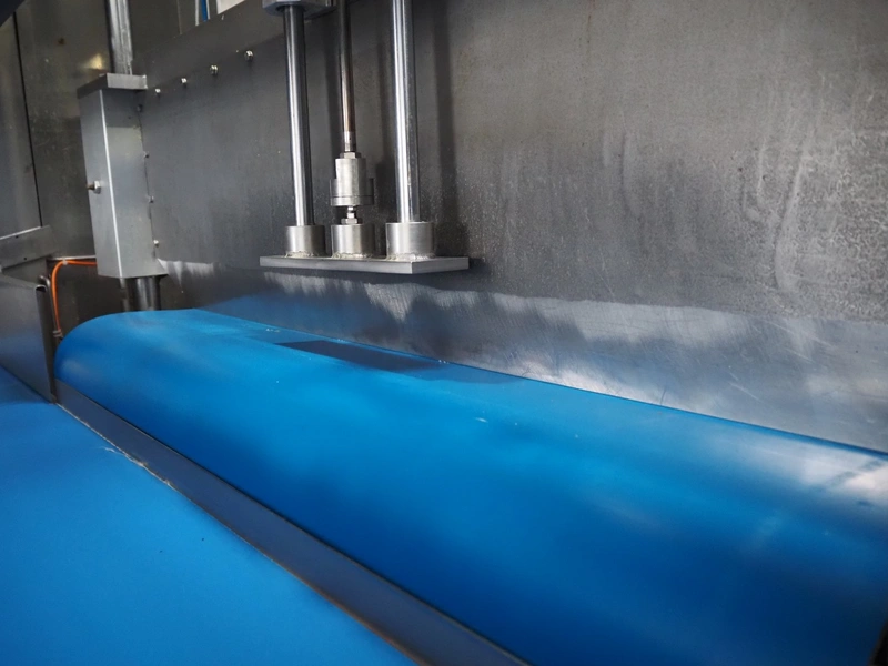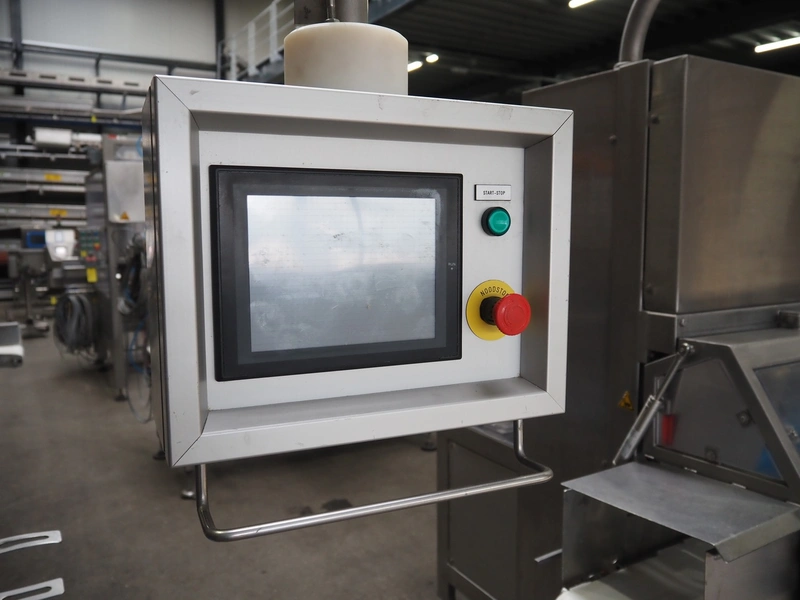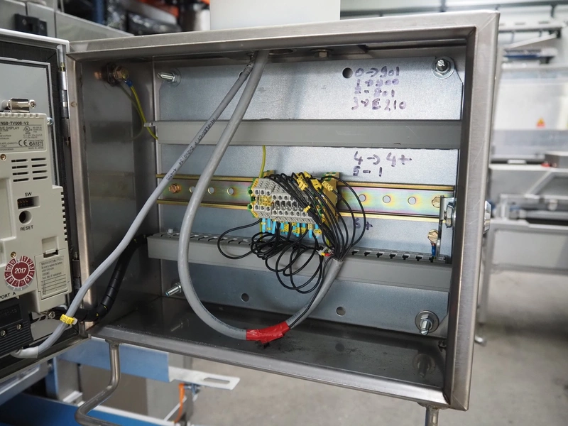 Selvex SA portioning machine, type: Ligne de découpe de fromages, registration: HAL02X, year of construction: 2007, 400 V, 3 Ph, 8 kW, clearance: 1150 mm x 490 mm, plastic belt, belt width: 1000 mm and 300 mm, knive width: 1100 mm, total dimensions: 2850 mm x 2700 mm x 2250 mm.