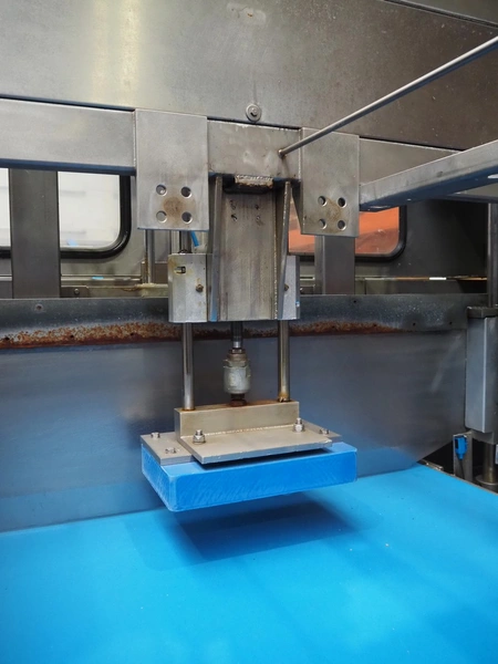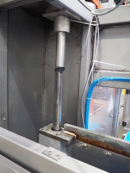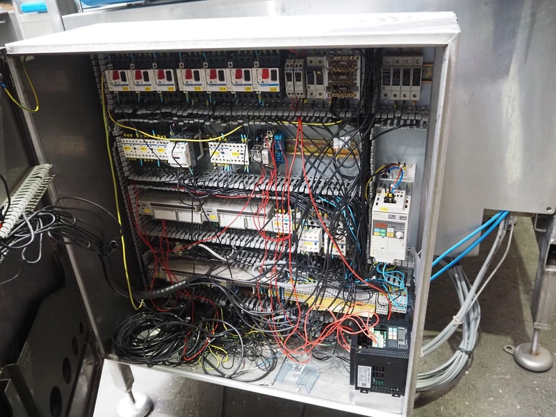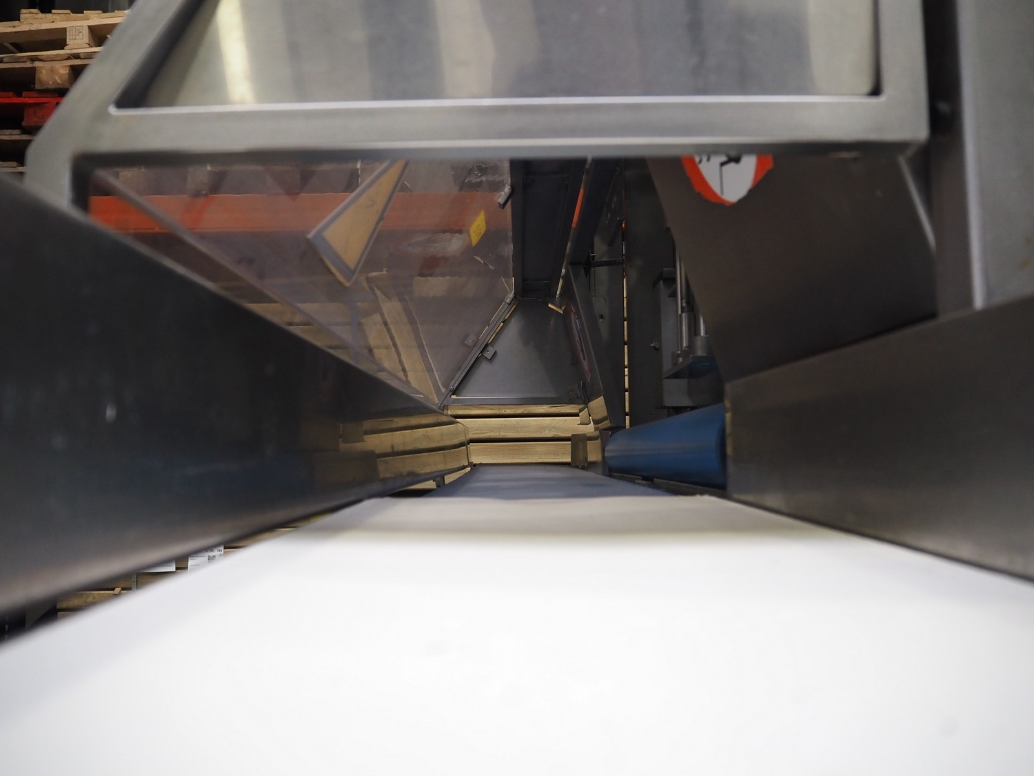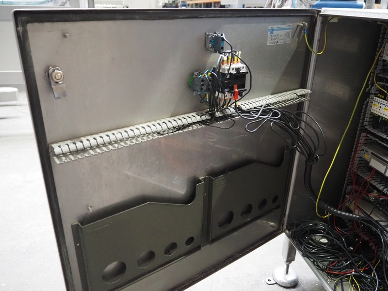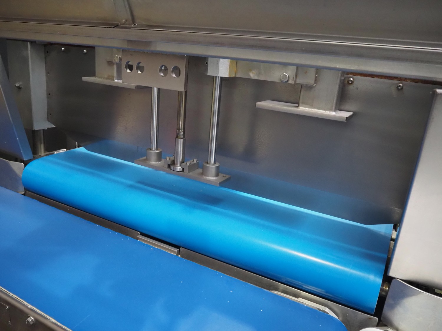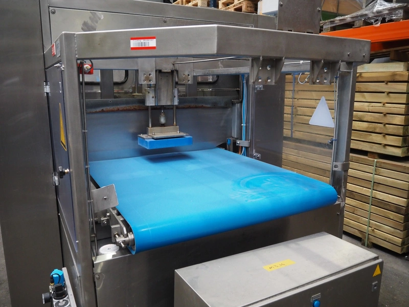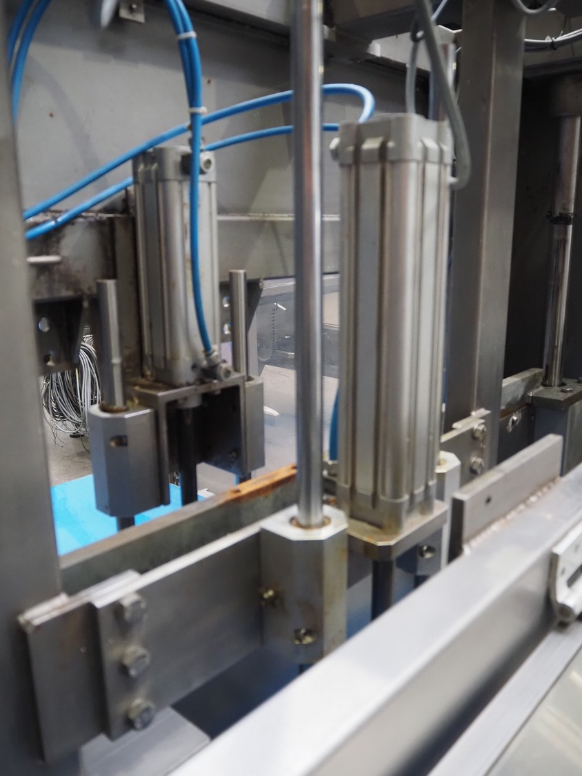 Selvex SA portioning machine, number: COL21-2, year of construction: 2002, 400 V, 3 Ph, 7 kW, infeed plastic belt, belt width: 1010 mm, clearance: 1230 mm x 500 mm, knive width: (1x) 1060 mm (1x) 340 mm, plastic belt, belt width: 290 mm, total dimensions: 2660 mm x 2010 mm x 2070 mm. Including s/s switch cabinet, dimensions switch cabinet: 760 mm x 340 mm x 980 mm.