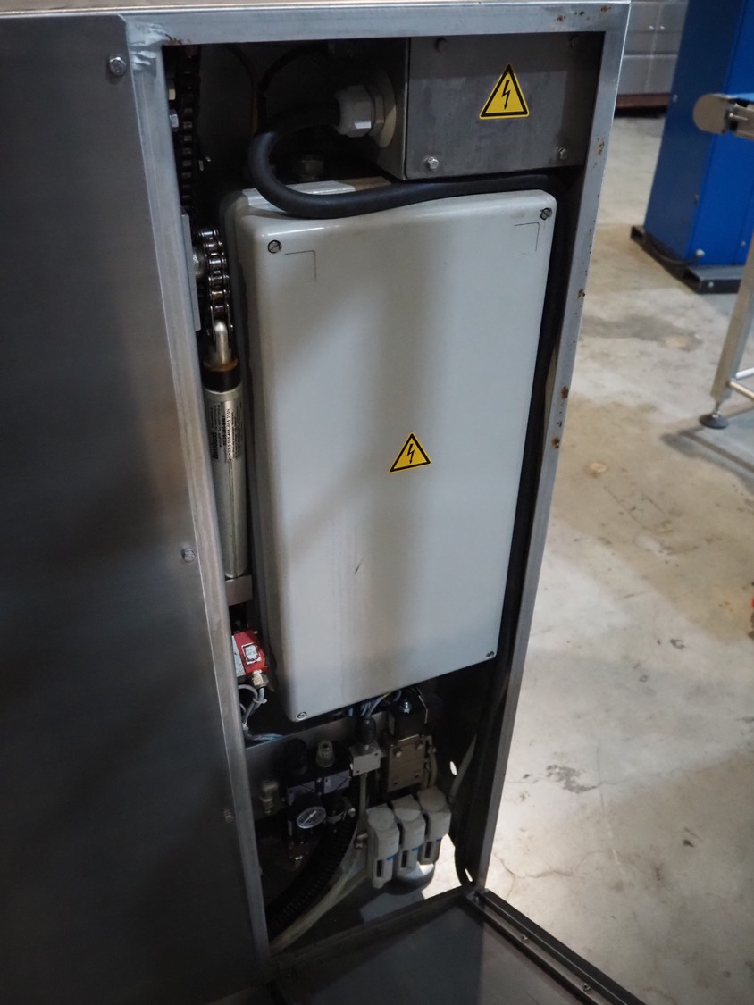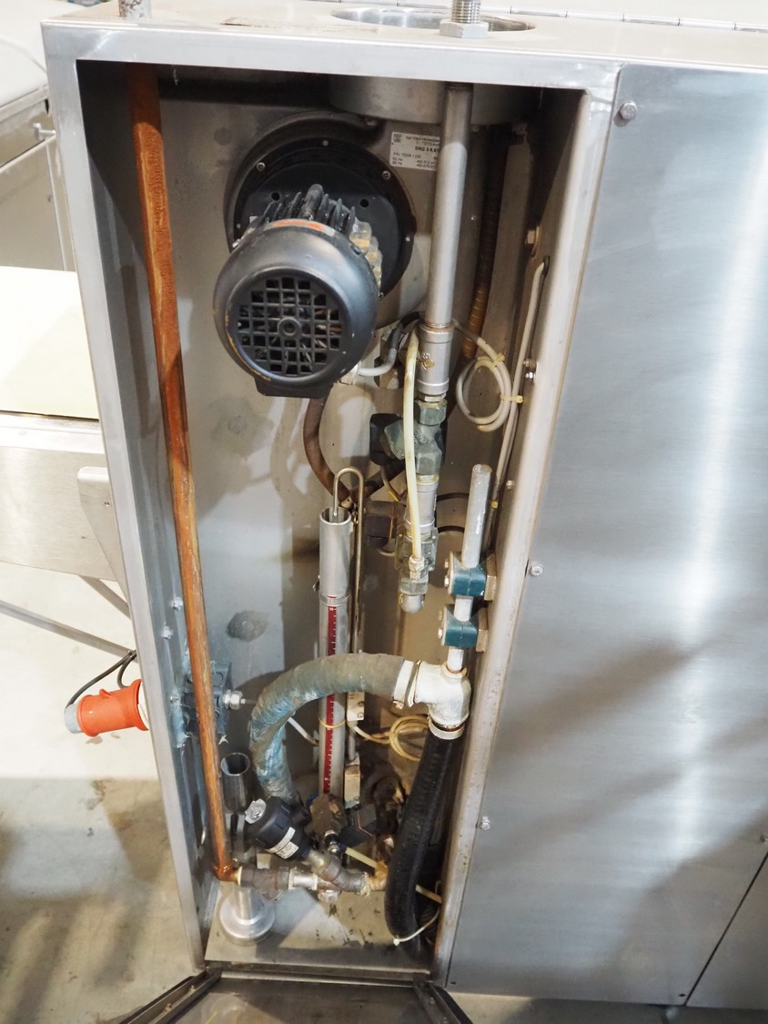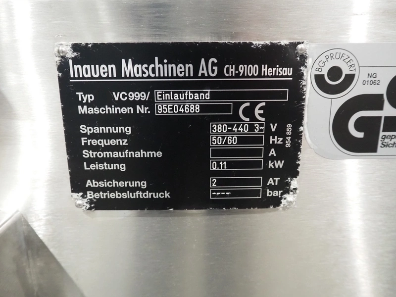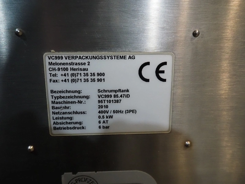 VC999 Verpackungssysteme AG dip tank, type: VC999 85.47iD, machine number: 95T101387, year of construction: 2010, 400 V, 3 Ph, 50 Hz, 0.5 kW, plastic infeed belt, belt width: 470 mm, clearance: 470 mm x 320 mm, inside dimensions: 970 mm x 470 mm, s/s outfeed rollers, roller width: 470 mm, total dimensions: 2230 mm x 920 mm x 1450 mm.