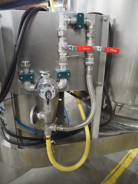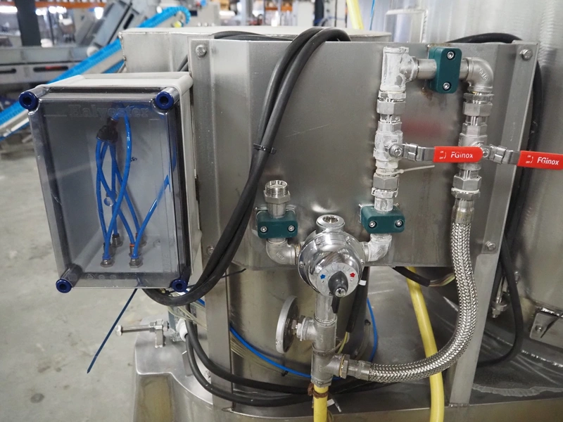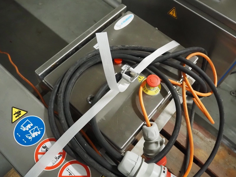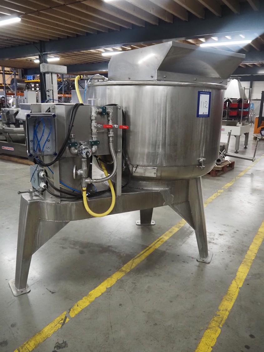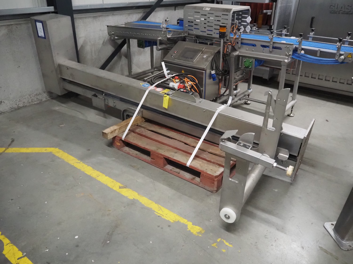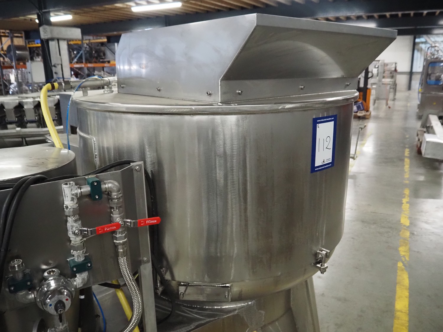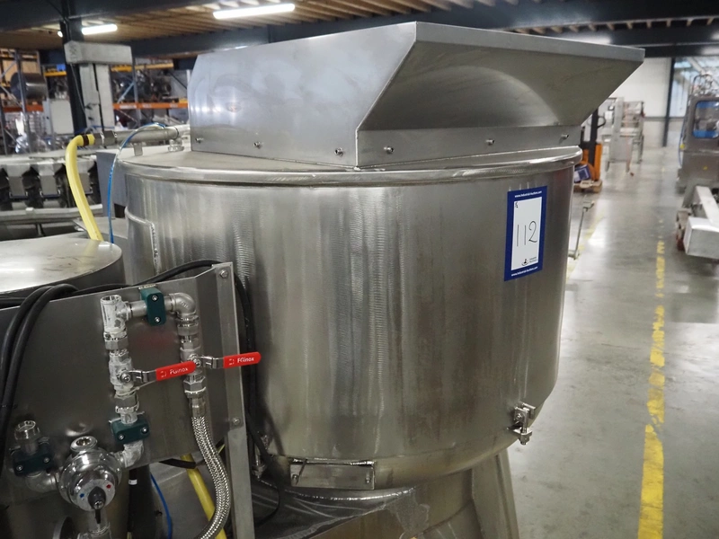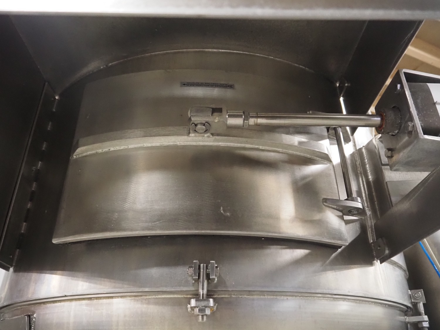 La Parmentiere dehairing machine with Carsoe lifter for meat bins, type: 770P, machine number: 770P414, year of construction: 06.2020, type lifter: HKV 300, serial number: FOD-10811, year of construction: 2020, 400 V, 3 Ph, 0.75 kW, dimensions: 2050 mm x 1800 mm x 1870 mm, dimensions lifter: 3150 mm x 1500 mm x 900 mm.