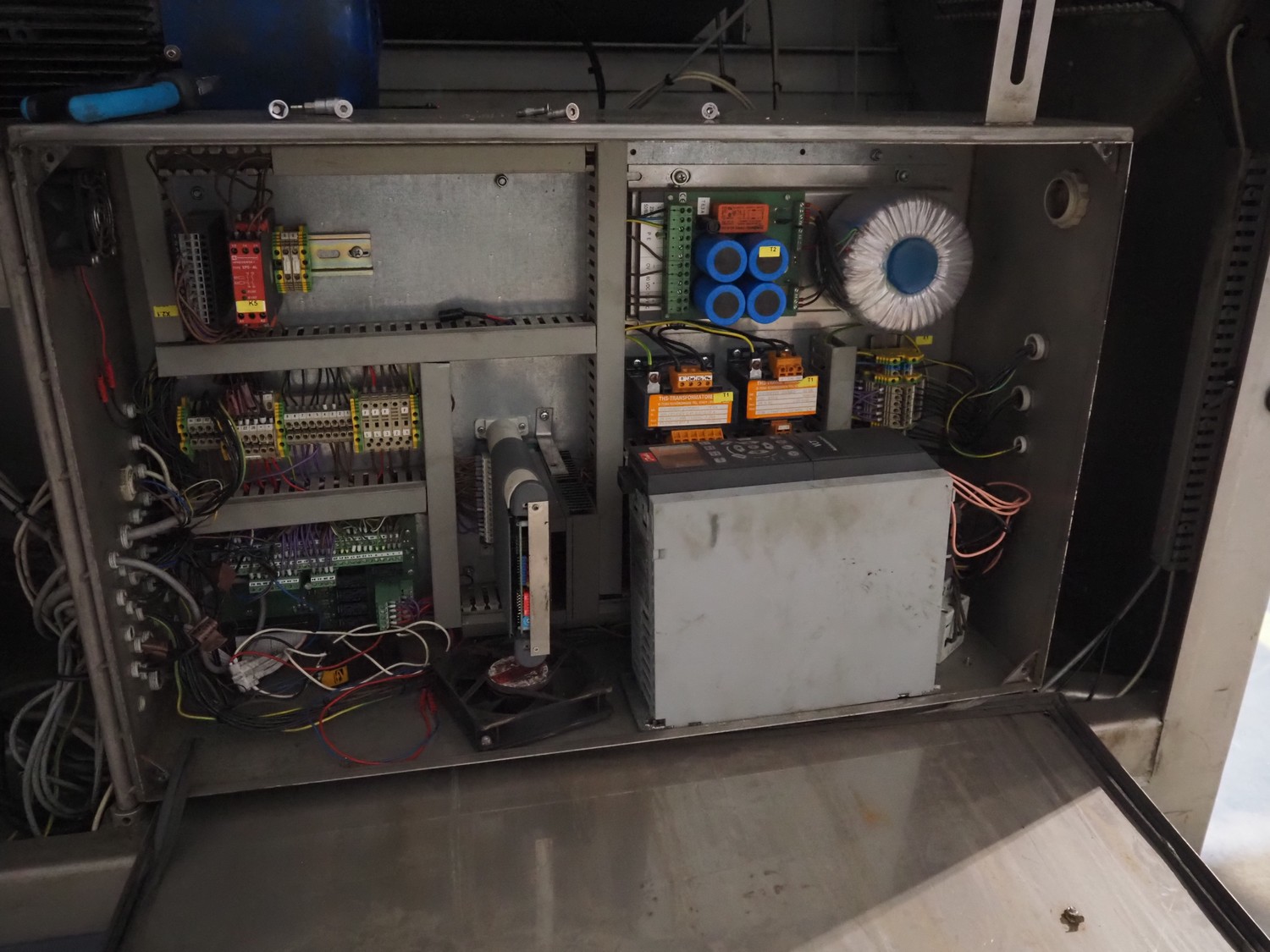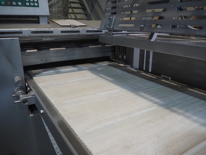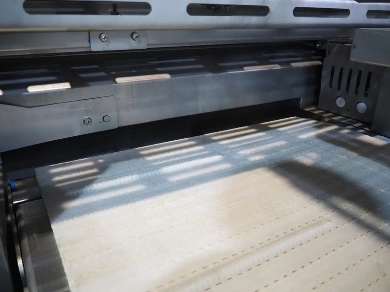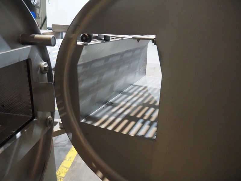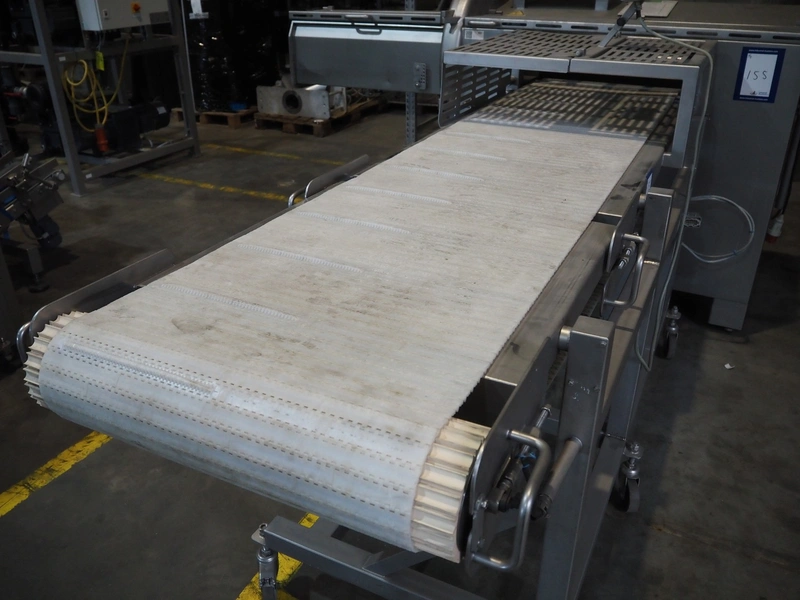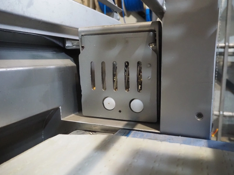 MHS Schneidetechnik GmbH slicer with infeed belt, type: IC610/21, serial number: 010604, year of construction: 2004, 400 V, 15.25 A, 6.1 kW, plastic belt, belt width: 610 mm, dimensions chamber: 210 mm x 210 mm, total dimensions: 2400 mm x 800 mm x 1500 mm, dimensions infeed belt: 2700 mm x 860 mm x 1500 mm.