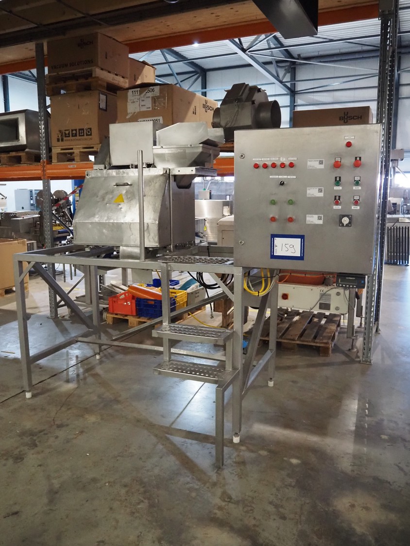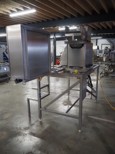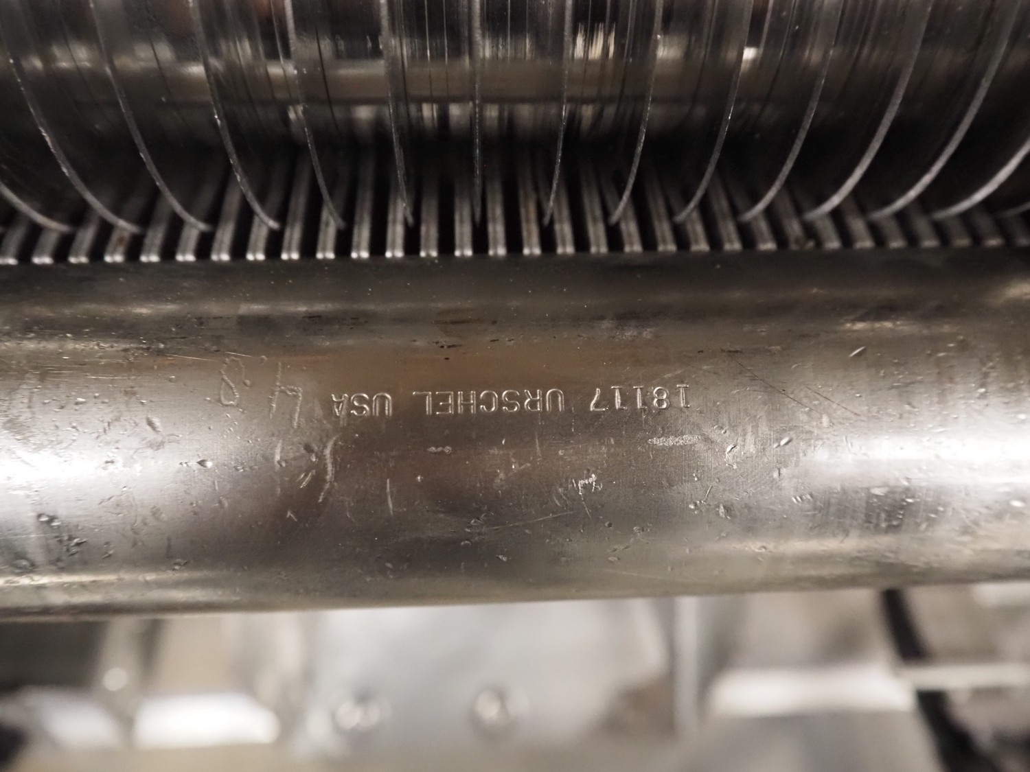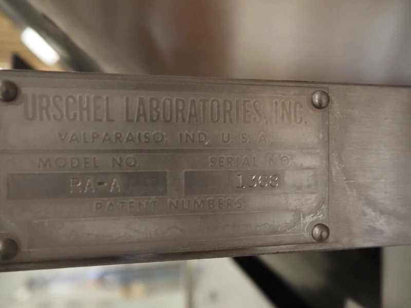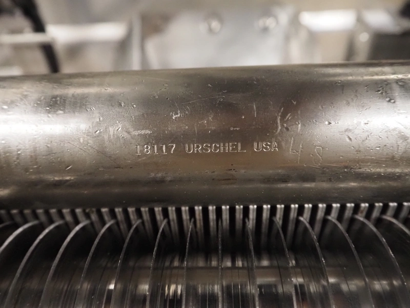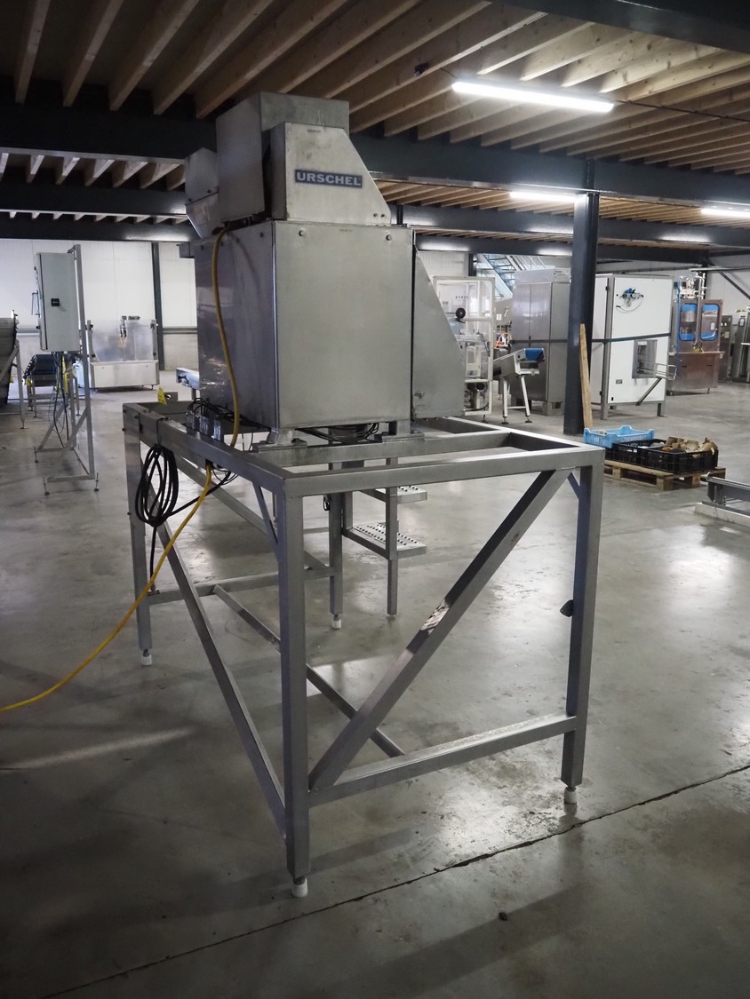 Urschel Laboratories, Inc. slicer, model: RA-A, serial number: 1368, working width: 140 mm, 16 knives, distance between knives: 10 mm, total dimensions: 2540 mm x 1340 mm x 2150 mm. Including pallet with parts.