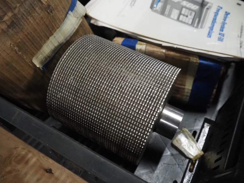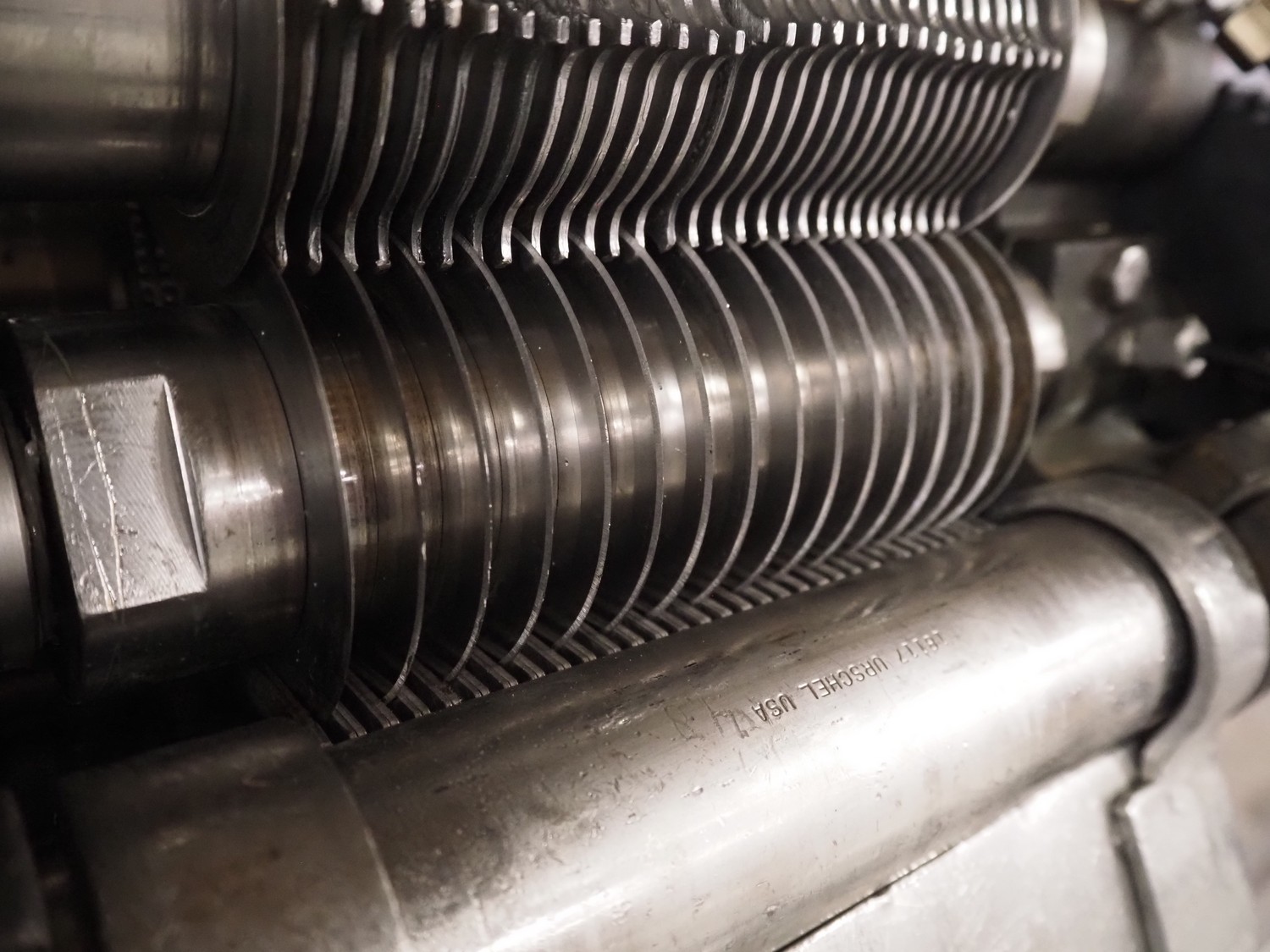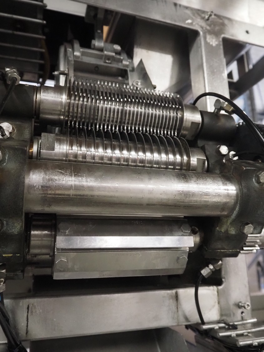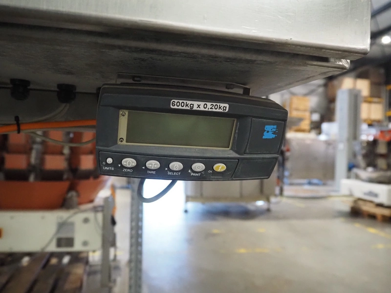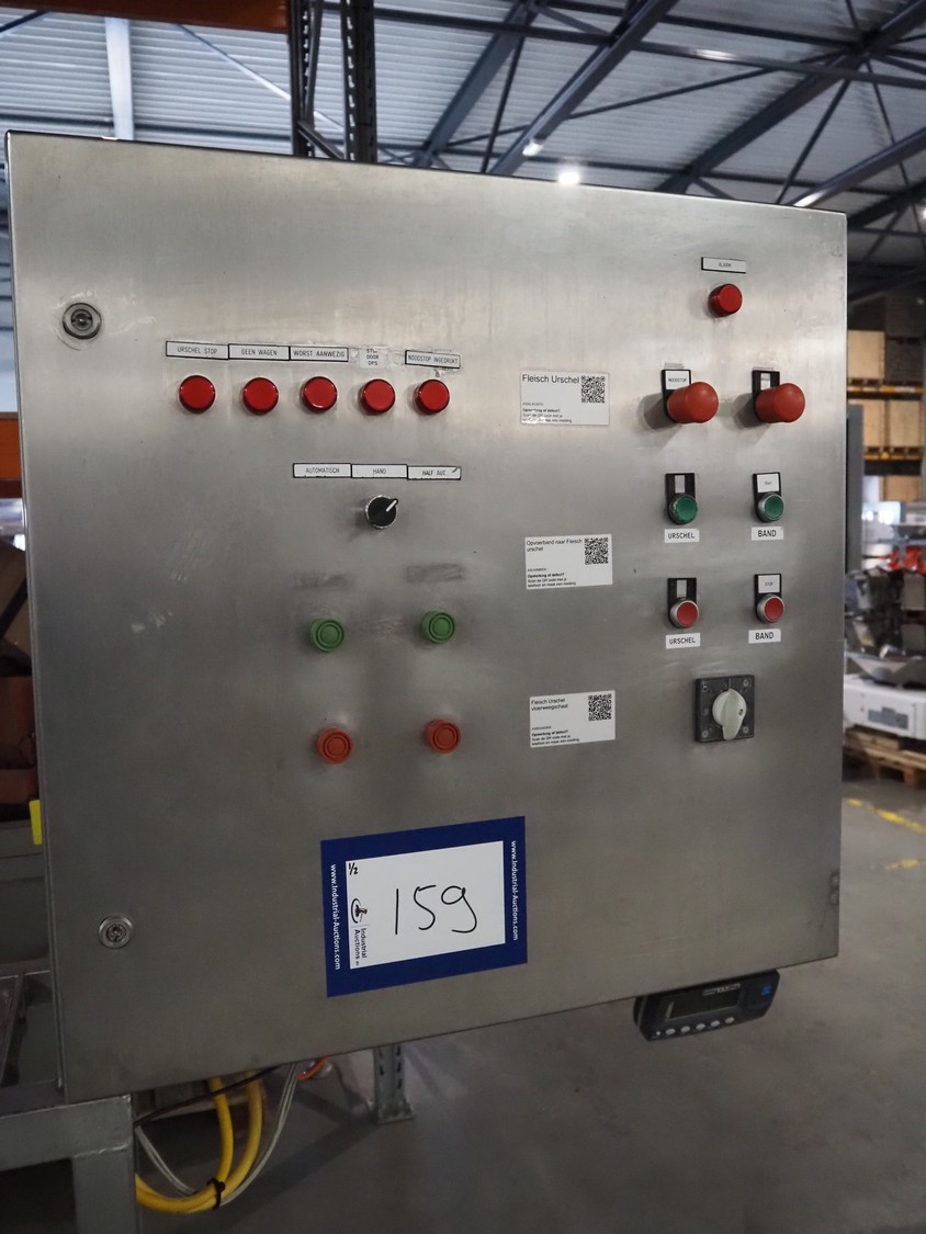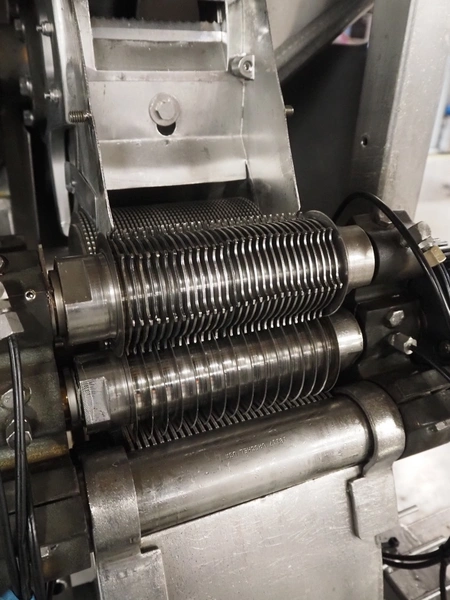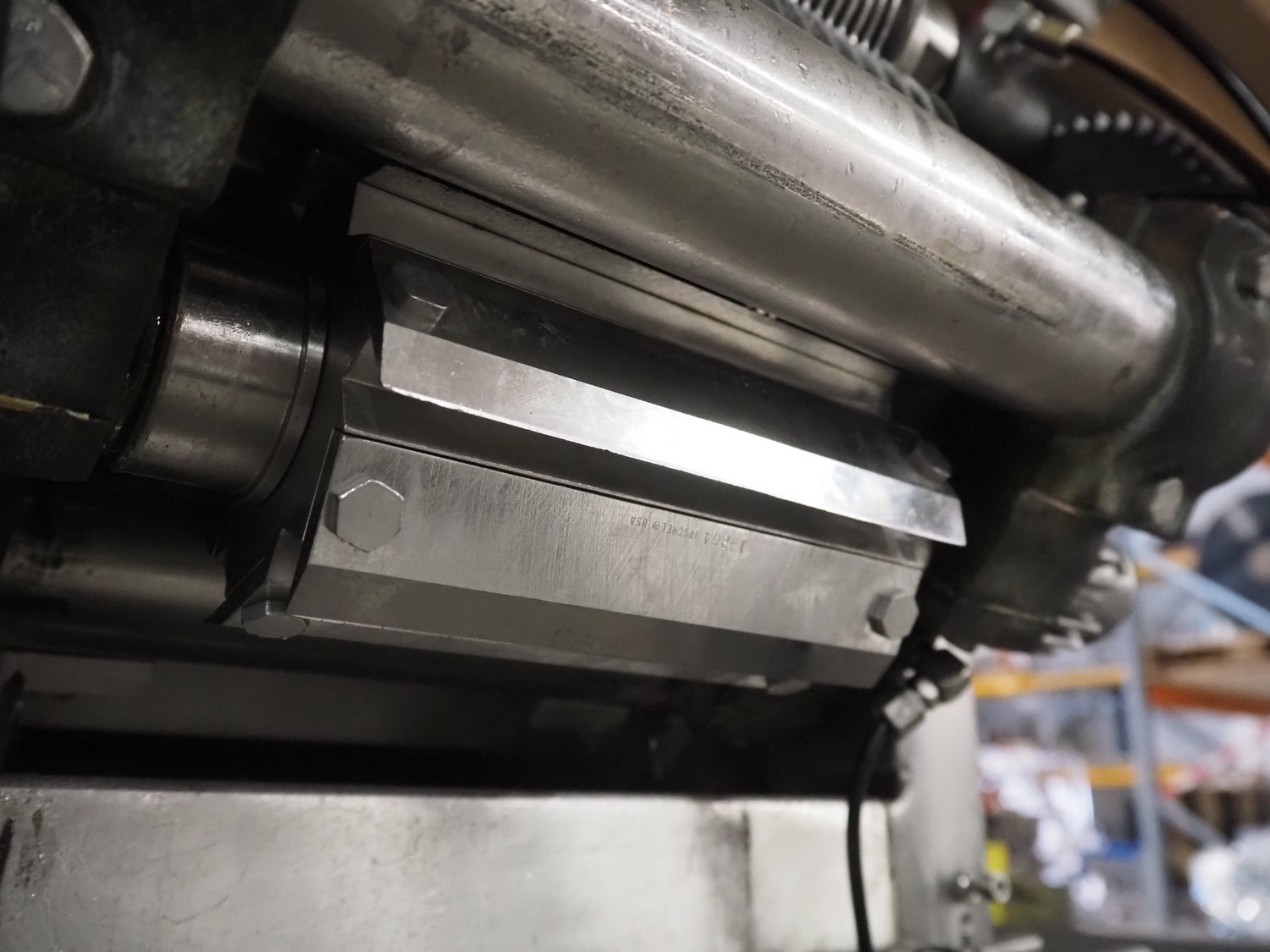 Urschel Laboratories, Inc. slicer, model: RA-A, serial number: 1368, working width: 140 mm, 16 knives, distance between knives: 10 mm, total dimensions: 2540 mm x 1340 mm x 2150 mm. Including pallet with parts.