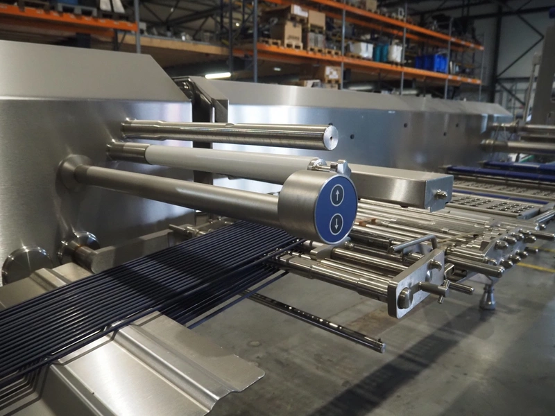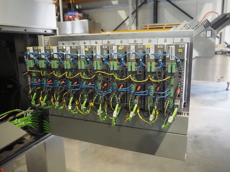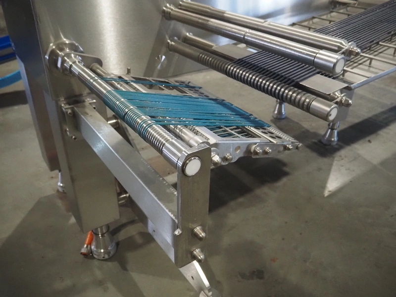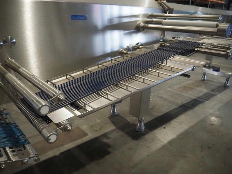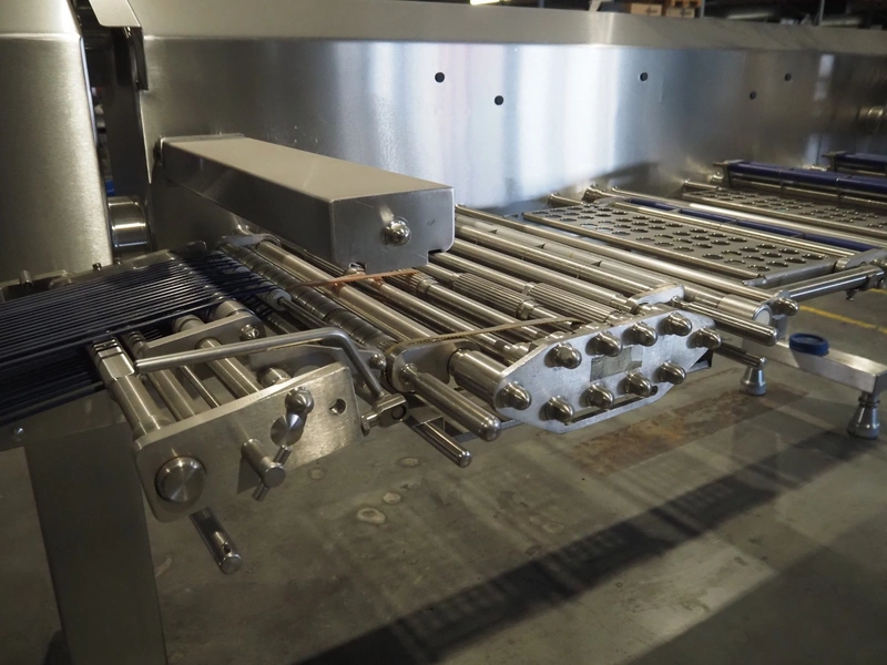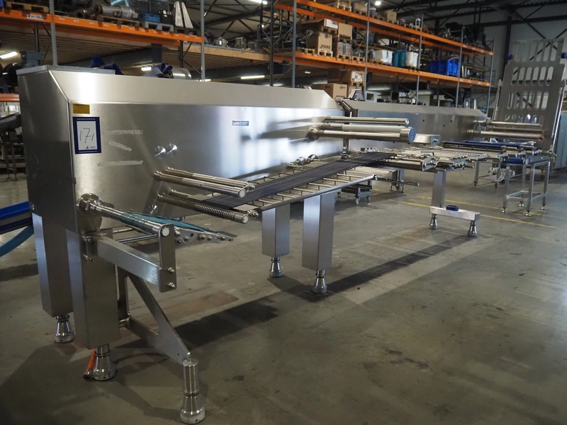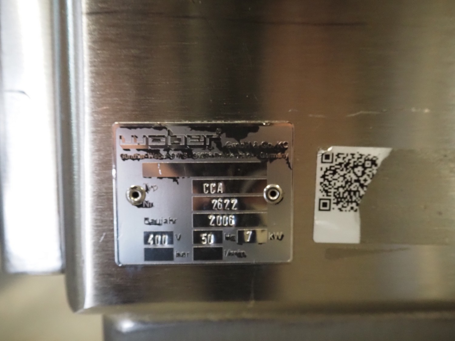 Weber outfeed belt, type: CCA, number: 2622, year of construction: 2006, 400 V, 50 Hz, 7 kW, plastic wired belt, belt width: 520 mm, total dimensions: 5370 mm x 1800 mm x 1800 mm.