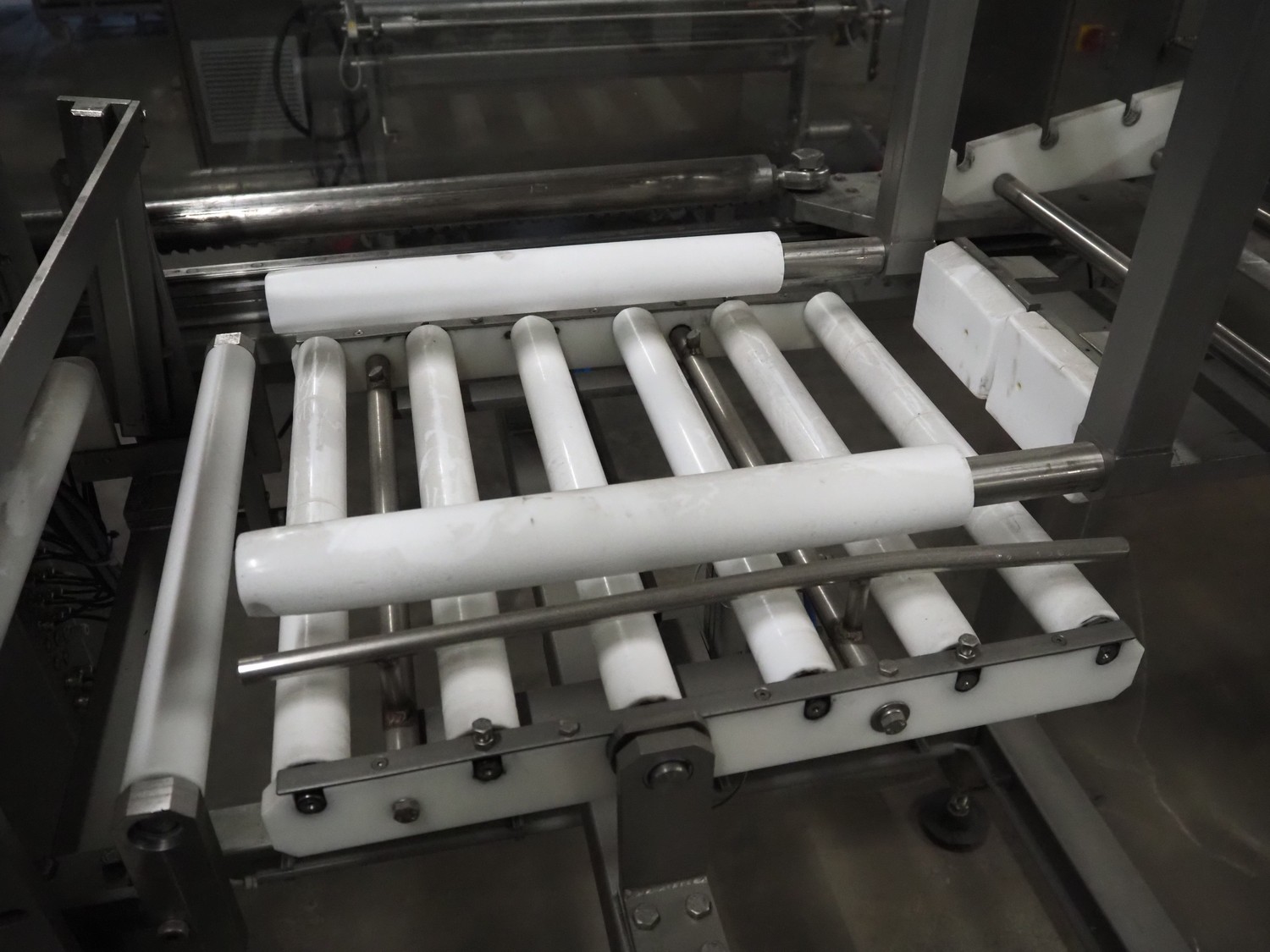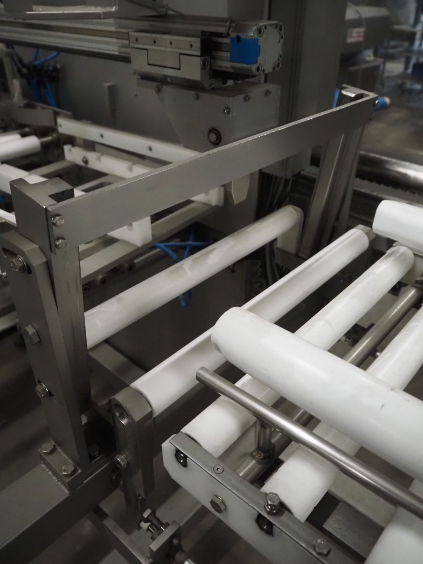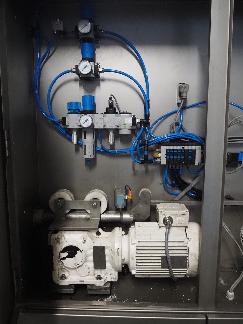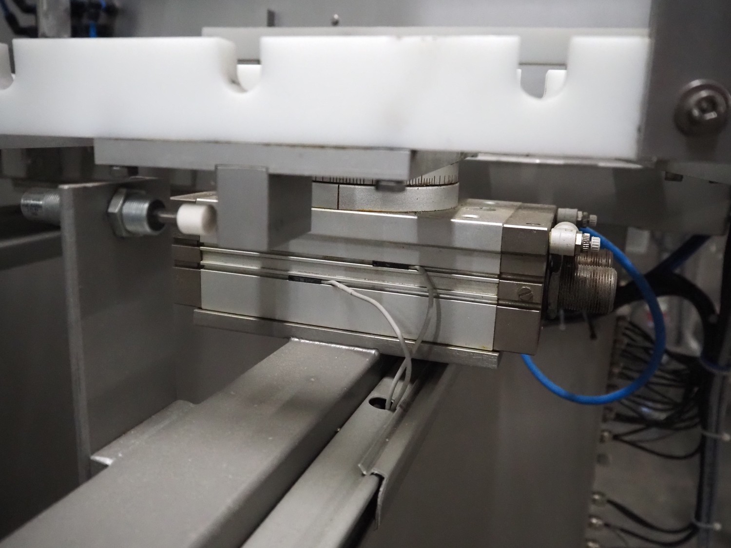 Machinefabriek Hendriks B.V. horizontal slicer for cheese, type: Horizontale deelmachine 2, serial number: 20400, year of construction: September 2003, 400 V, 3 Ph, 50 Hz, 4.9 A, 3 kW, 10 kA, 6 bar, plastic rollers, roller width: 400 mm, total dimensions: 2700 mm x 1250 mm x 2050 mm.