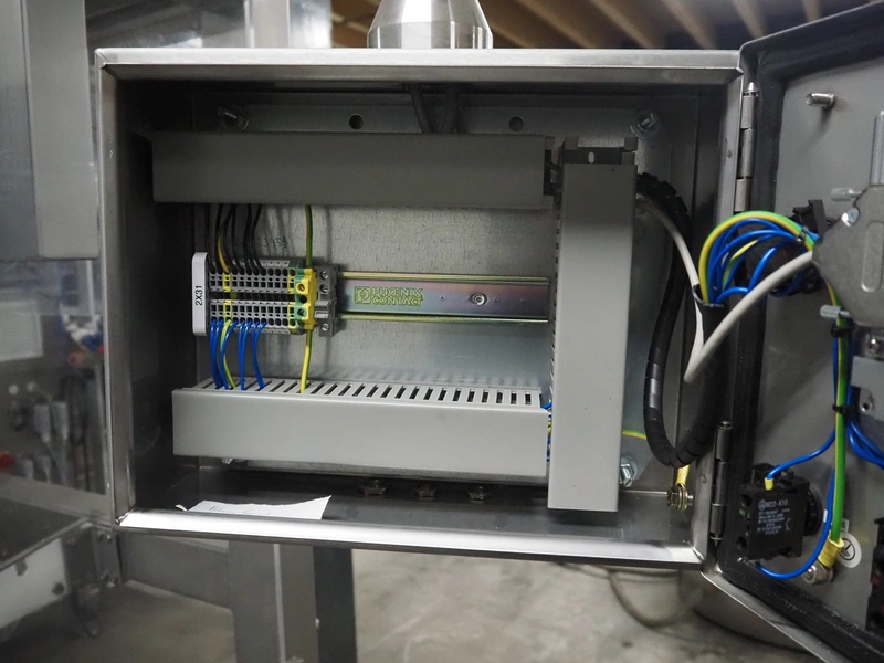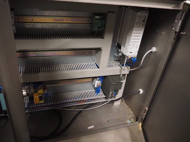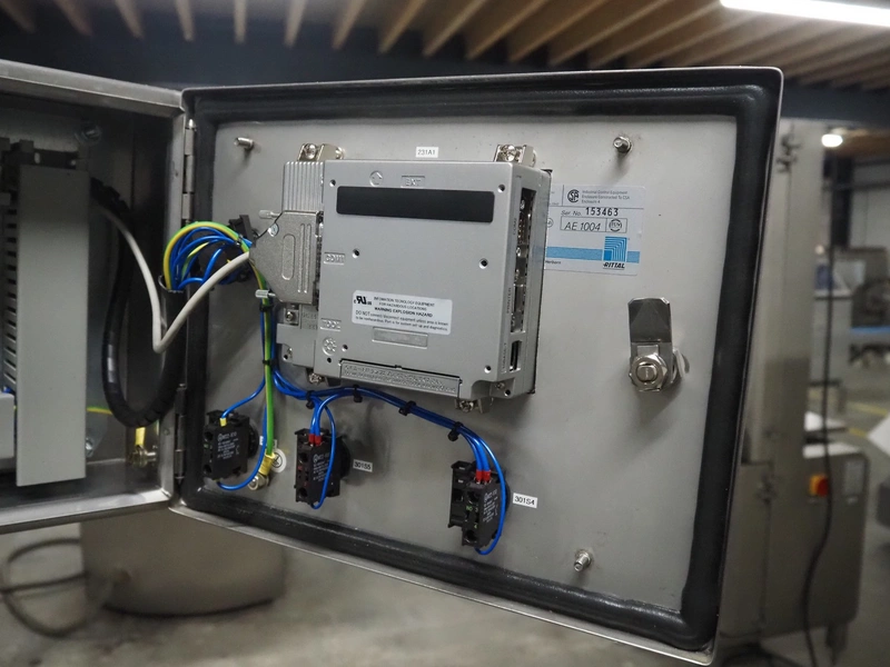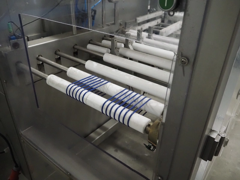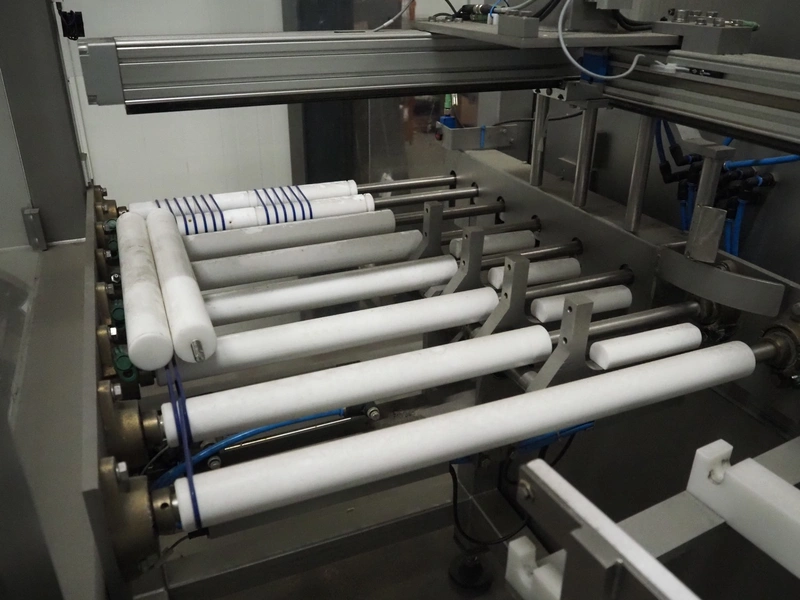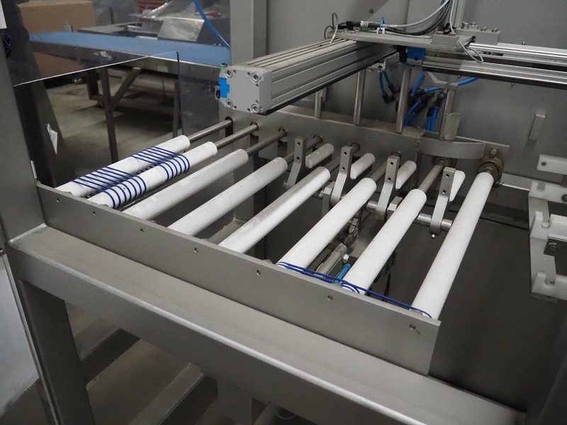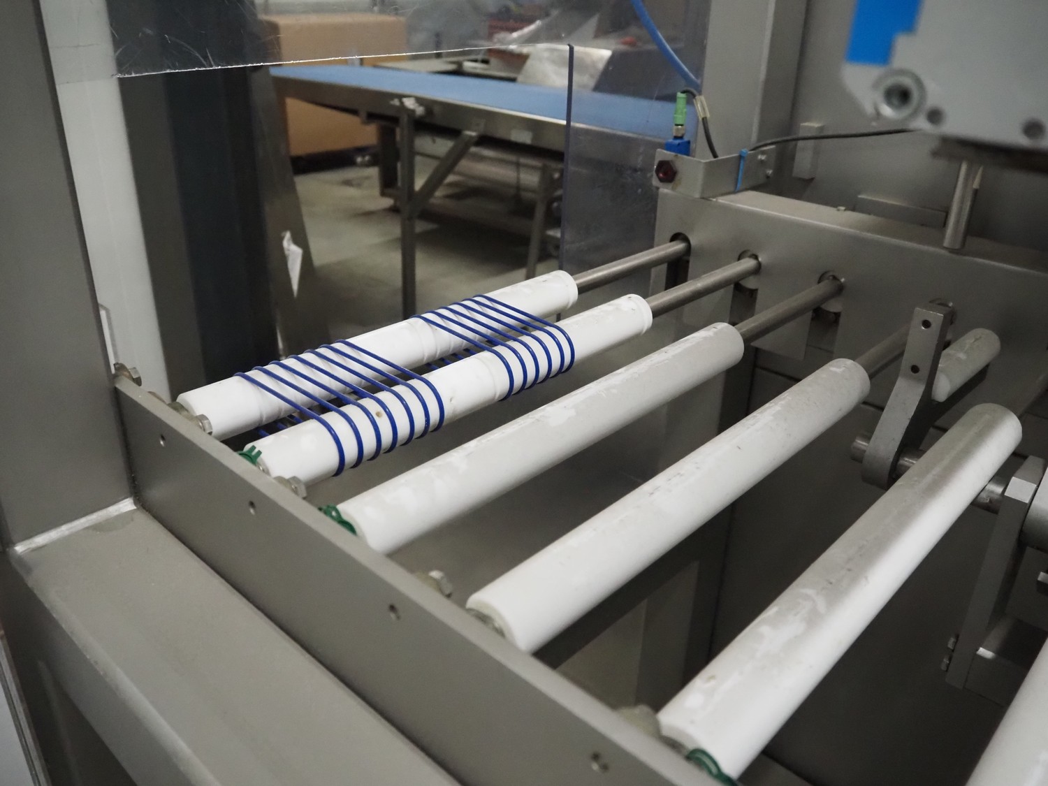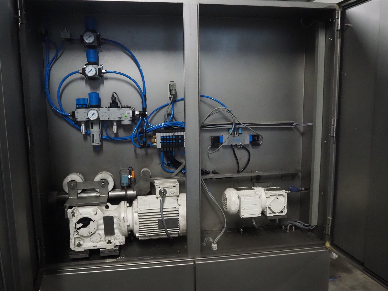 Machinefabriek Hendriks B.V. horizontal slicer for cheese, type: Horizontale deelmachine 2, serial number: 20400, year of construction: September 2003, 400 V, 3 Ph, 50 Hz, 4.9 A, 3 kW, 10 kA, 6 bar, plastic rollers, roller width: 400 mm, total dimensions: 2700 mm x 1250 mm x 2050 mm.