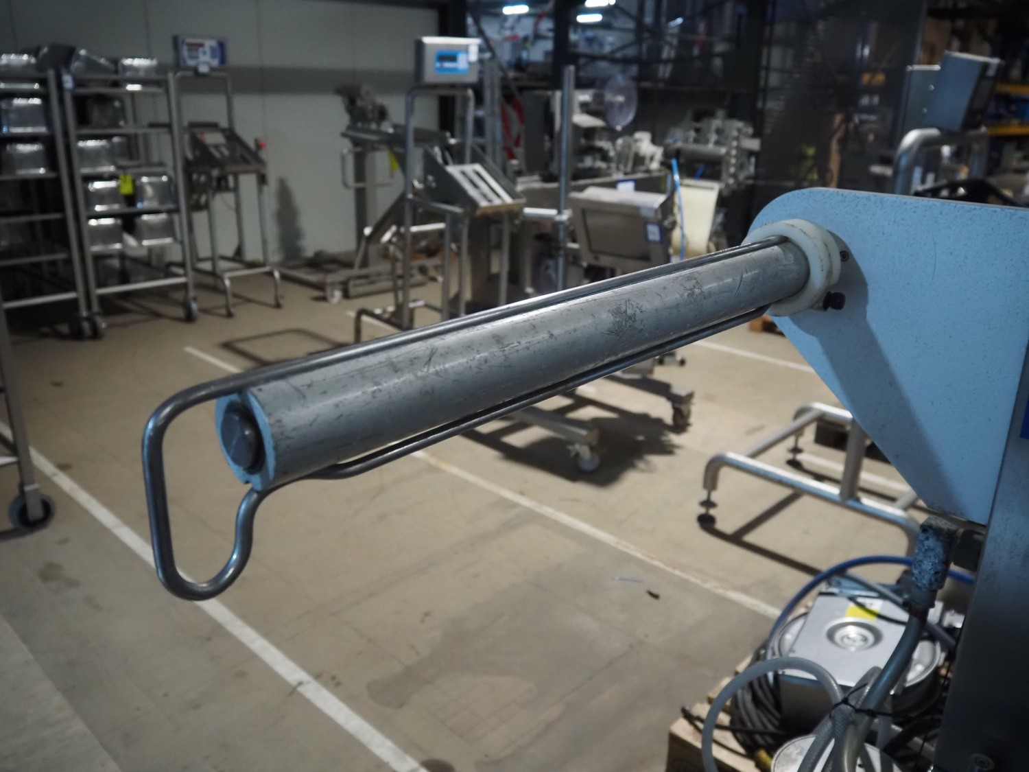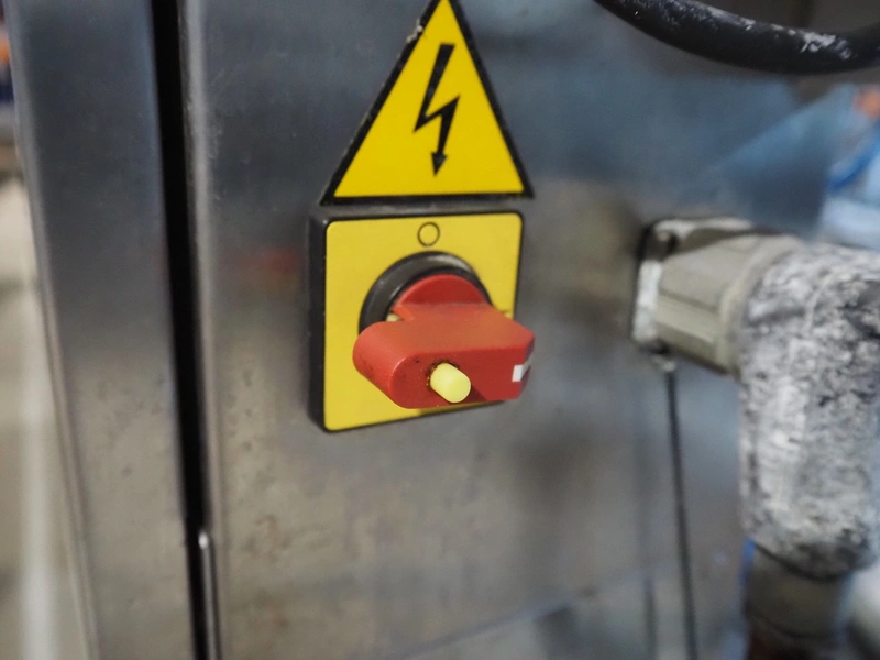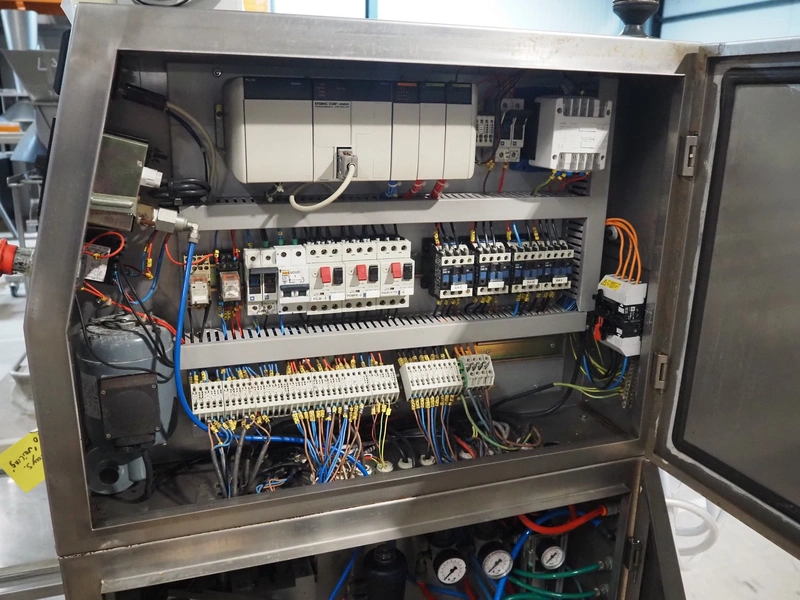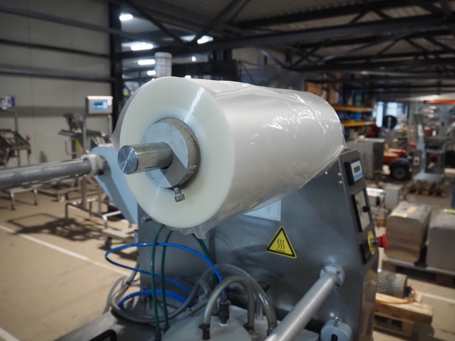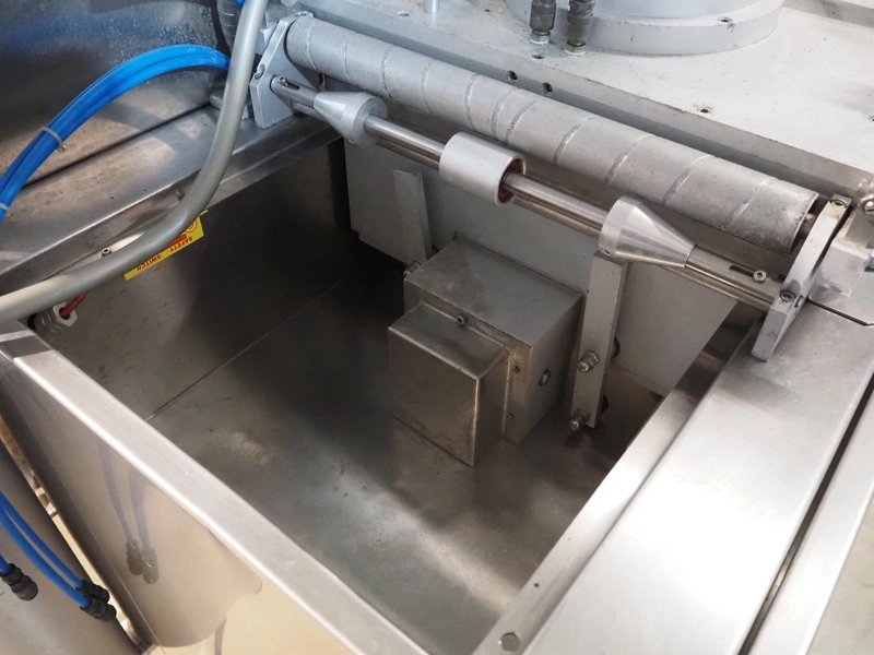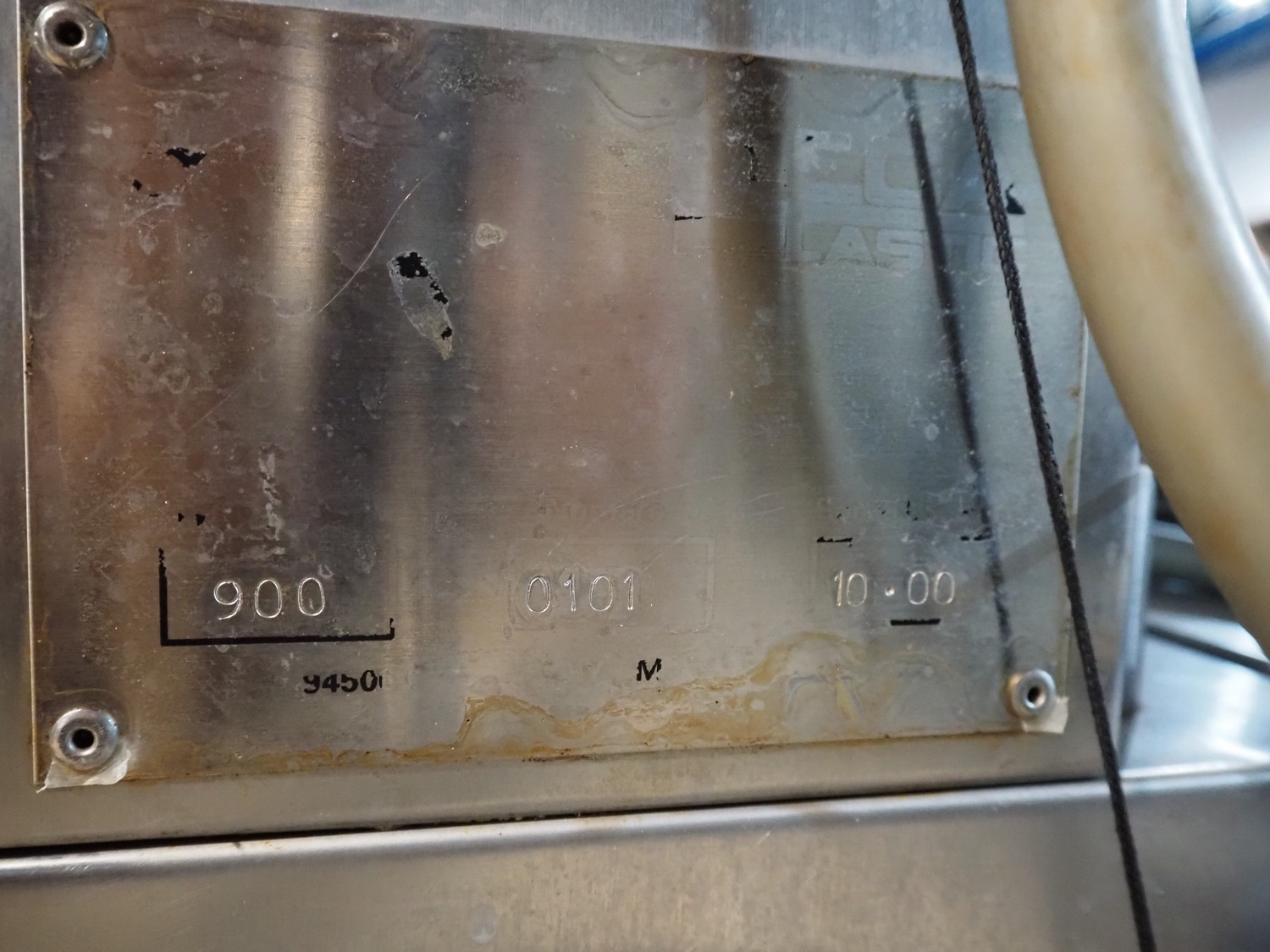 Mecapack mobile traysealer, model: 900, serial number: 0101, year of construction: 10-2000, film width: 430 mm, dimensions dye: Ø 180 mm, total dimensions: 1250 mm x 800 mm x 1860 mm.