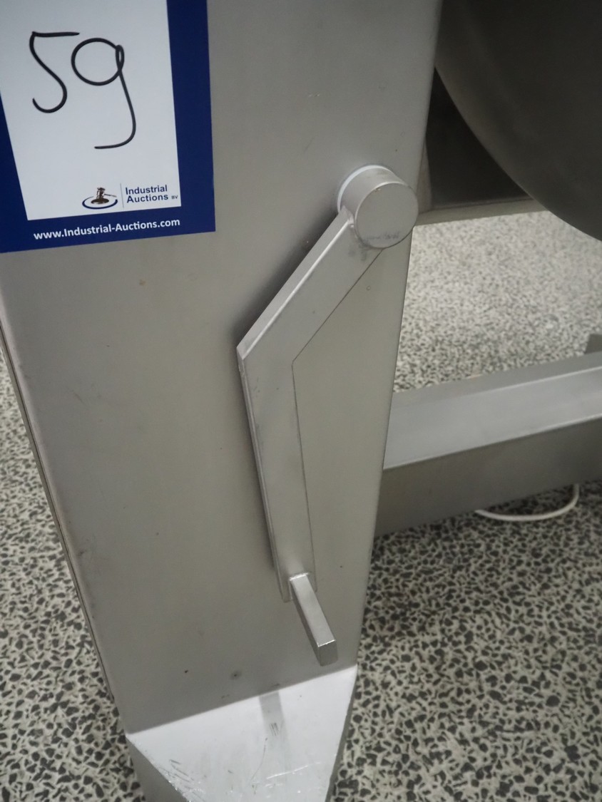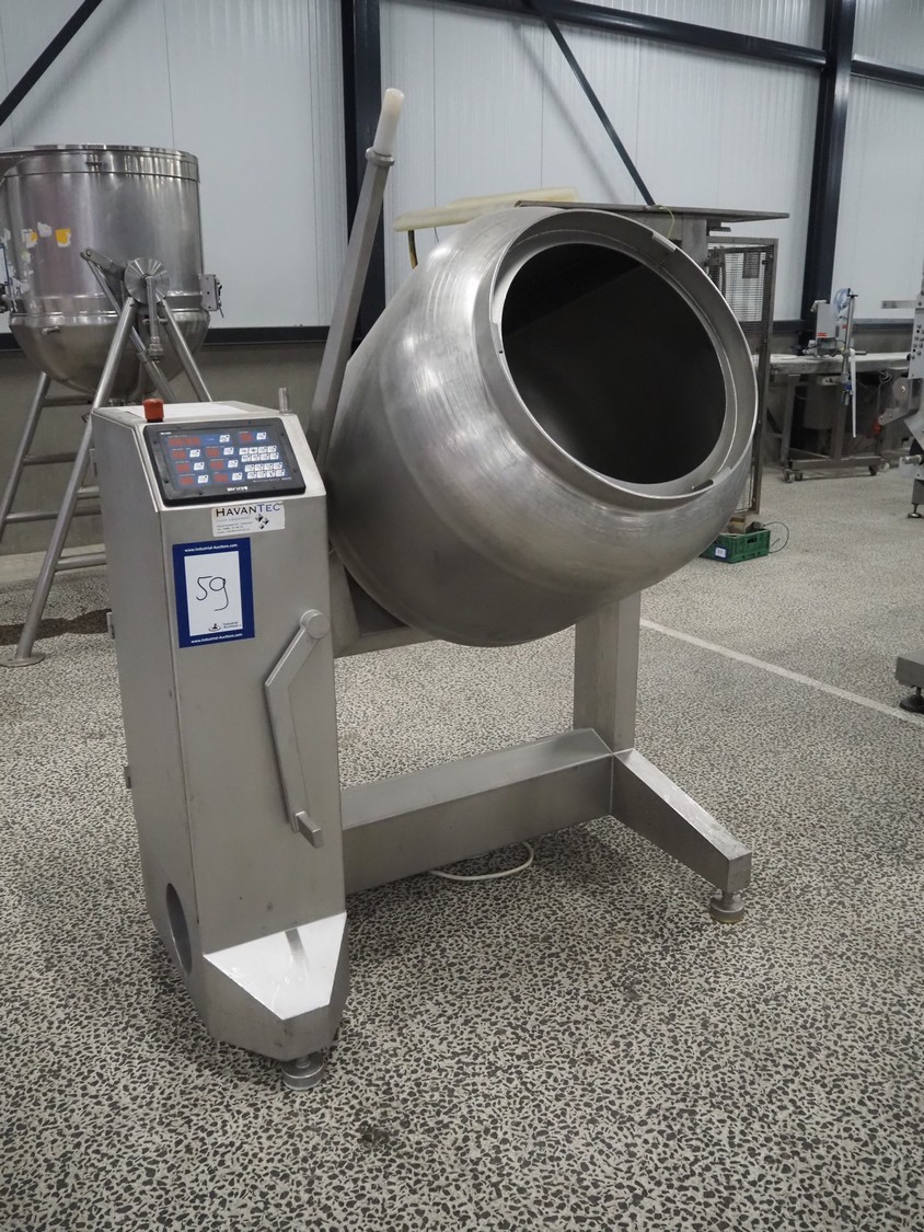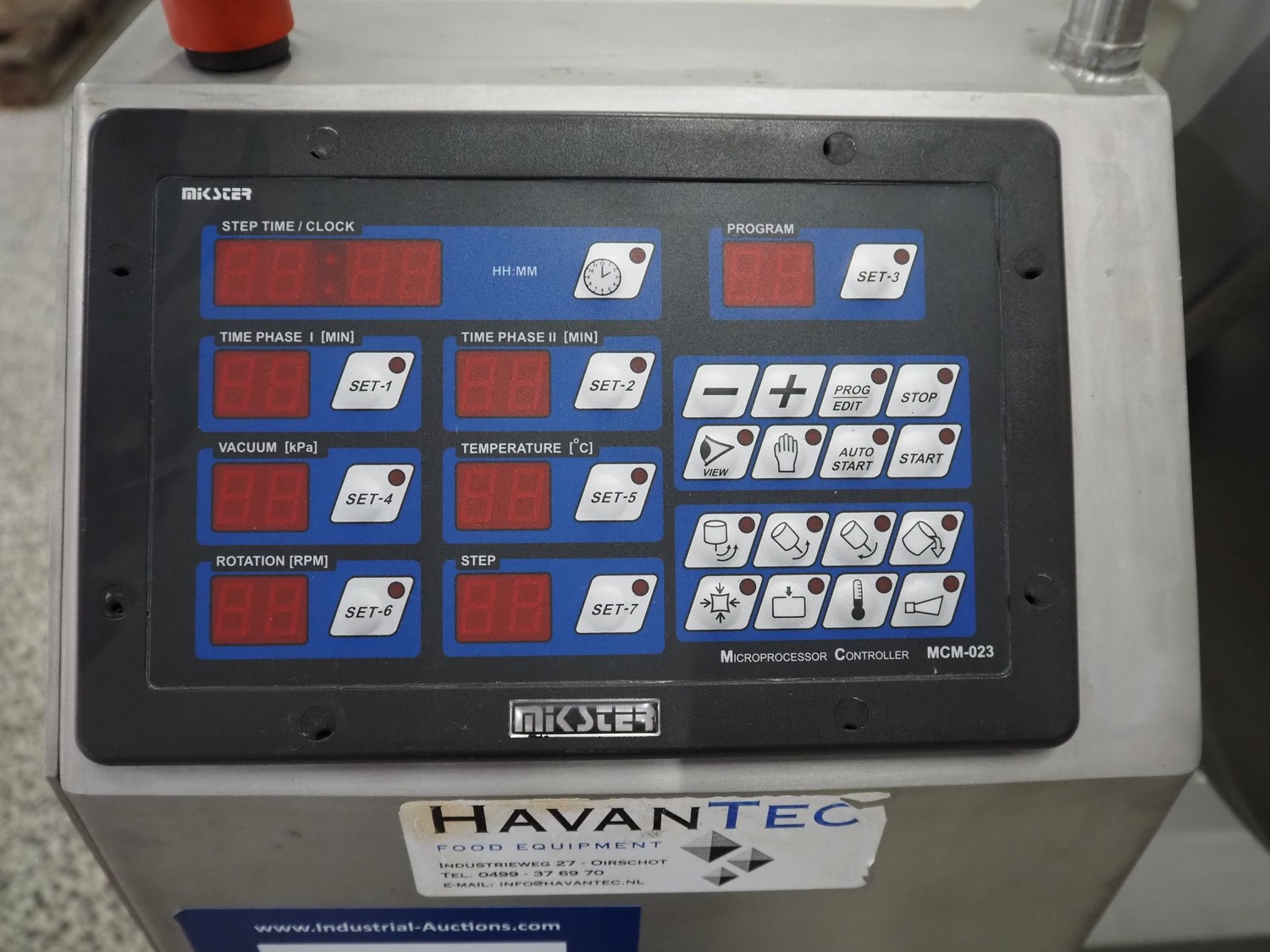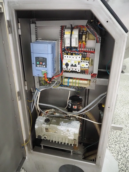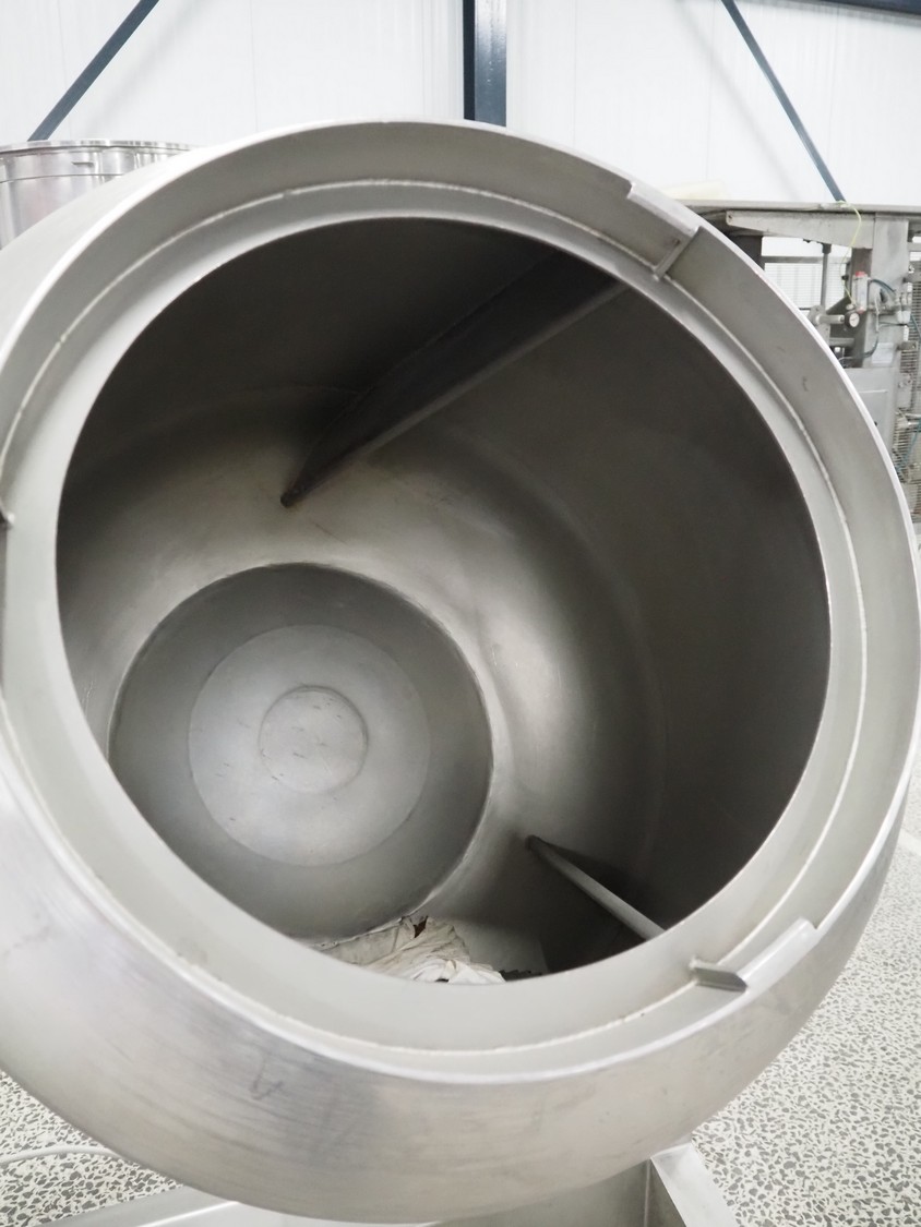 N&N vacuum tumbler, type: MV-300, number: 014, year of construction: 2005, 400 V, 50 Hz, 2 kW, weight: 320 kg, volume: 300 liter, Busch vacuum pump, type: KB 0020 D, year of construction: 2004, capacity: 20 m³ per hour, dimensions: 1430 mm x 1180 mm x 1890 mm. Incomplete, missing lid.