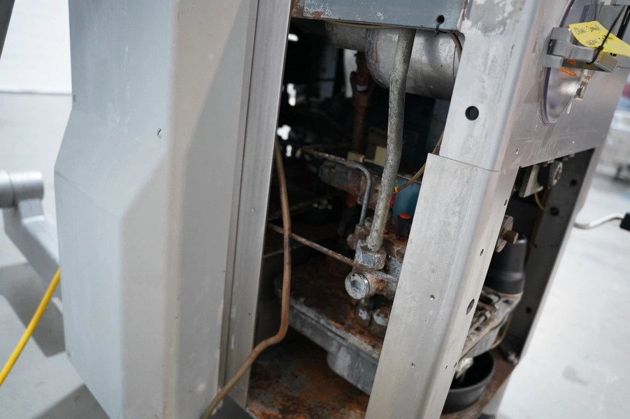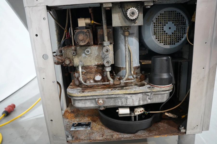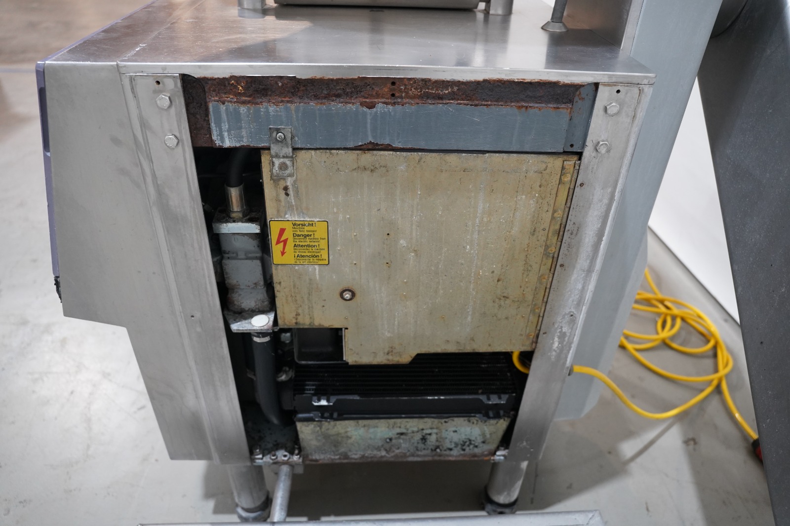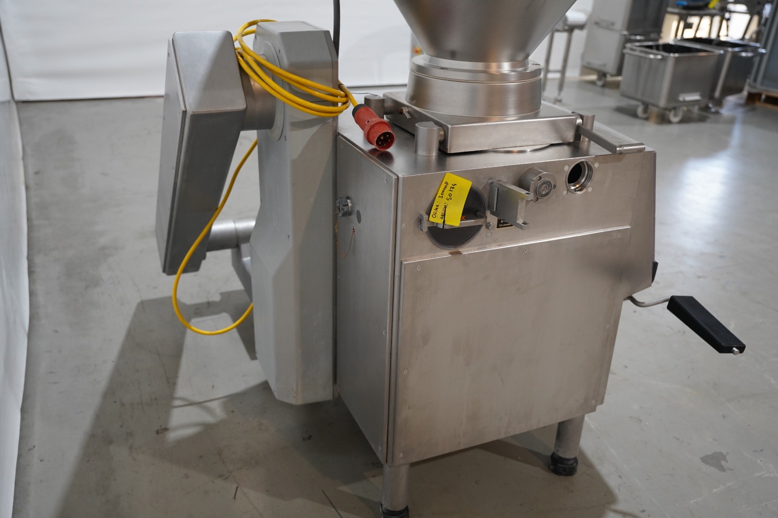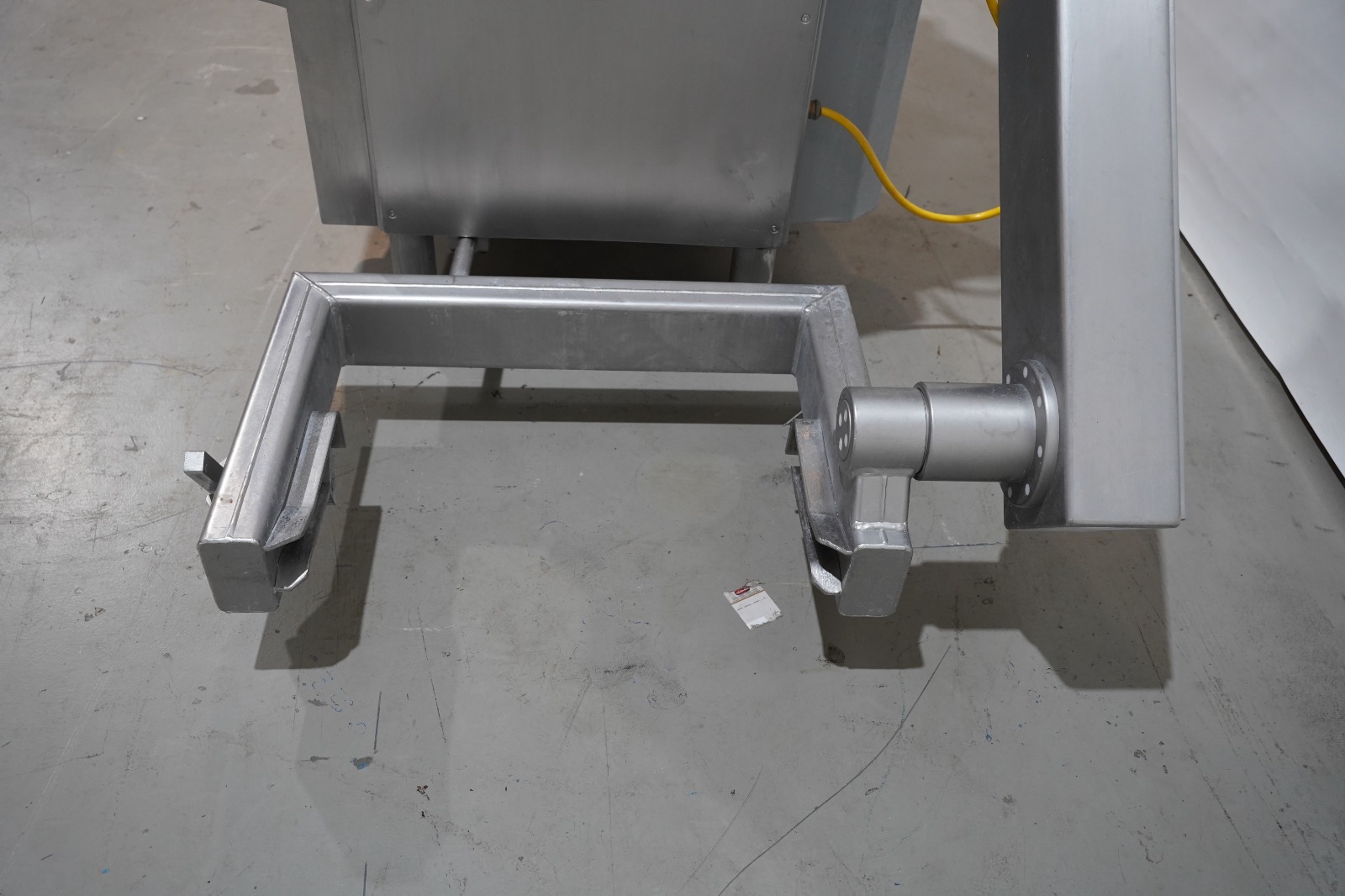Handtmann vacuum filling machine with lifter for 200 liter meat bins, type: VF 200, dimensions: 2000 mm x 1035 mm x 1900 mm.