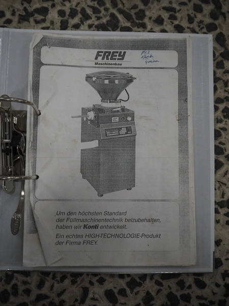 Frey vacuum filling machine, type: Konti 50, machine number: K50 23 03 88, 380 V, dimensions: 750 mm x 900 mm x 1450 mm.