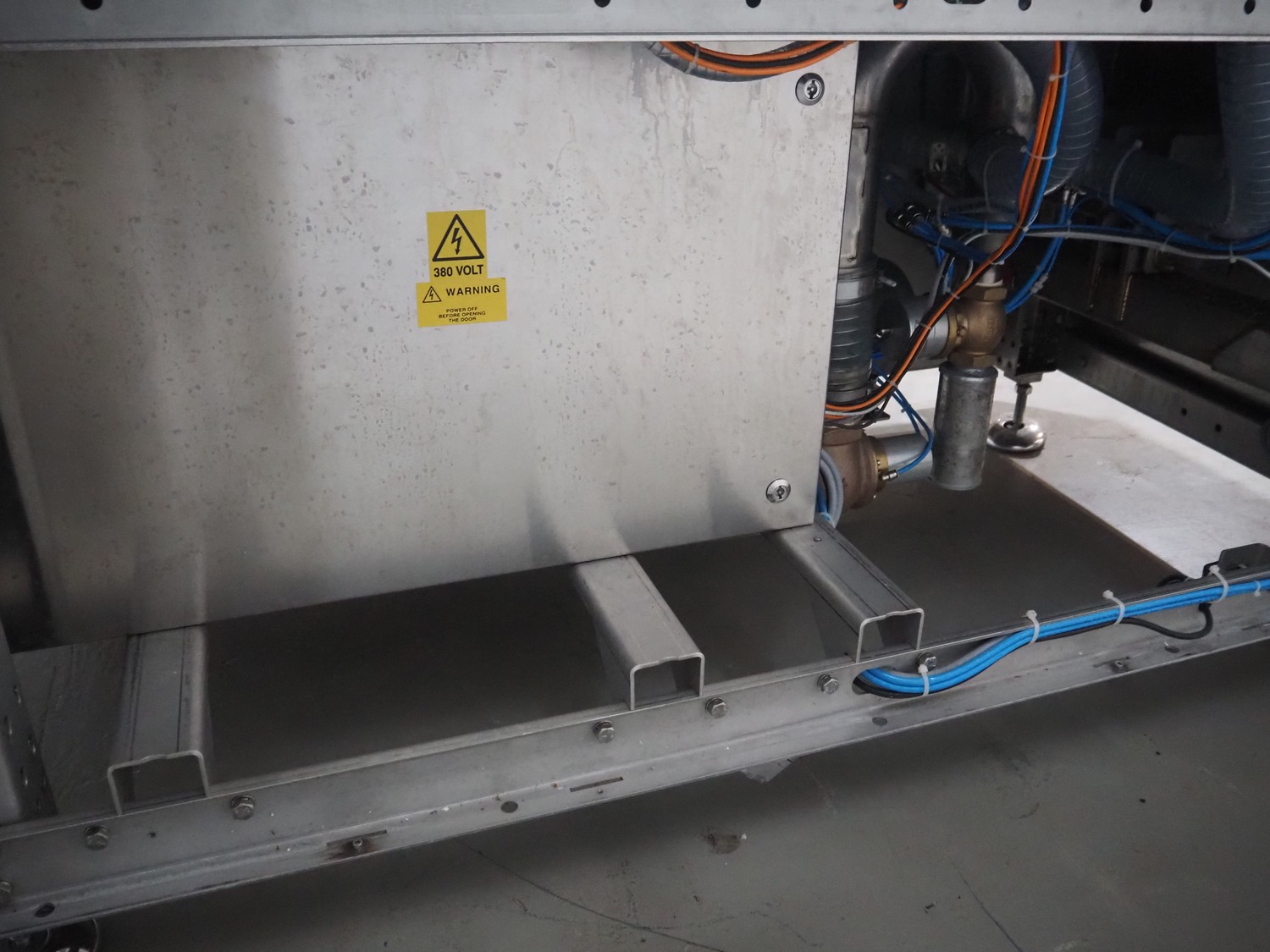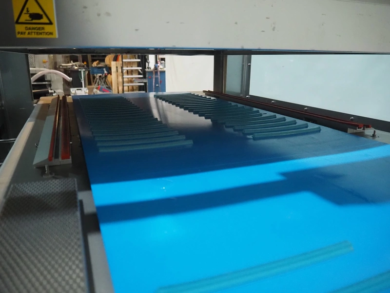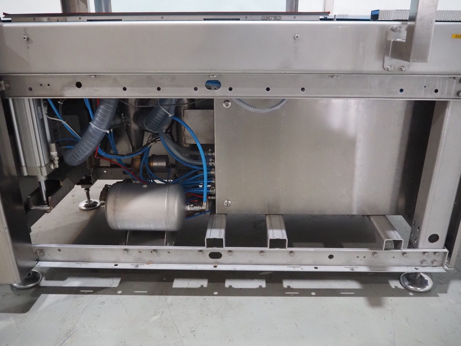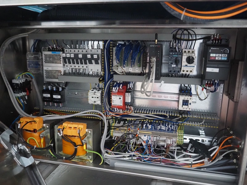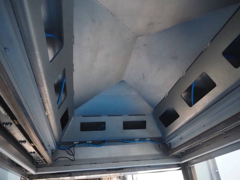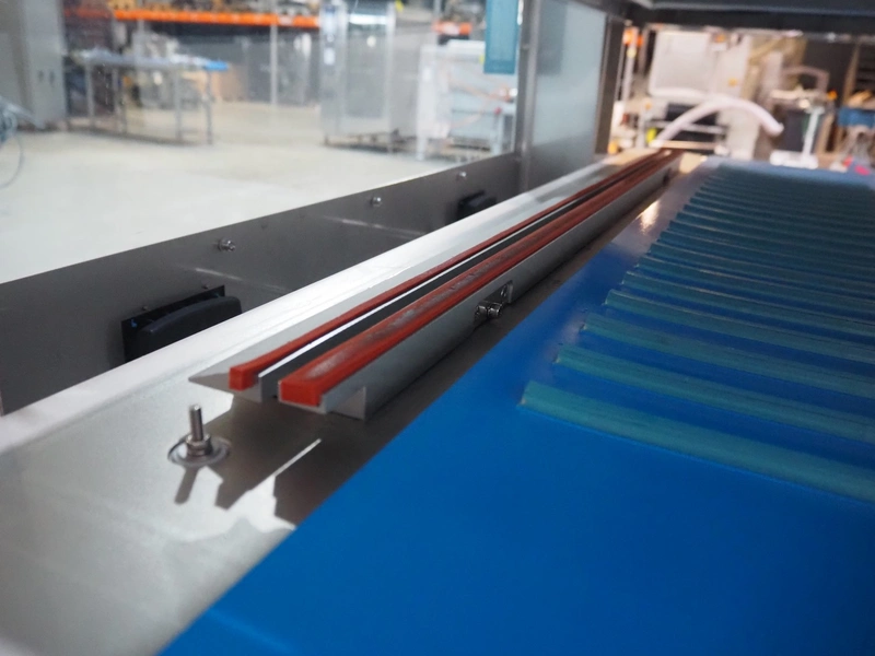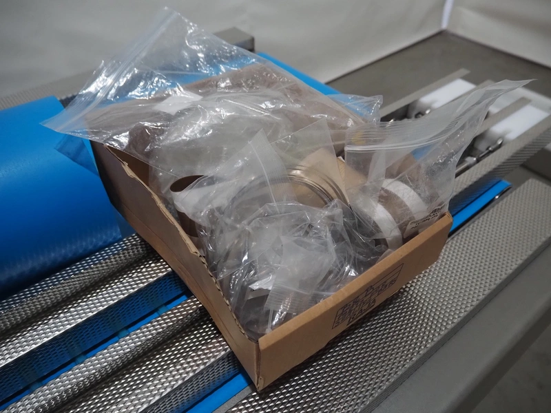 BMB belt vacuum machine, model: CP 10.65, serial number: M0000466, year of construction: 2020, 400 V, 3 Ph, 50 Hz, 4 kW, weight: 600 kg, plastic belt with dividers, belt width: 620 mm, divider height: 8 mm, distance between divider: 40 mm, seal length: (2x) 1010 mm, total dimensions: 2670 mm x 1230 mm x 1670 mm. Without vacuum pump.