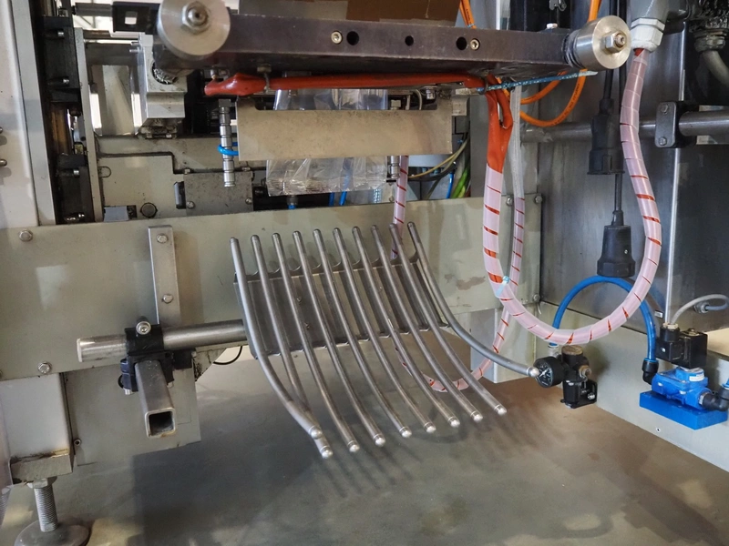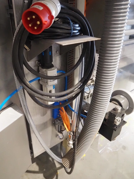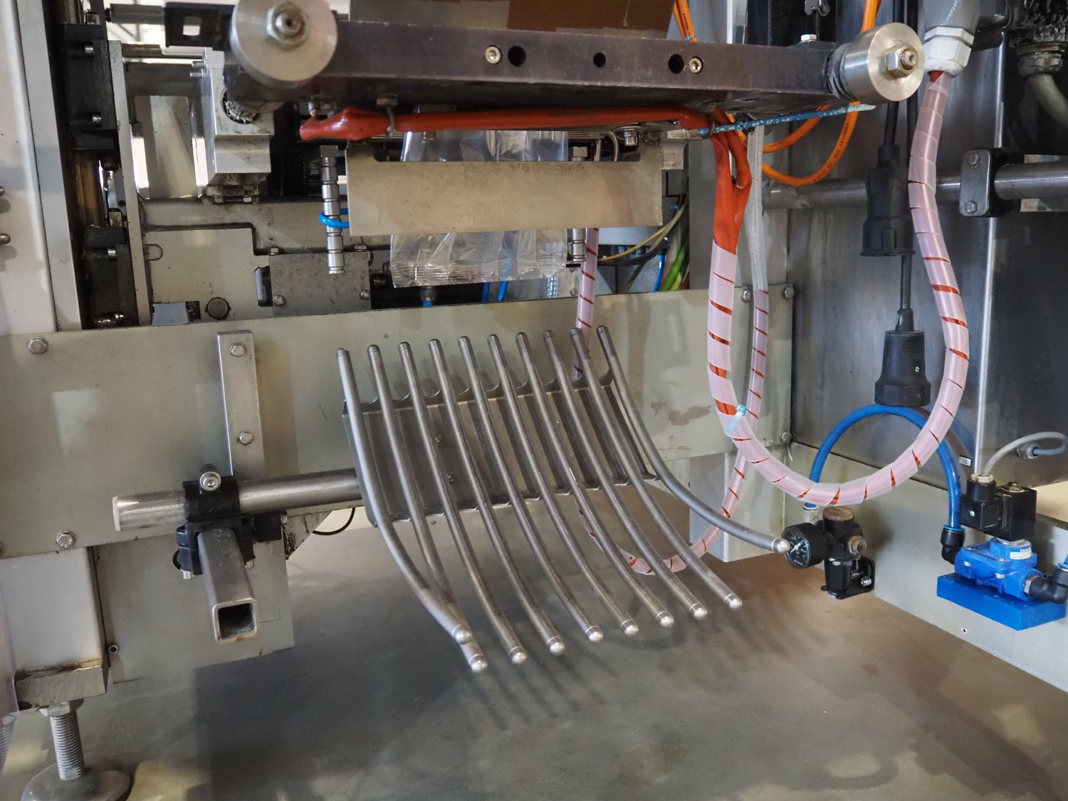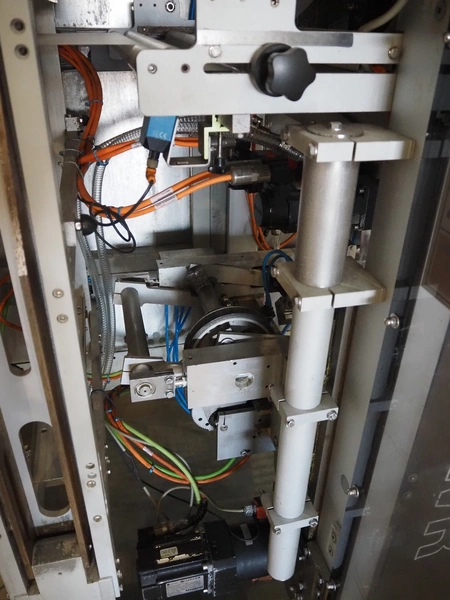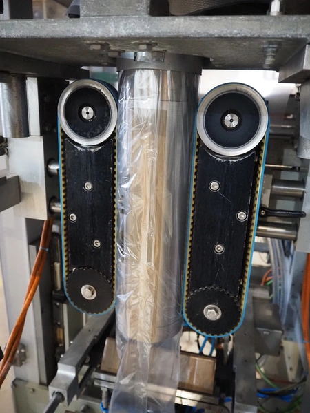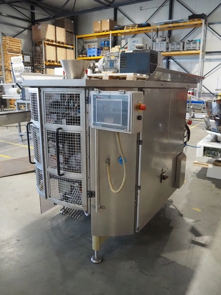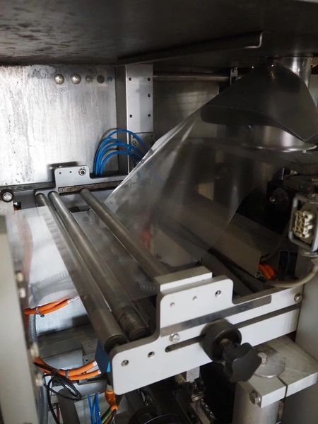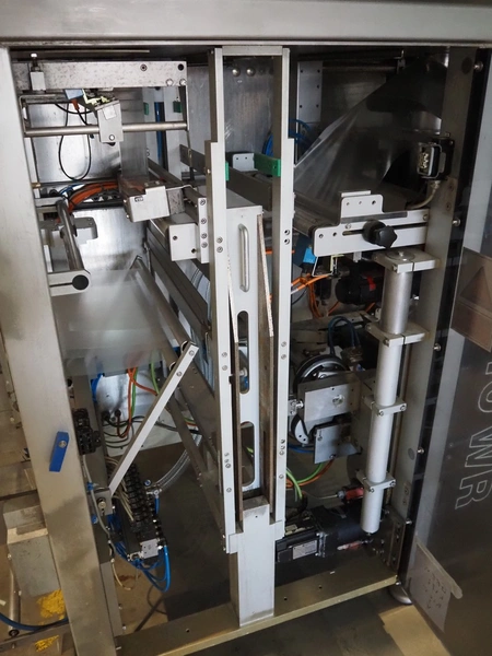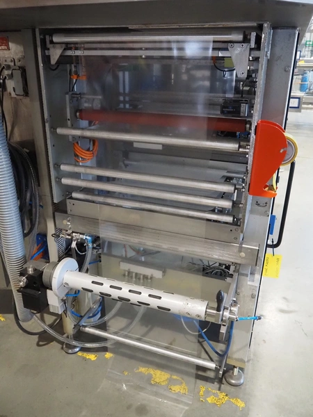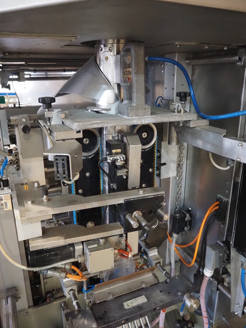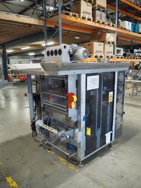 Bosch vertical bag form-, fill- and seal machine, type: SVE 2510 WR, number: 808689MS7533N, year of construction: 2006, film width: 443, diameter filling pipe: 115 mm, vertical seal length: 350 mm, horizontal seal length: 285 mm, total dimensions: 2550 mm x 1500 mm x 1800 mm. Including Garden Denver vacuum pump, type: V-VC 150 (20), capacity: 150 m³ per hour, dimensions: 800 mm x 450 mm x 300 mm.
