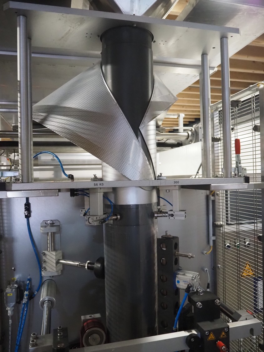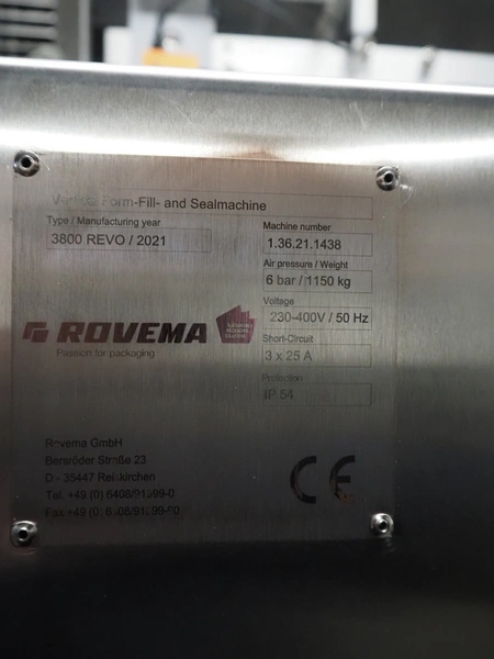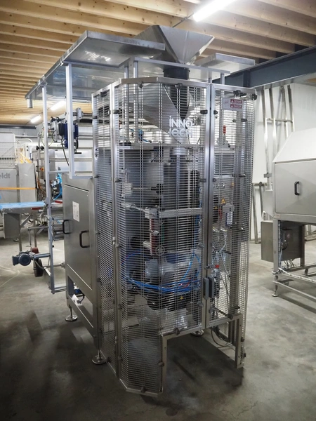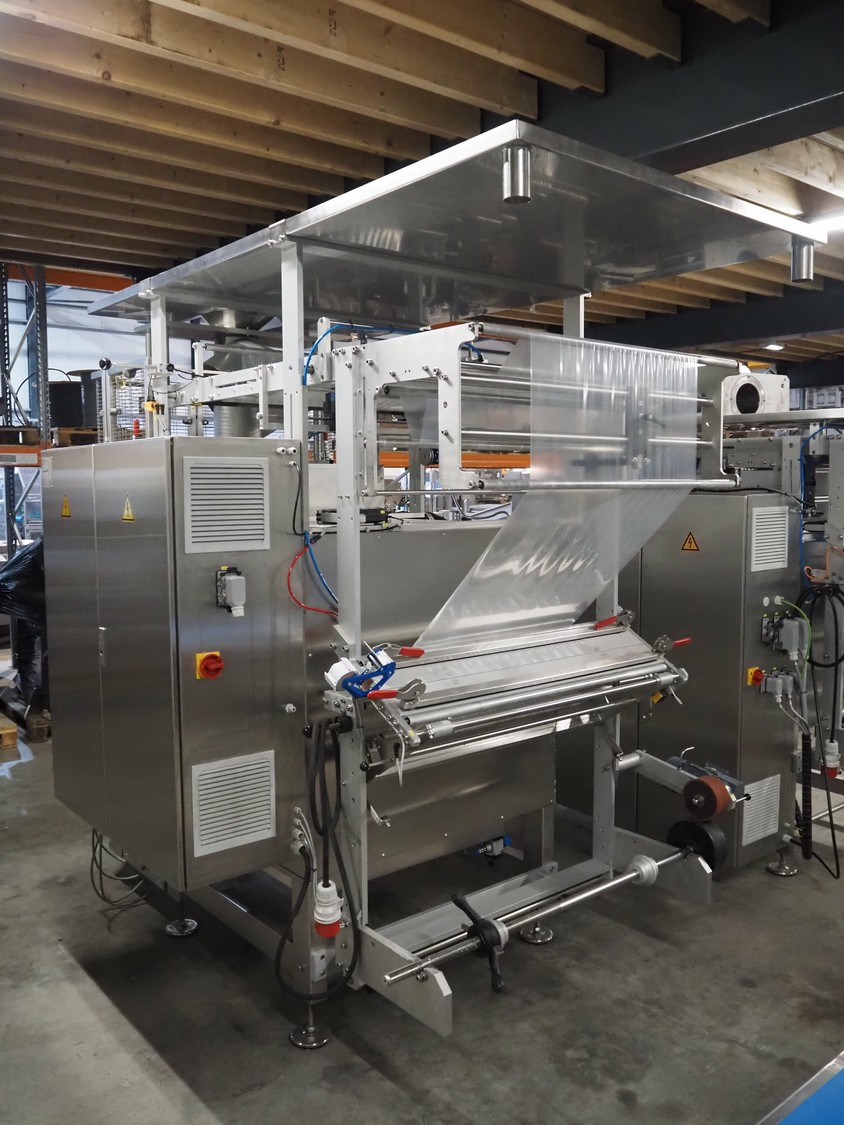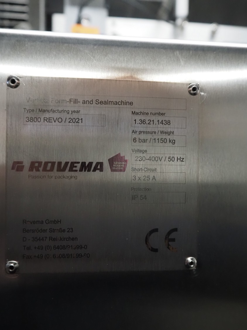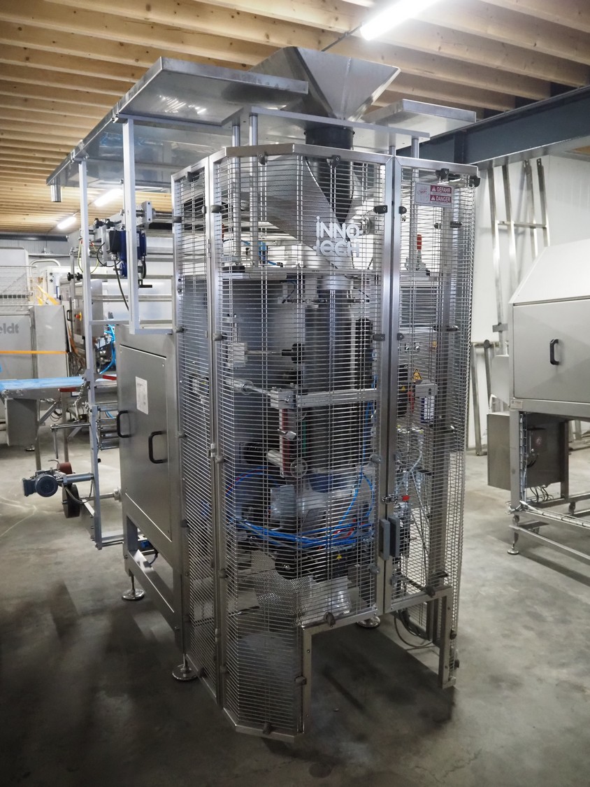 Innotech Verpackungsmaschinen GmbH vertical bag form-, fill- and seal machine, type: 3800 REVO, serial number: 1.36.21.1438, year of construction: 2021, 230-400 V, 3 Ph, 50 Hz, 25 A, film width: 690 mm, diameter pipe: 200 mm, vertical seal length: 560 mm, horizontal seal length: 400 mm, total dimensions: 2750 mm x 2000 mm x 2420 mm. Including extra filling pipe.