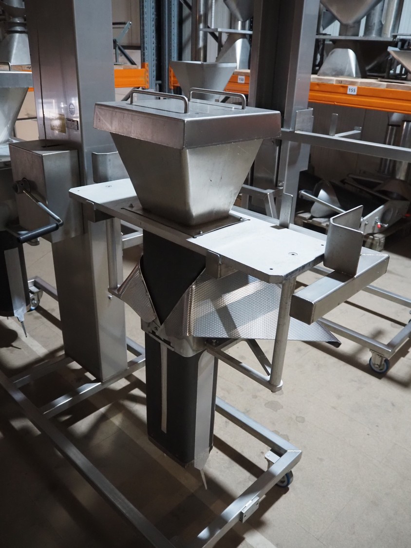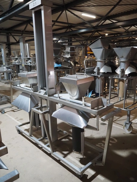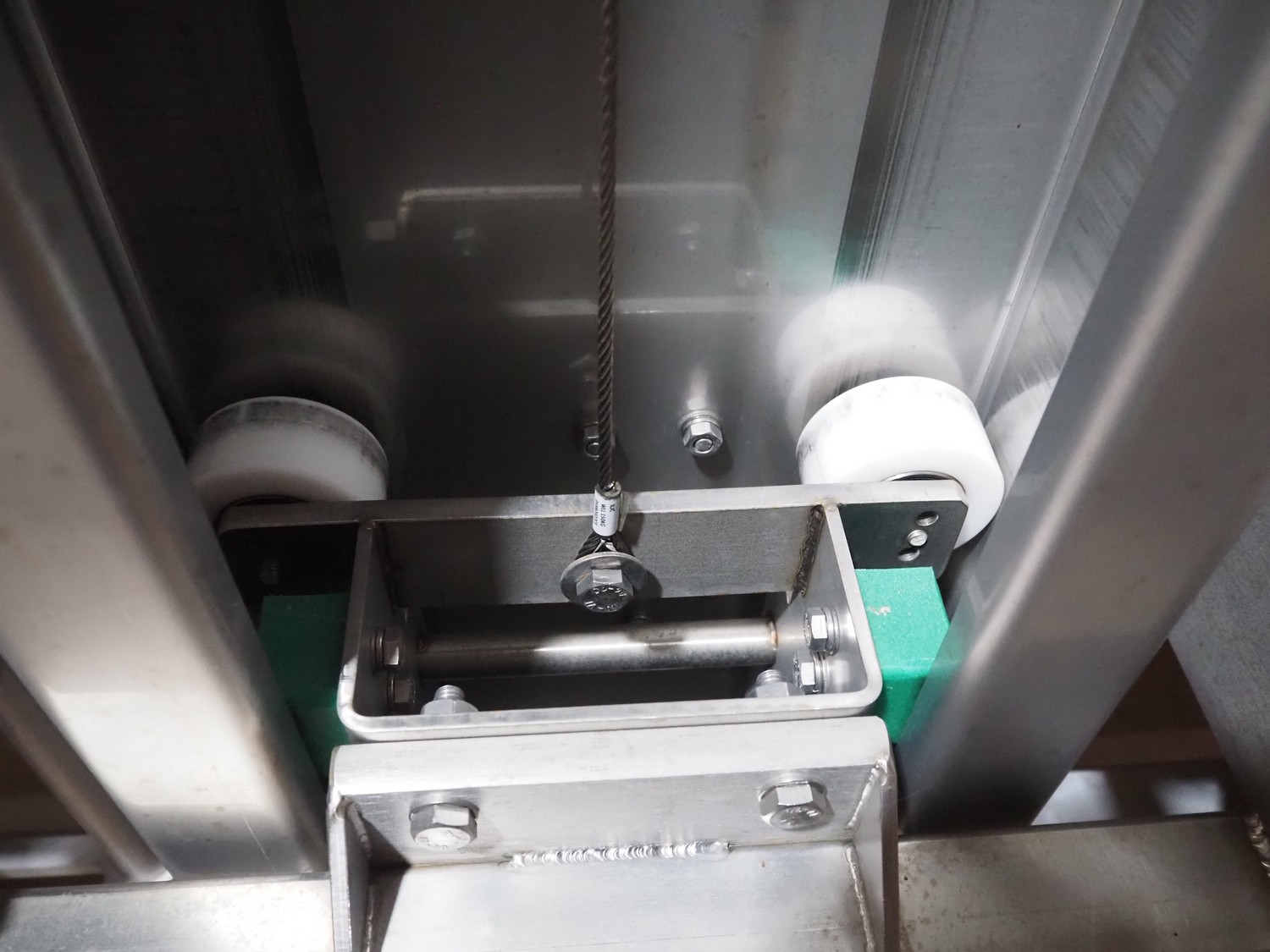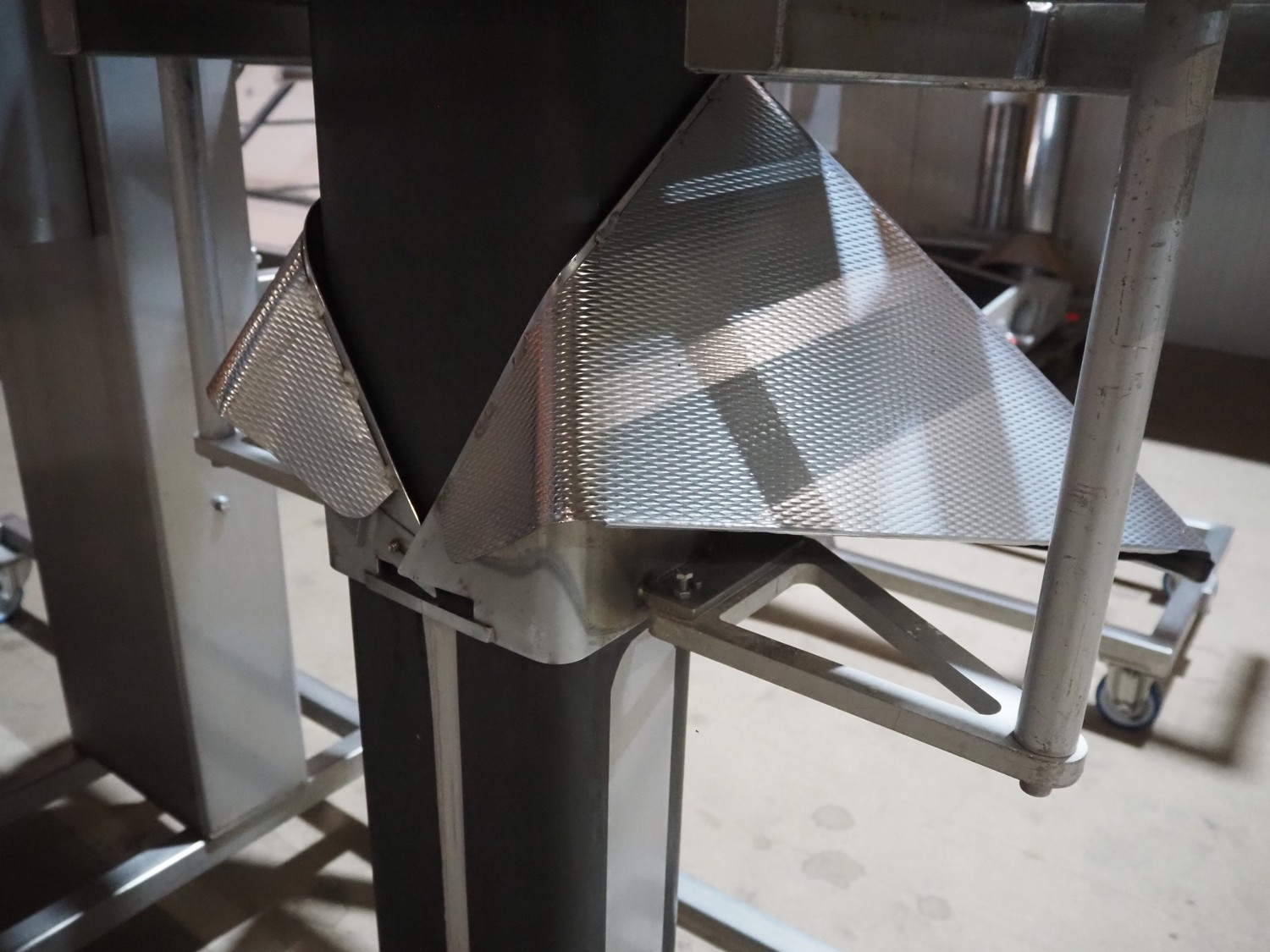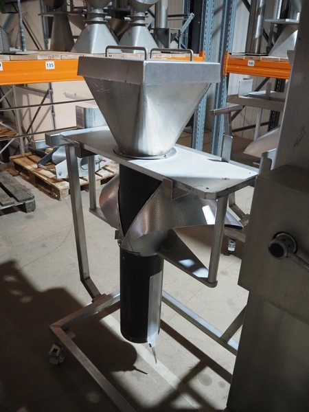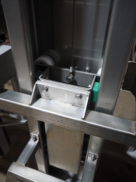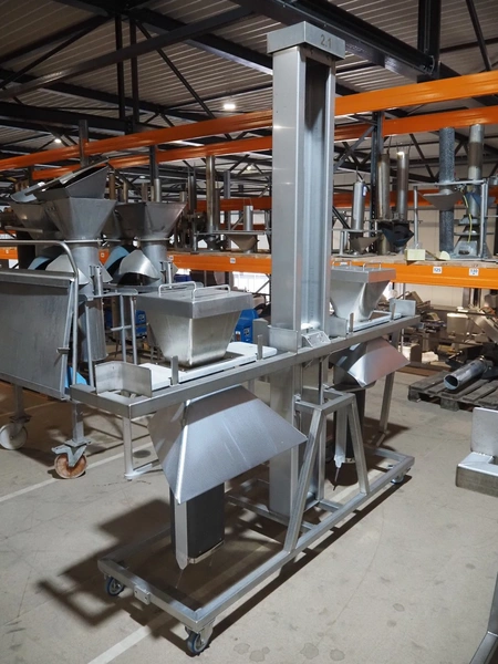Mennens mobile lifter for filling pipes, dimensions: 2350 mm x 600 mm x 2380 mm. Including 2 filling pipes, clearance pipes: Ø 170 mm and 200 mm x 125 mm.