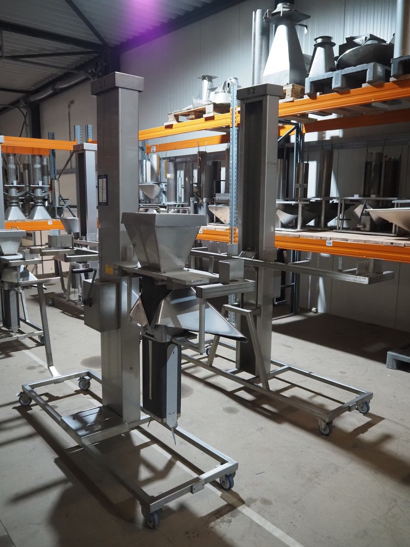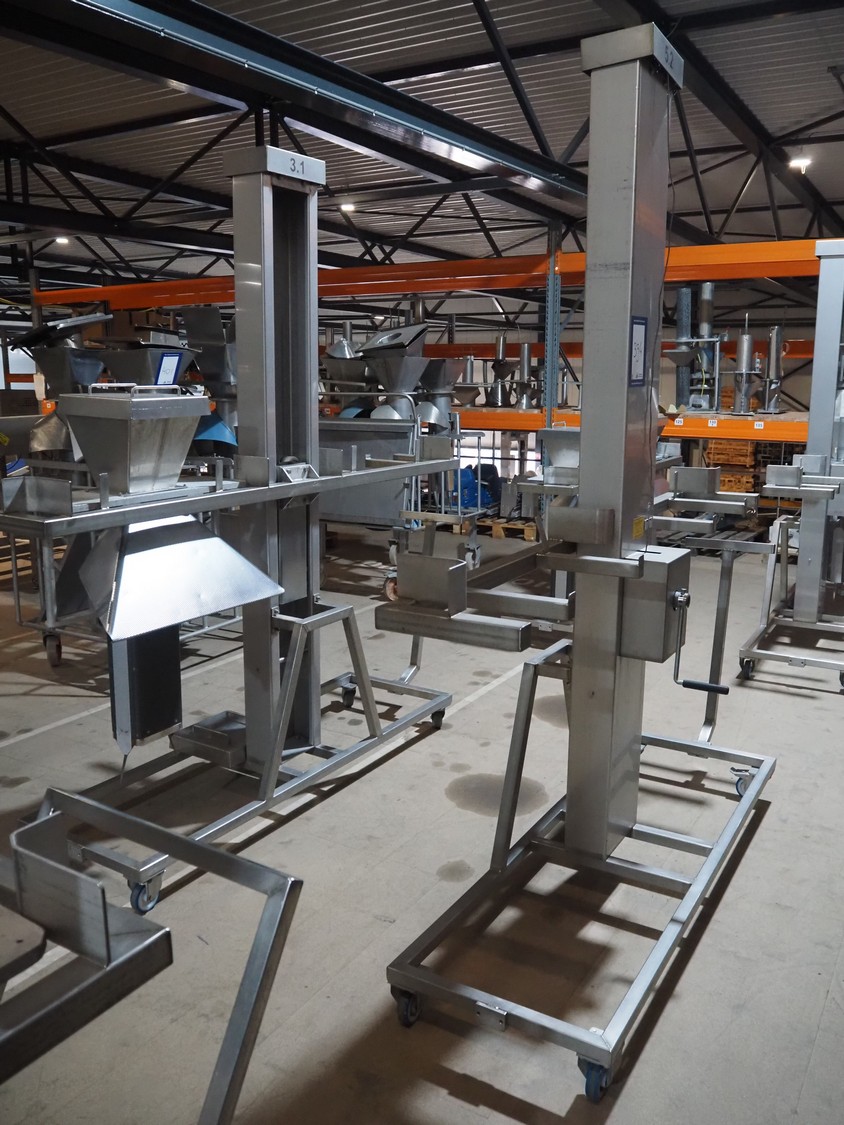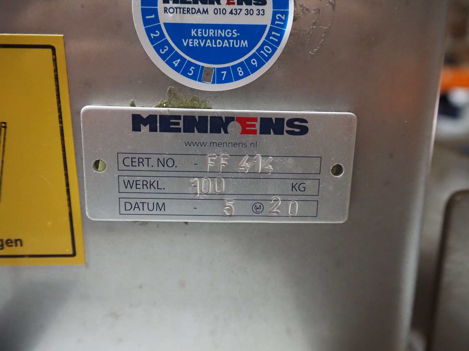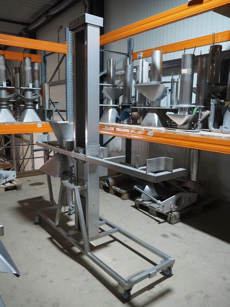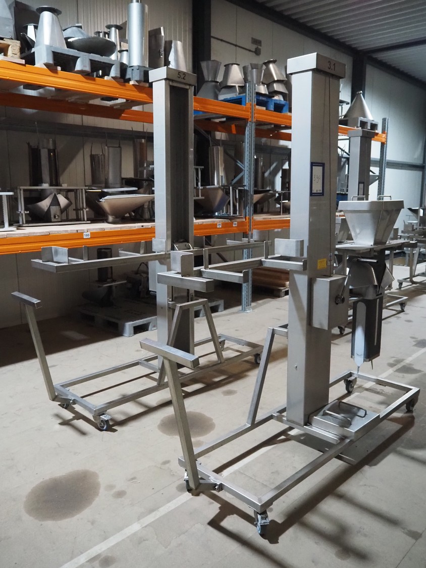 Mennens mobile lifter for filling pipes, dimensions: 2350 mm x 600 mm x 2380 mm. Including 1 filling pipe, clearance pipe: Ø 140 mm.