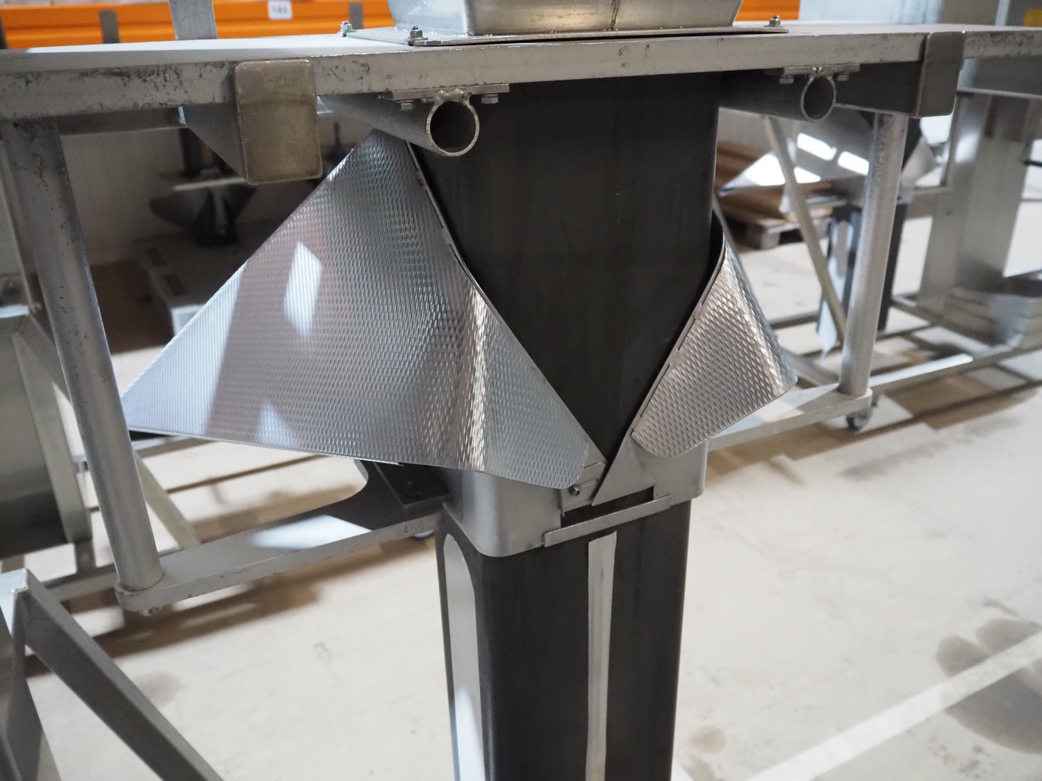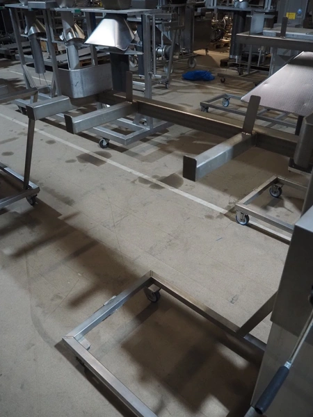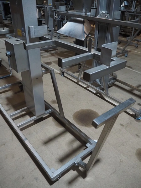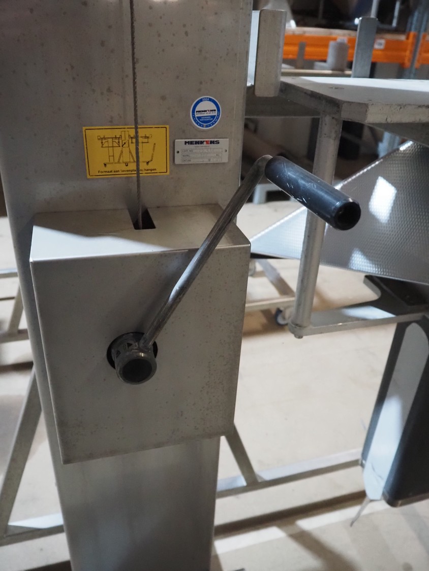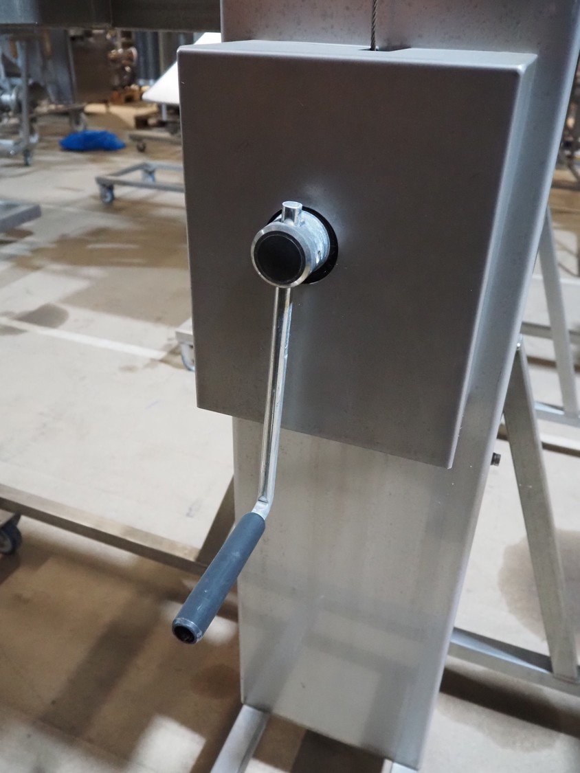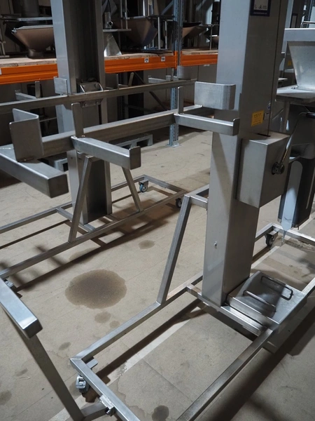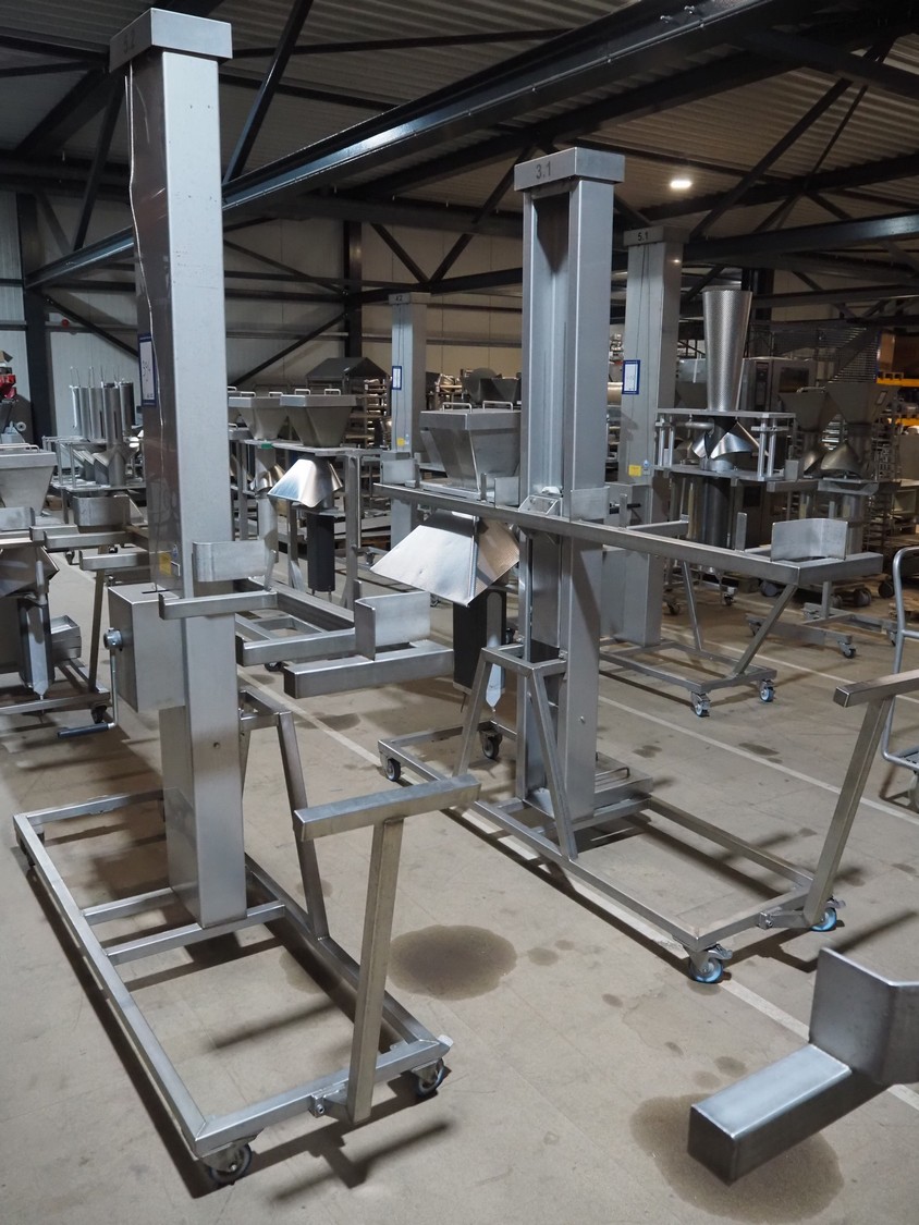 2 Mennens mobile lifters for filling pipes, dimensions: (2x) 2350 mm x 600 mm x 2380 mm. Including 1 filling pipe, clearance pipe: 200 mm x 125 mm.