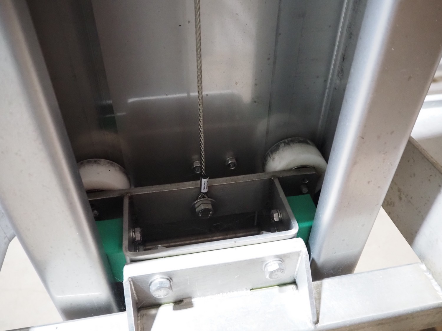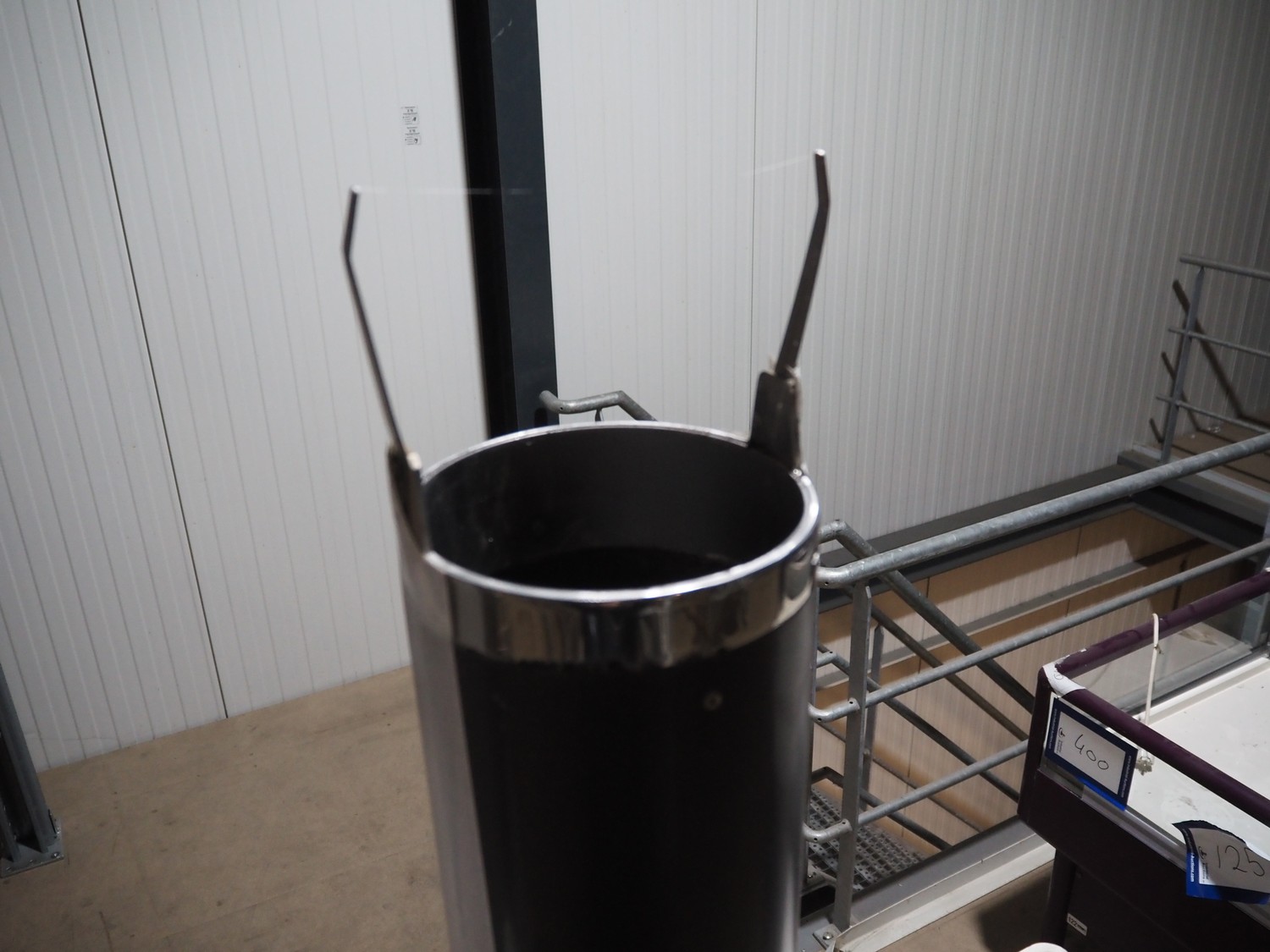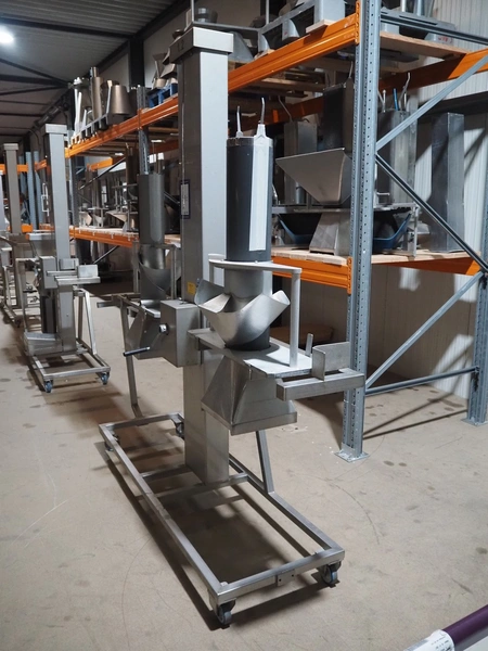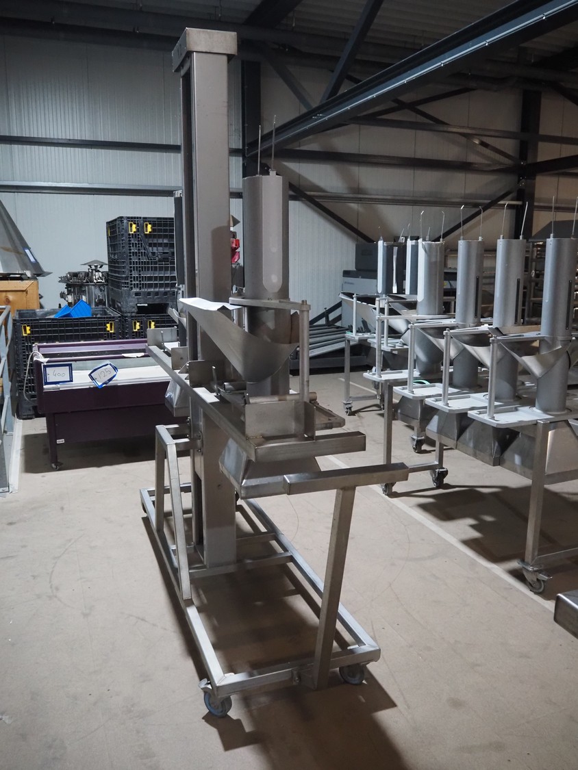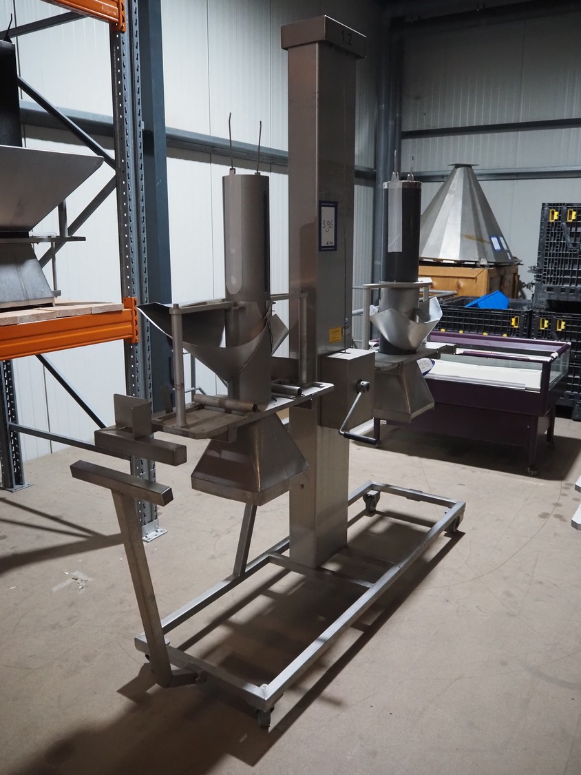 Mennens mobile lifter for filling pipes, dimensions: 2350 mm x 600 mm x 2380 mm. Including 2 filling pipes, clearance pipes: Ø 135 mm and Ø 160 mm.