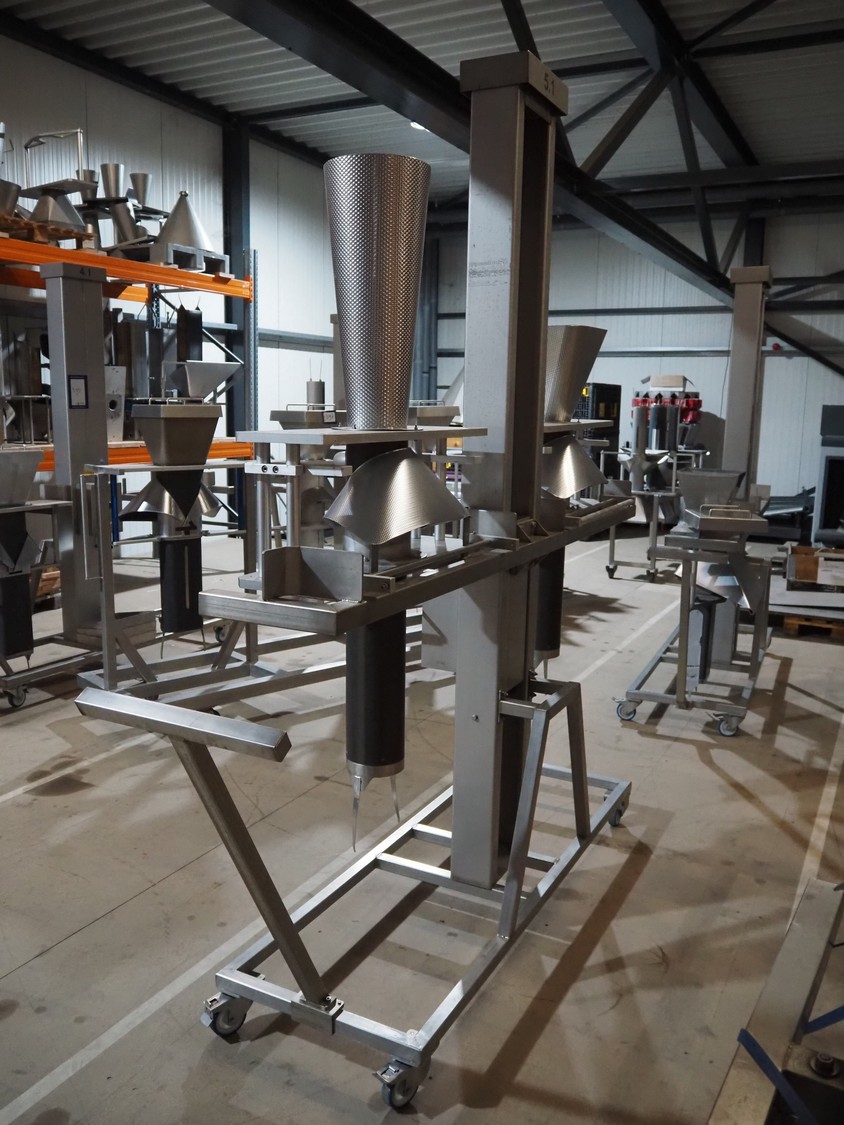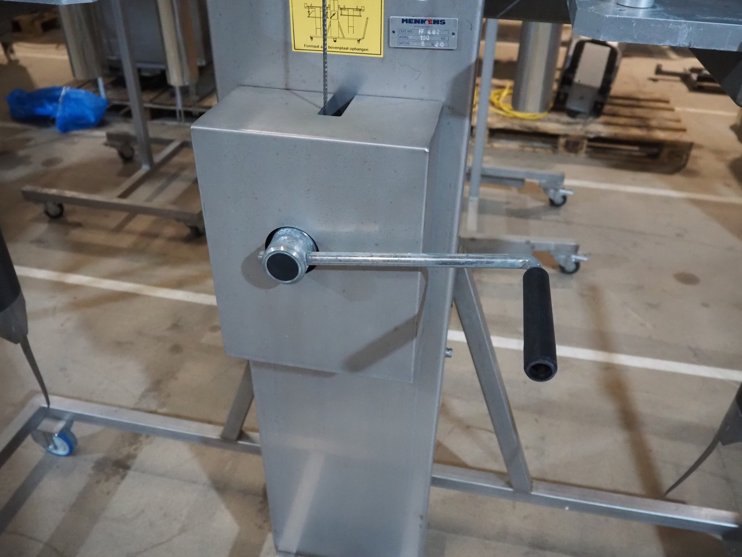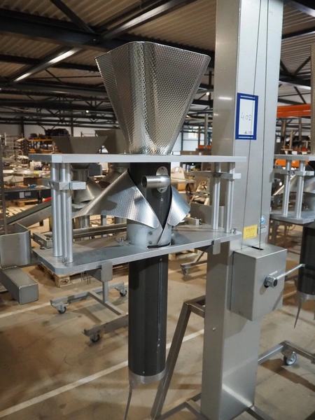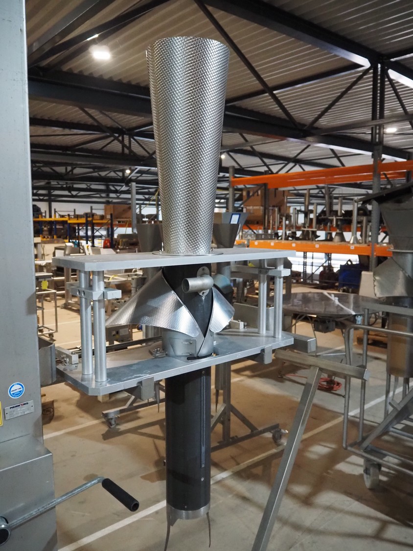 Mennens mobile lifter for filling pipes, dimensions: 2350 mm x 600 mm x 2380 mm. Including 2 filling pipes, clearance pipes: (2x) Ø 145 mm.