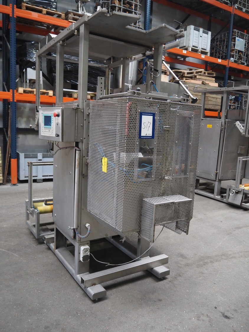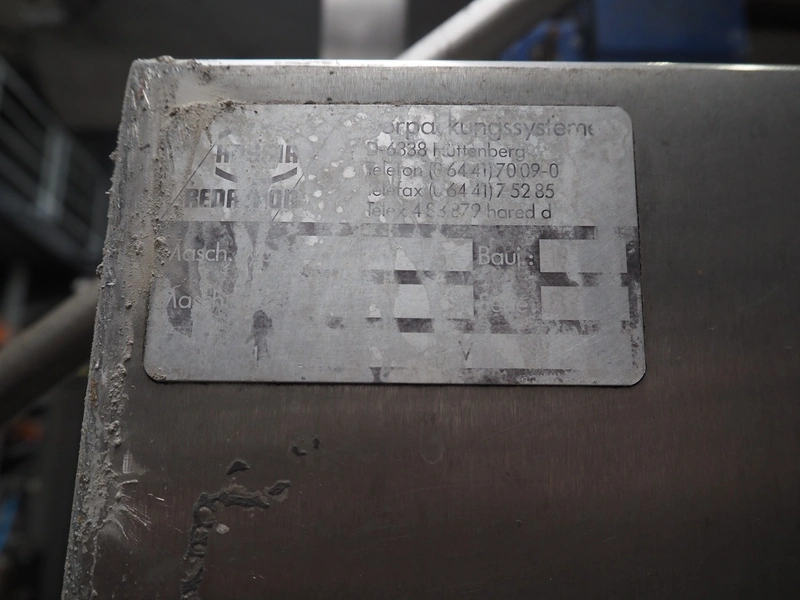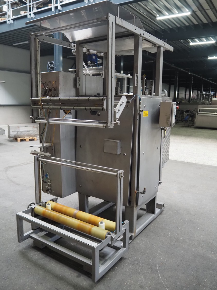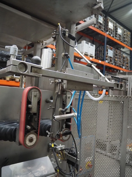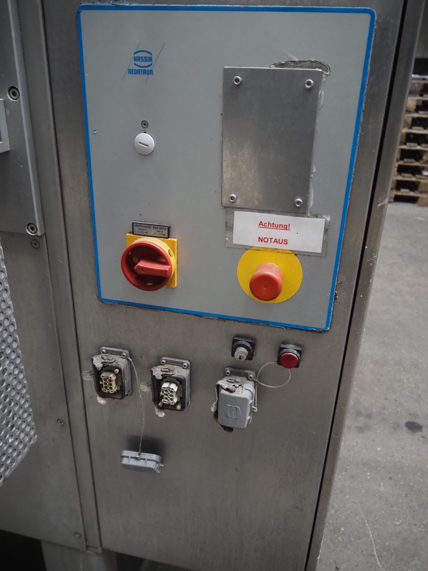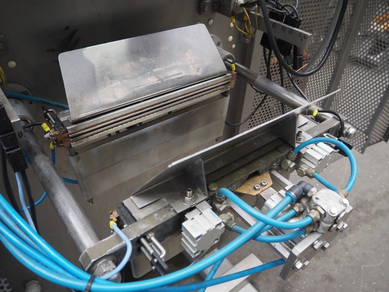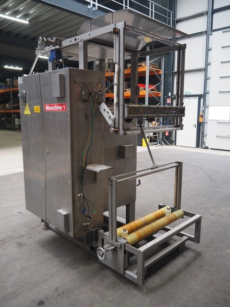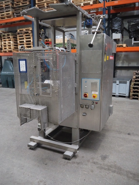 Hassia Redatron vertical bag forming, filling and sealing machine, vertical seal length: 550 mm, horizontal seal length: 400 mm, total dimensions: 2480 mm x 1460 mm x 2530 mm. Technical condition unknown. Incomplete.