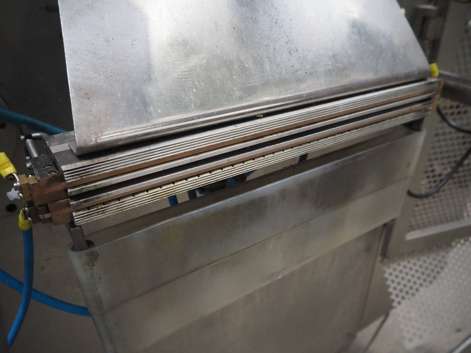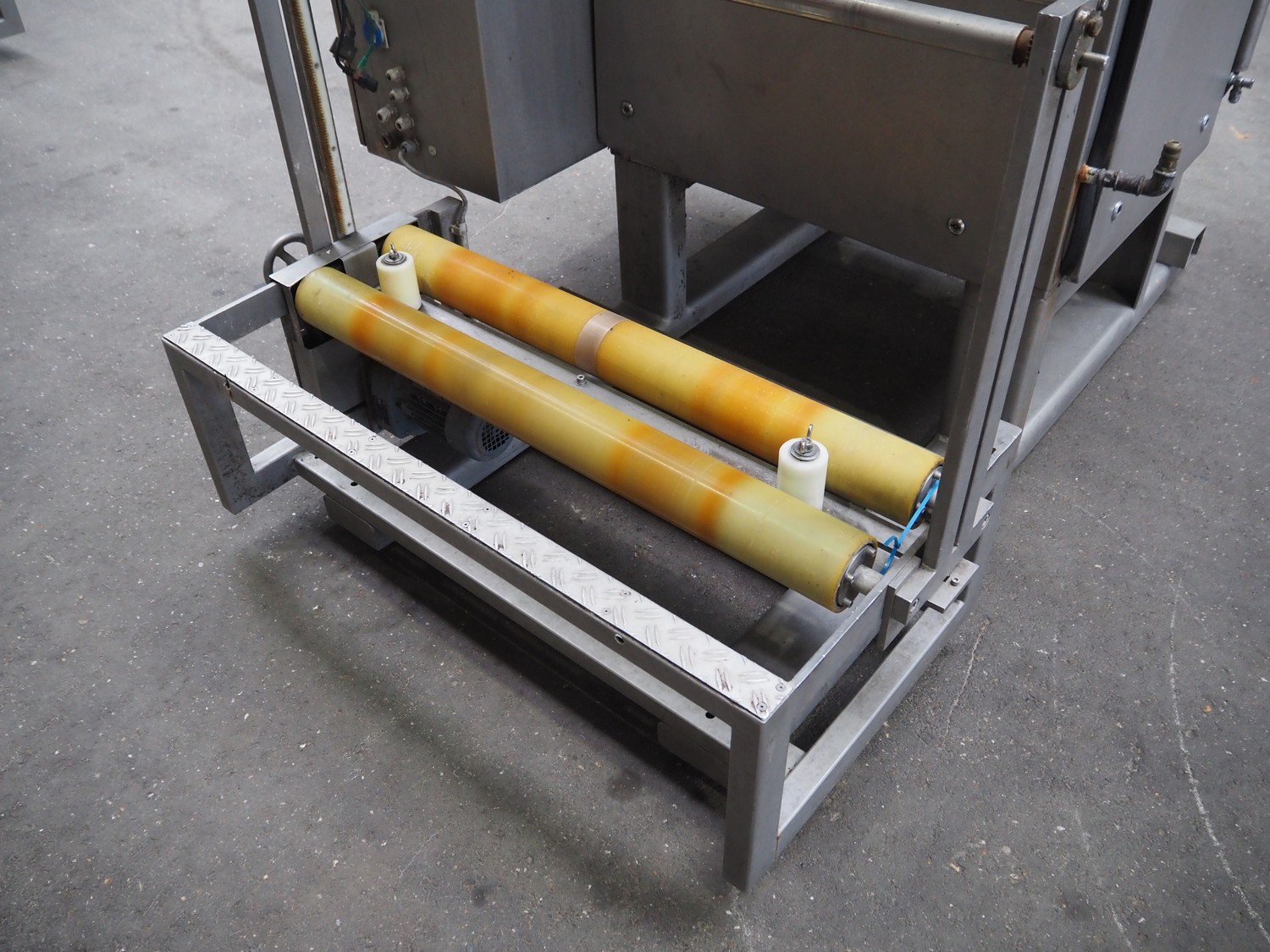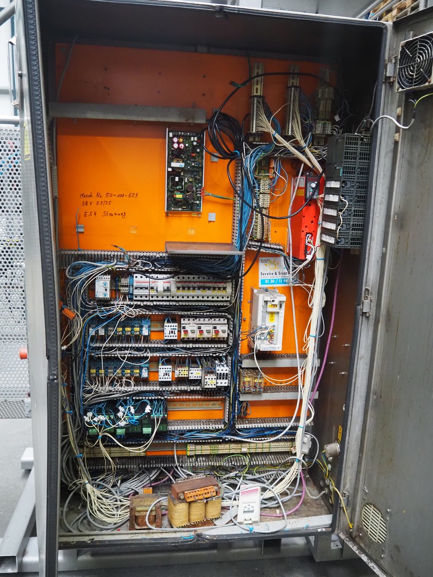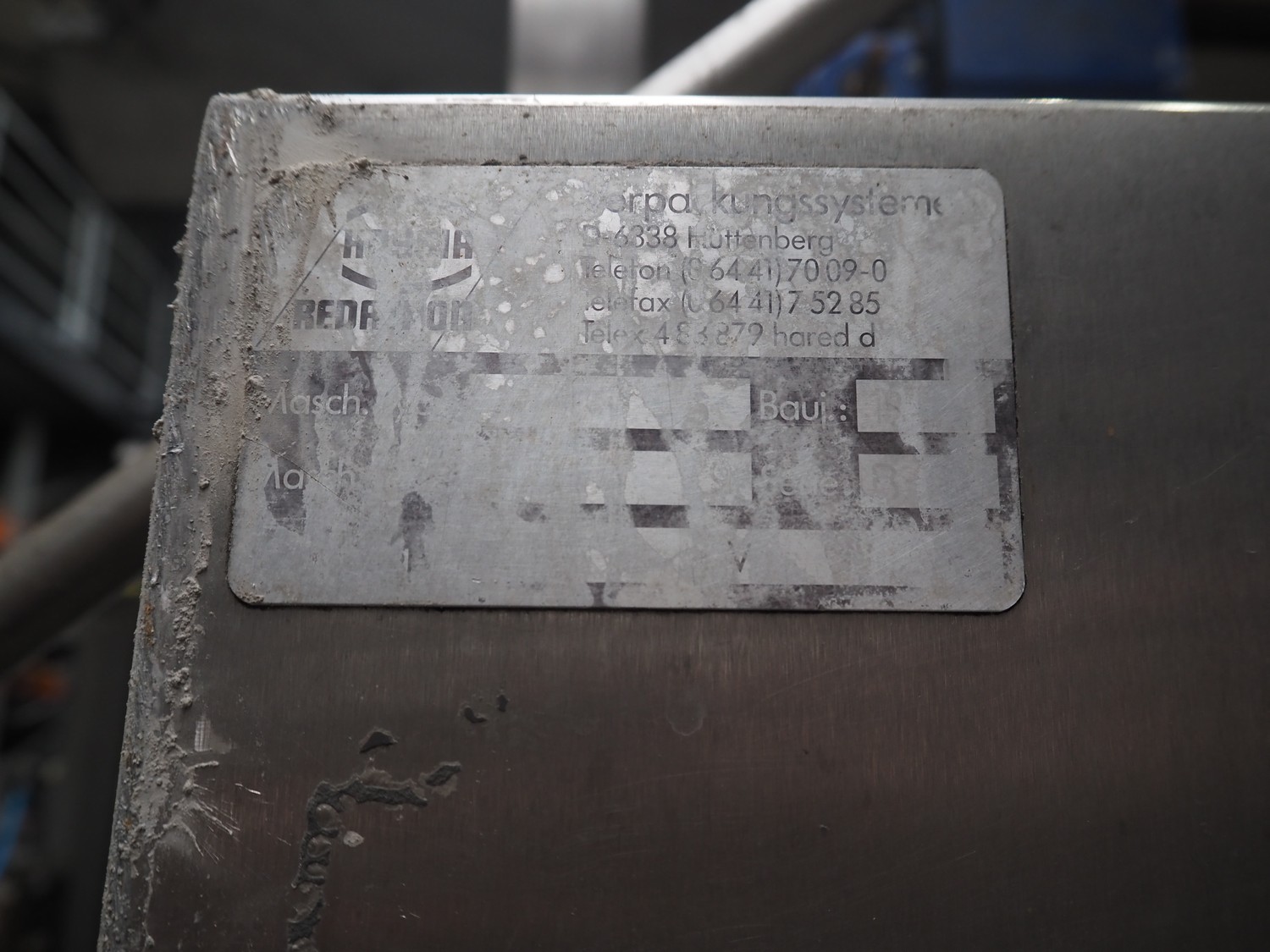 Hassia Redatron vertical bag forming, filling and sealing machine, vertical seal length: 550 mm, horizontal seal length: 400 mm, total dimensions: 2480 mm x 1460 mm x 2530 mm. Technical condition unknown. Incomplete.