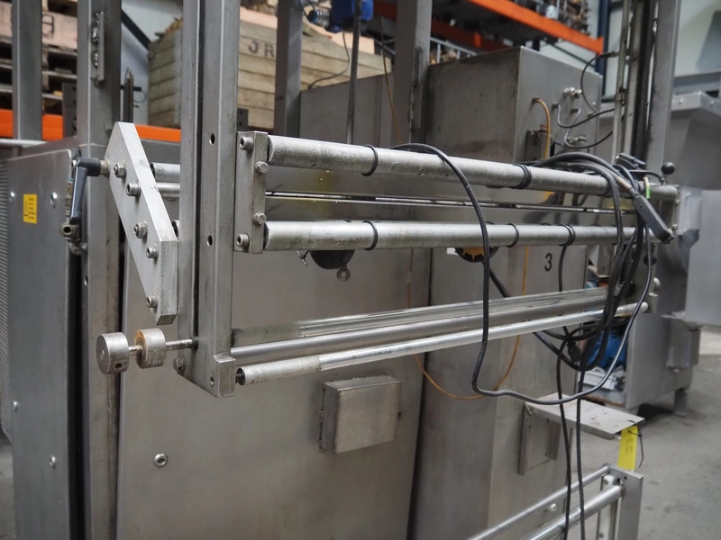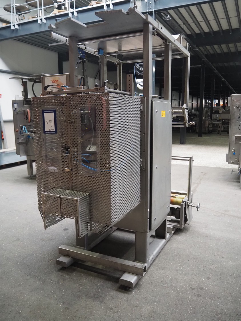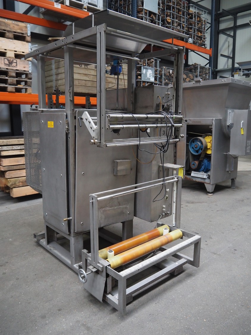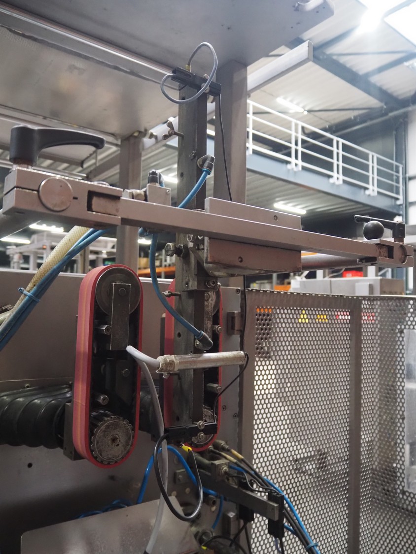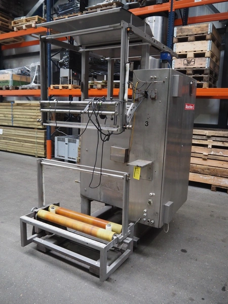 Hassia Redatron vertical bag forming, filling and sealing machine, vertical seal length: 550 mm, horizontal seal length: 400 mm, total dimensions: 2480 mm x 1460 mm x 2530 mm. Technical condition unknown. Incomplete.