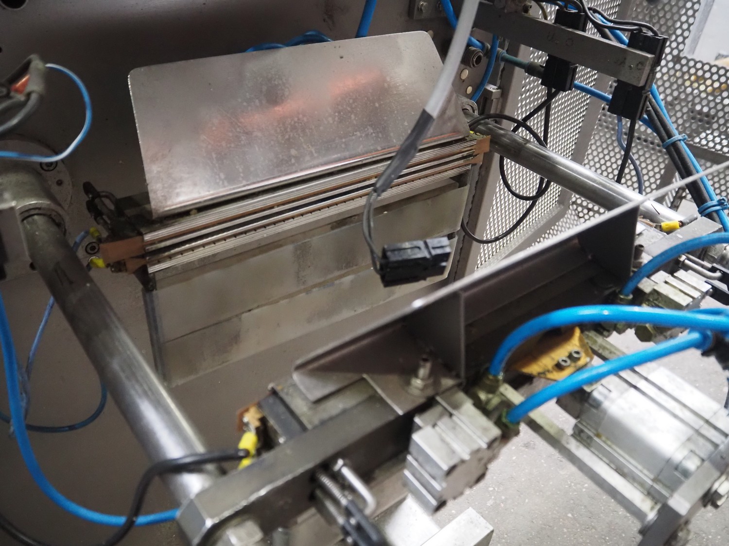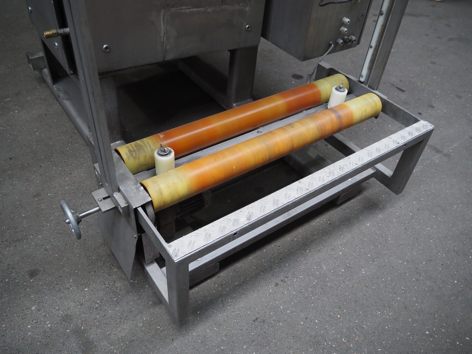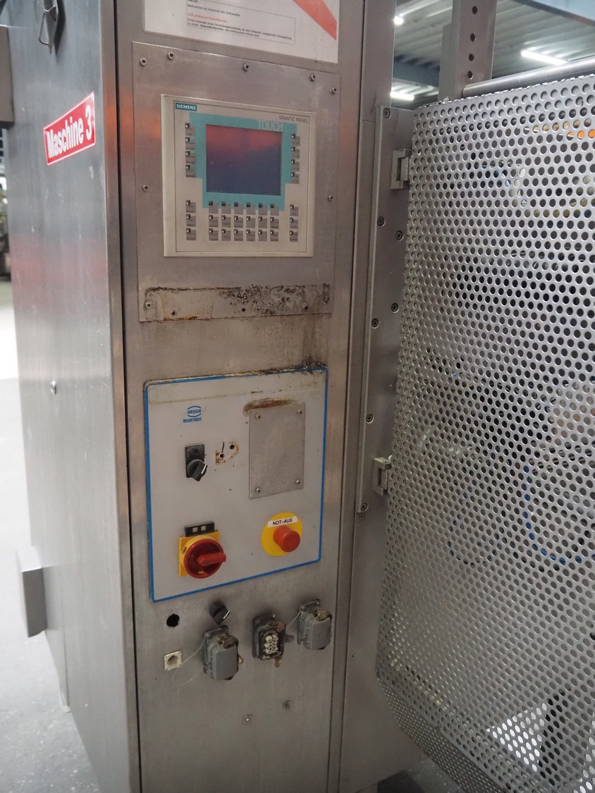 Hassia Redatron vertical bag forming, filling and sealing machine, vertical seal length: 550 mm, horizontal seal length: 400 mm, total dimensions: 2480 mm x 1460 mm x 2530 mm. Technical condition unknown. Incomplete.