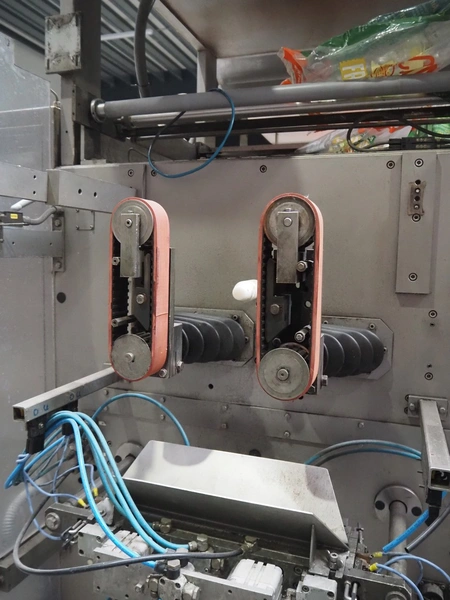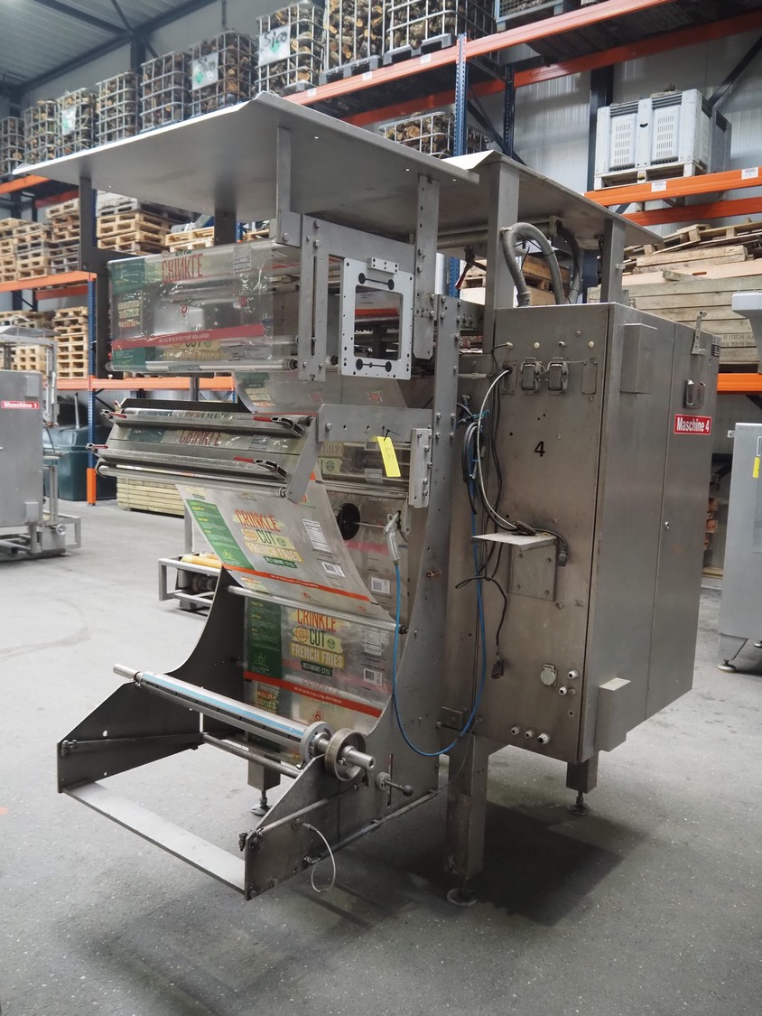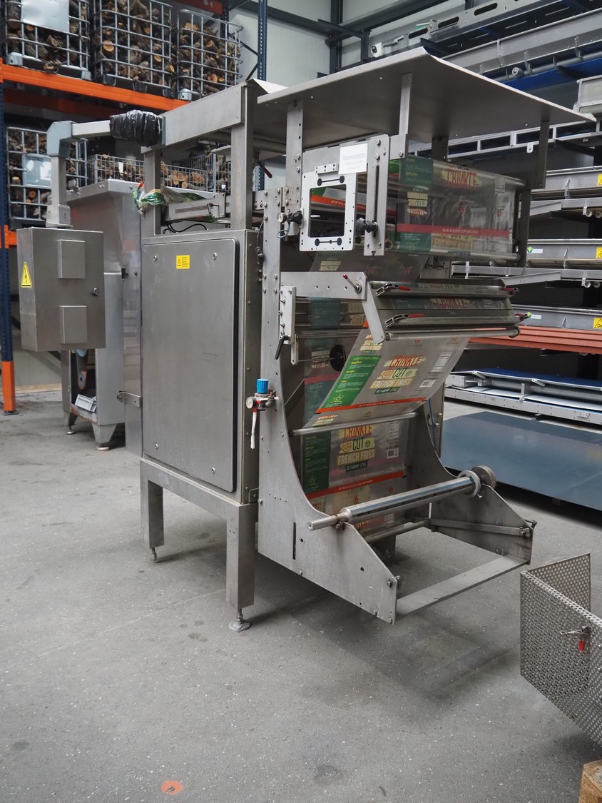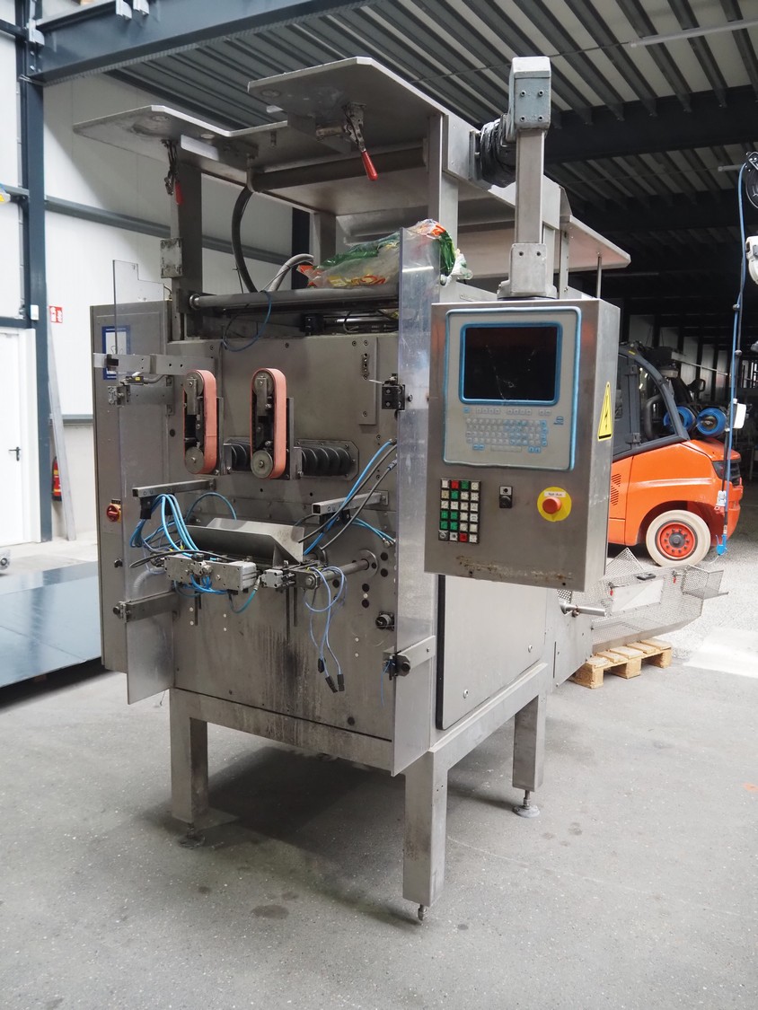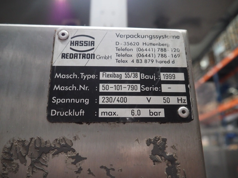 Hassia Redatron vertical bag forming, filling and sealing machine, type: Flexibag 55/38, machine number: 50-101-790, year of construction: 1999, 230/400 V, 50 Hz, film width: 730 mm, vertical seal length: 550 mm, horizontal seal length: 400 mm, total dimensions: 2480 mm x 1460 mm x 2530 mm. Technical condition unknown. Incomplete.