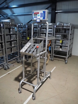Systec mobile weighing scale with tub, type: IT 1000, serial number: 1602074, maximum weight: 30 kg, minimum weight: 0.2 kg, e=- 0.…€ 150,000 bids16/04/2026 14:40 -
