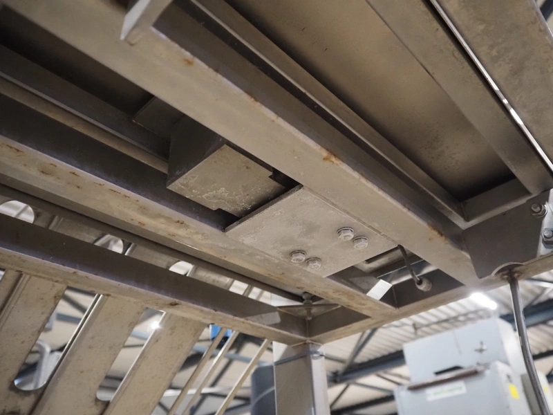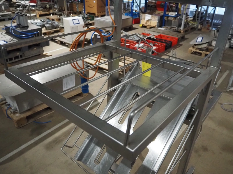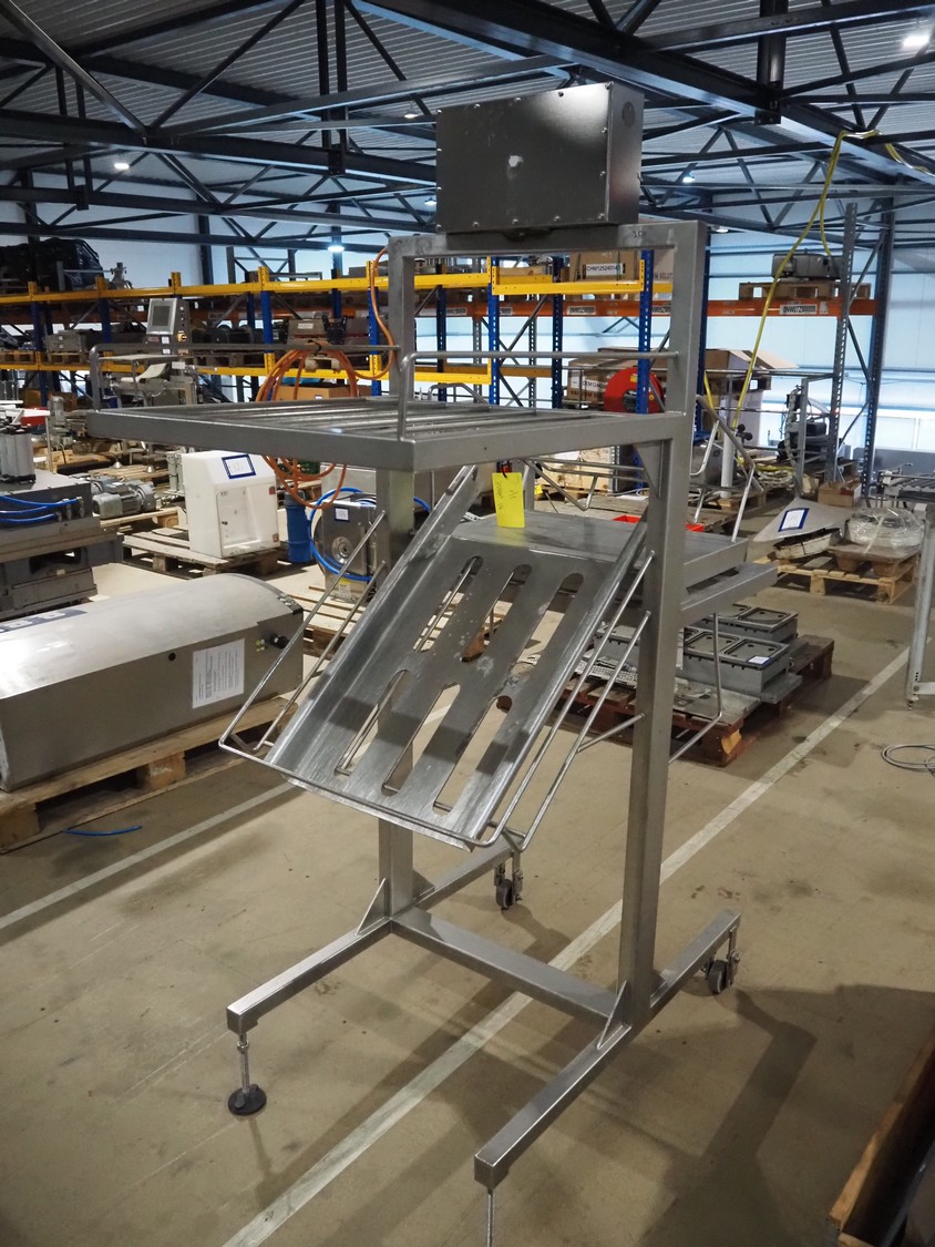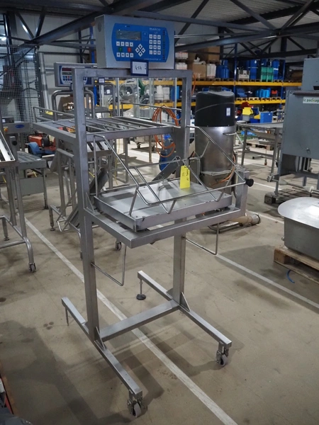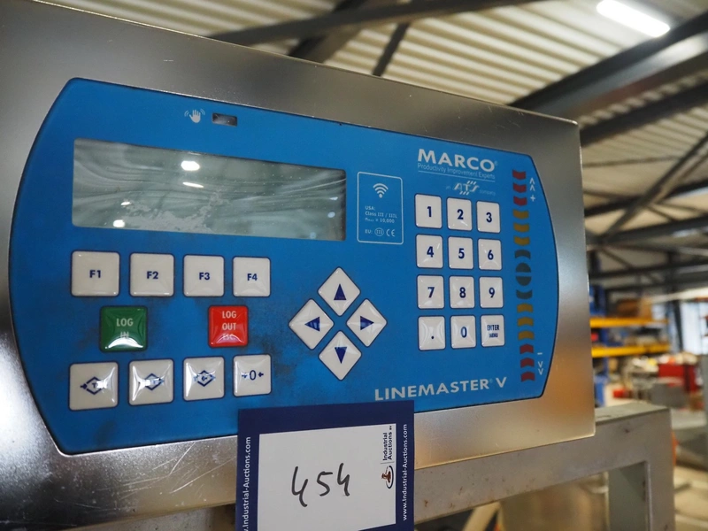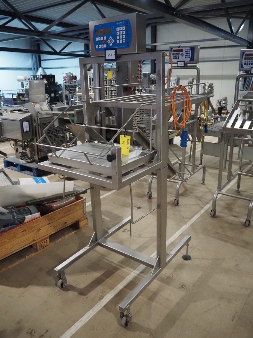 Marco weighing scale for crates on s/s frame, model: LINEMASTER IV, clearance: 540 mm x 500 mm, total dimensions: 1230 mm x 670 mm x 1910 mm.
