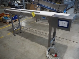 Transport belt on s/s rails, plastic belt, belt width: 400 mm, total dimensions: 3300 mm x 750 mm x 1250 mm.
