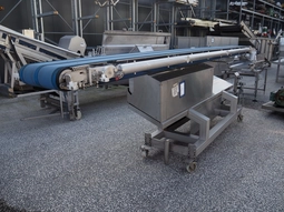 Mobile transport belt, s/s frame, plastic belt, belt width: 380 mm, total dimensions: 4700 mm x 980 mm x 1500 mm.