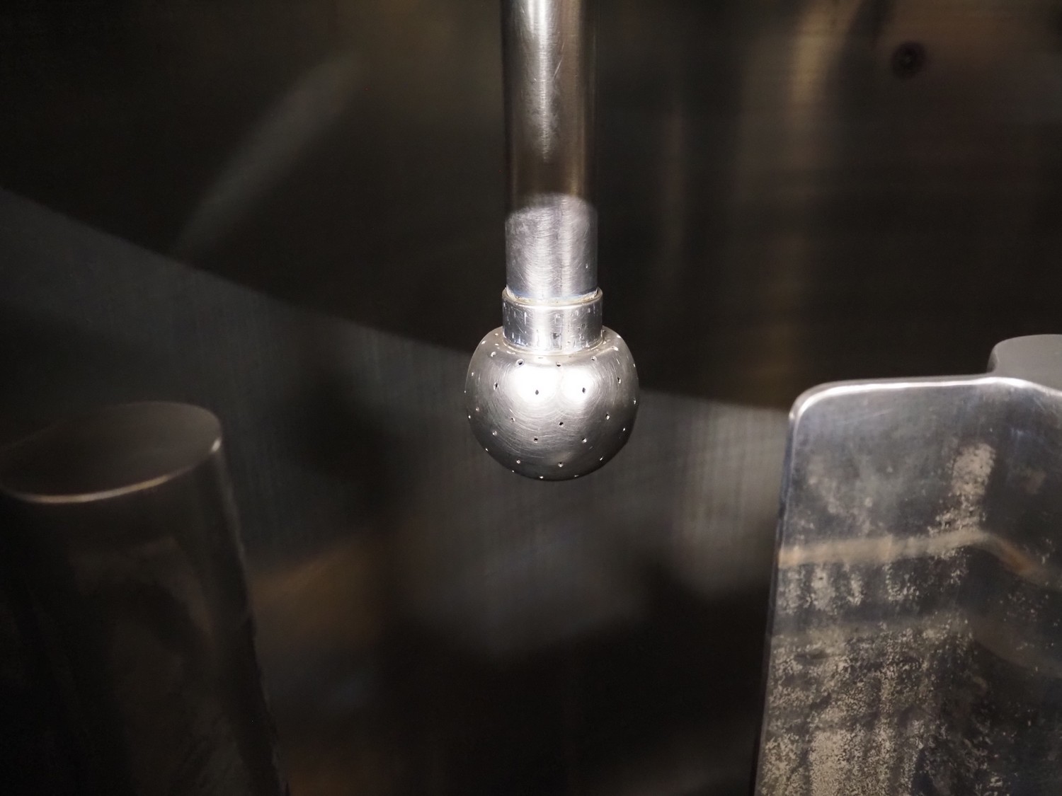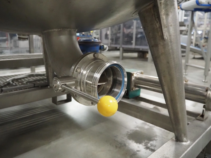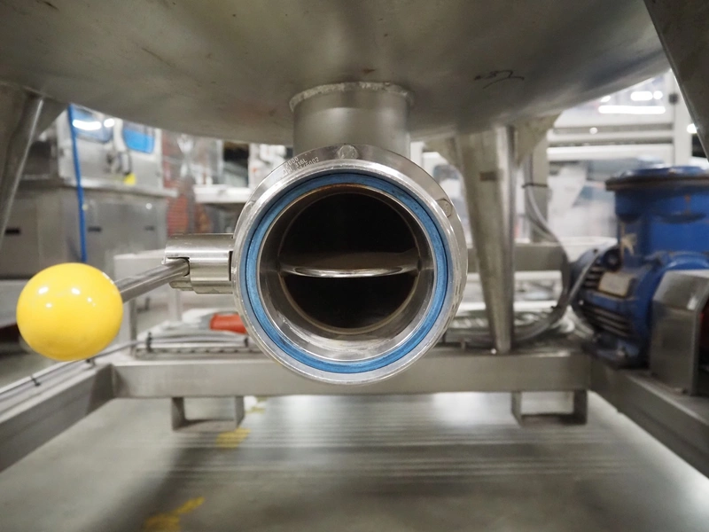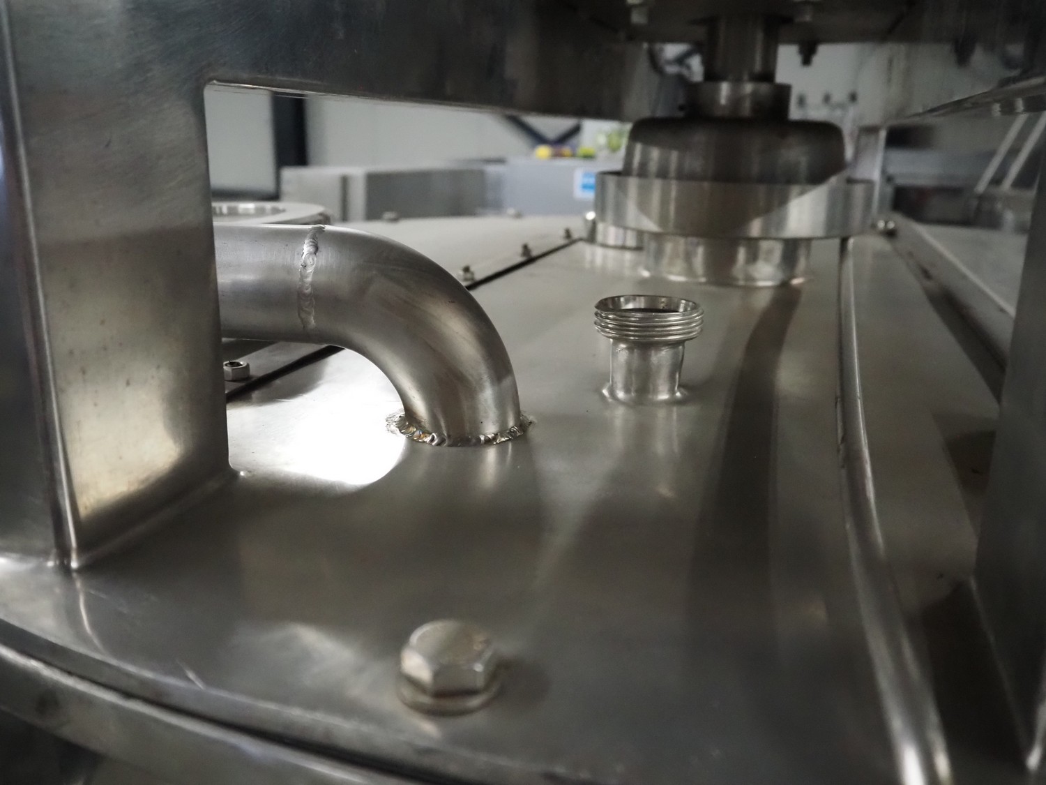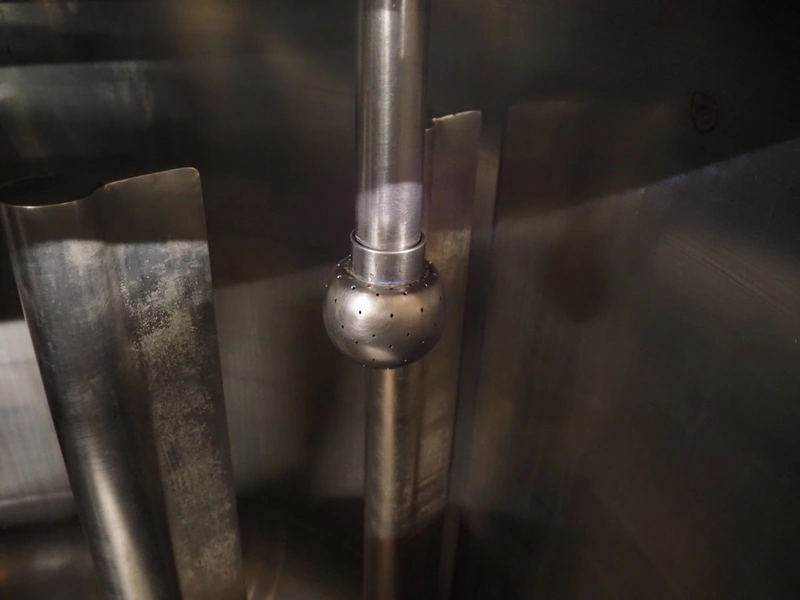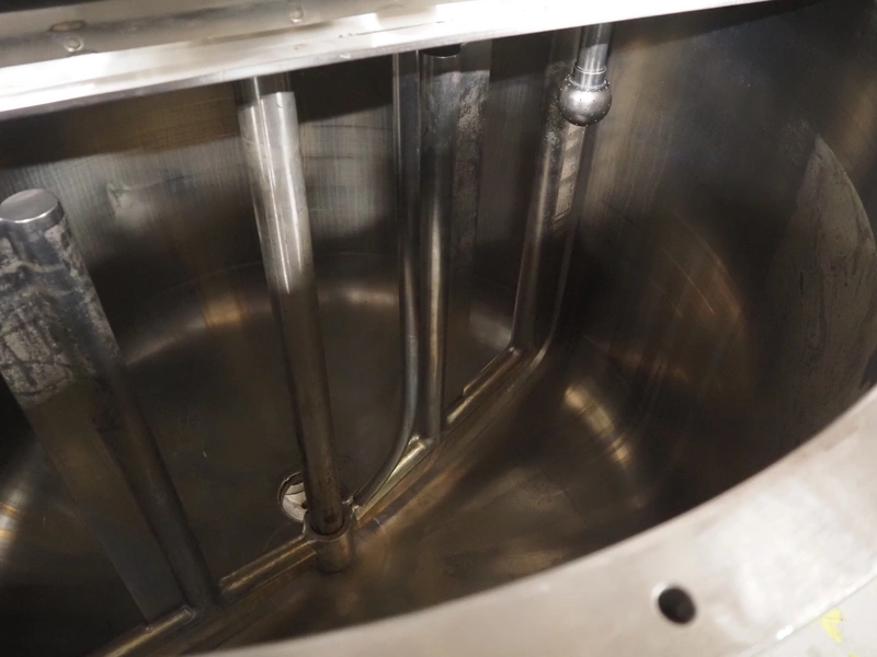S/s skid with mixing tank, inside dimensions: Ø 1200 mm x 1000 mm, total dimensions: 2000 mm x 1350 mm x 2500 mm.