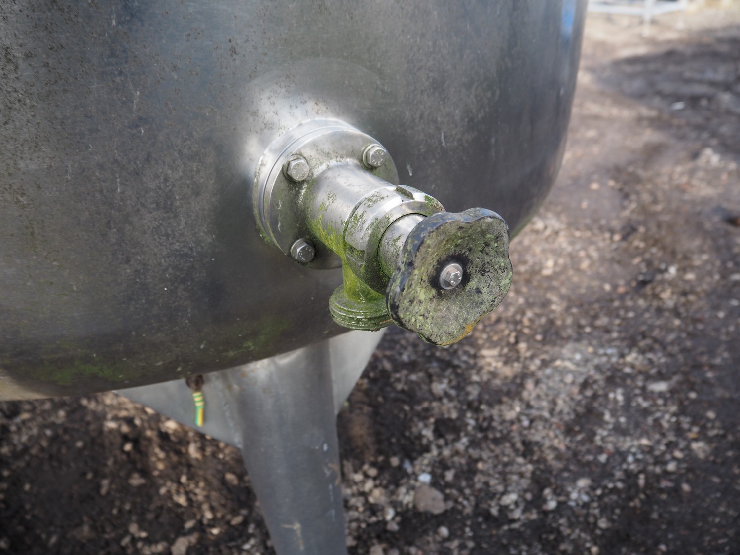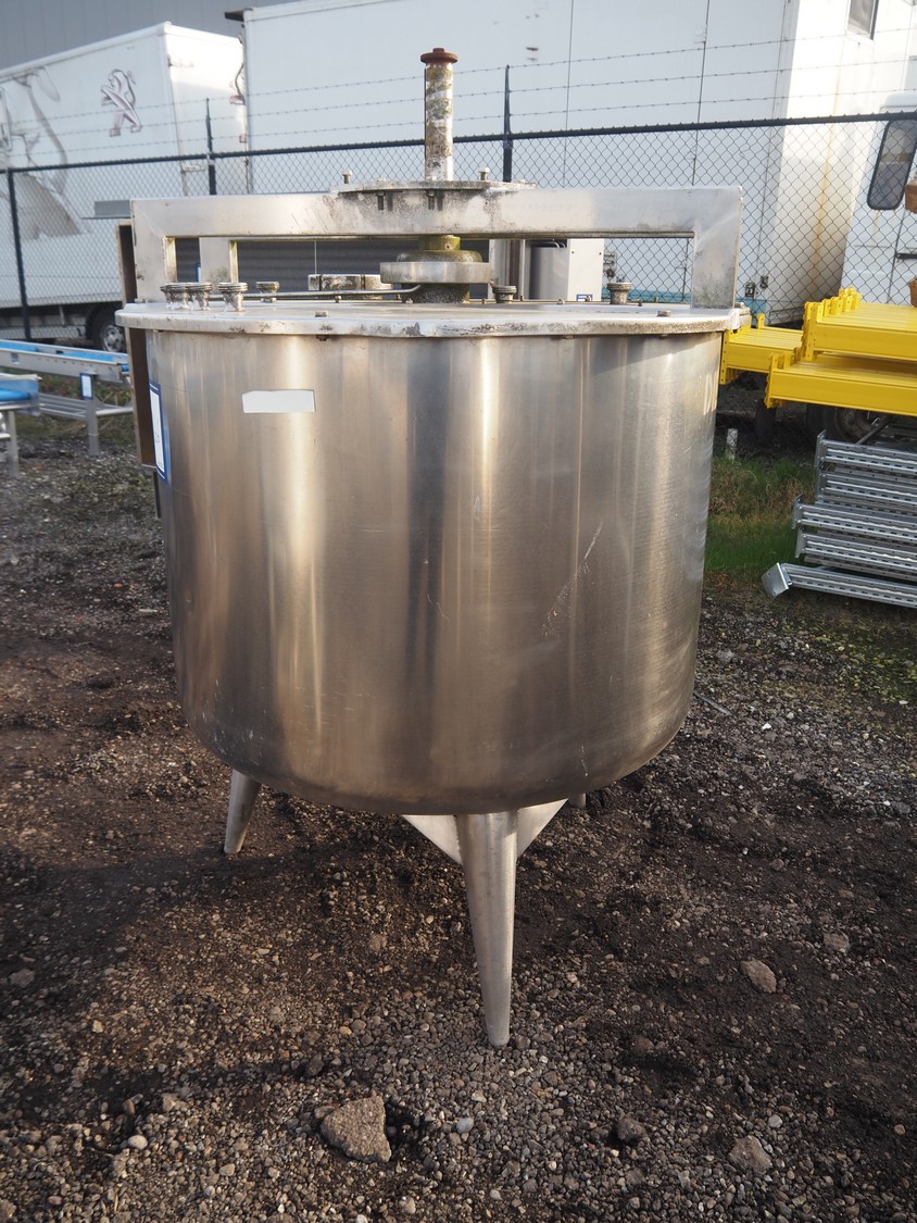 S/s mixing tank, inside dimensions: ø 1200 mm x 1000 mm, total dimensions: ø 1300 mm x 2000 mm. Missing motor.