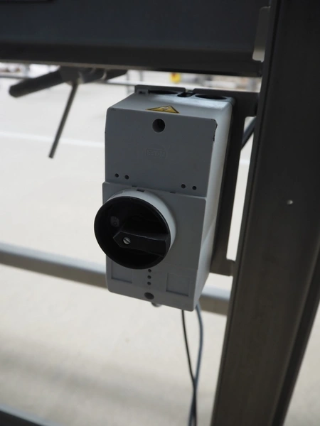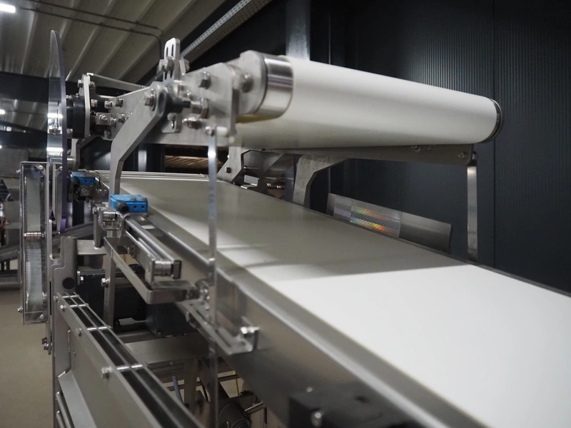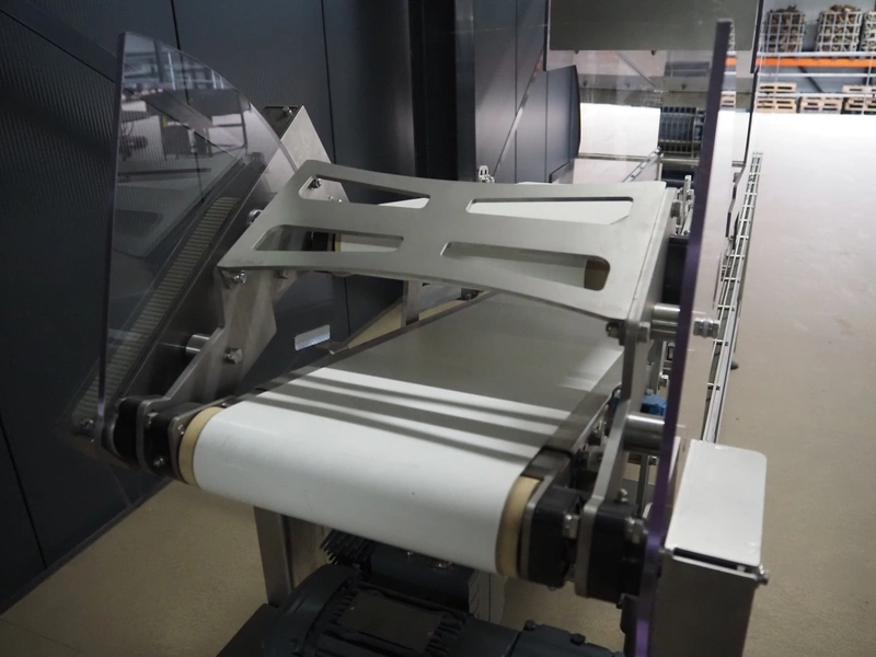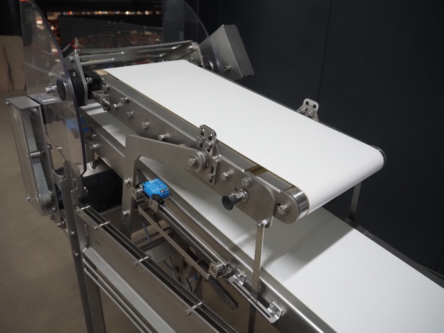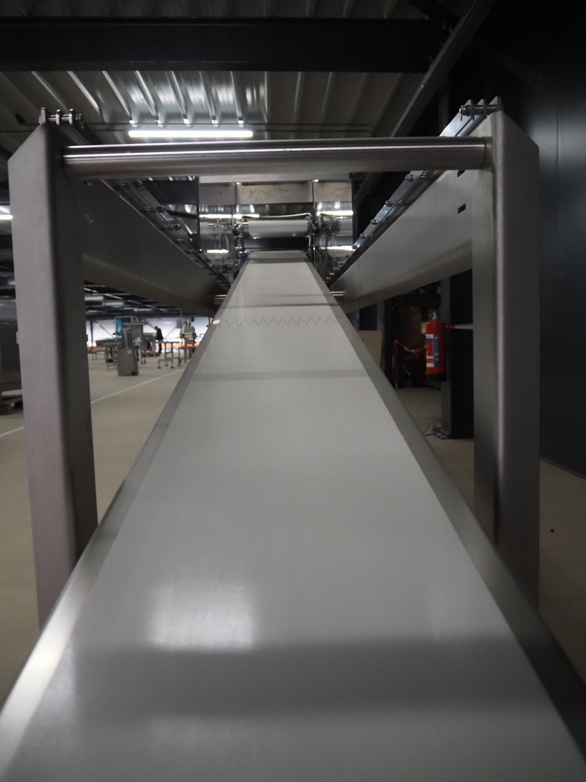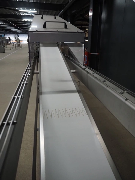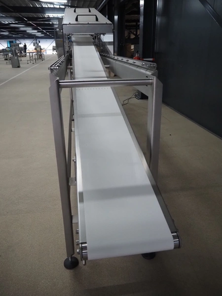 Hellings Machinebouw B.V. elevating belt, year of construction: 2016, plastic belt, belt width: 250 mm, elevating height: 1320 mm, total dimensions: 3650 mm x 600 mm x 1650 mm.