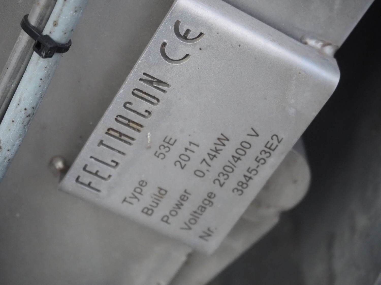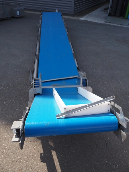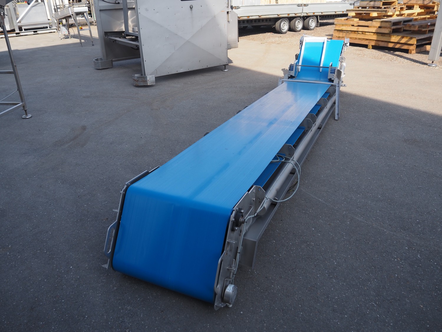 Feltracon elevating belt, type: 53E, number: 3845-53E2, year of construction: 2011, 230/400 V, plastic belt, belt width: 600 mm, total dimensions: 5200 mm x 900 mm x 720 mm.