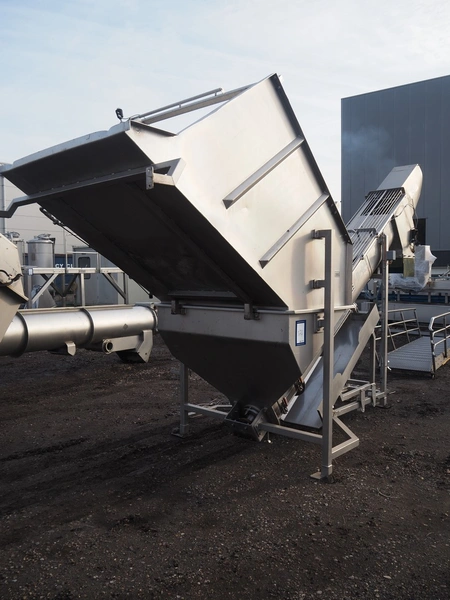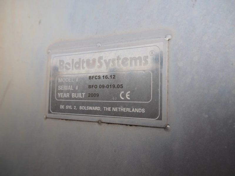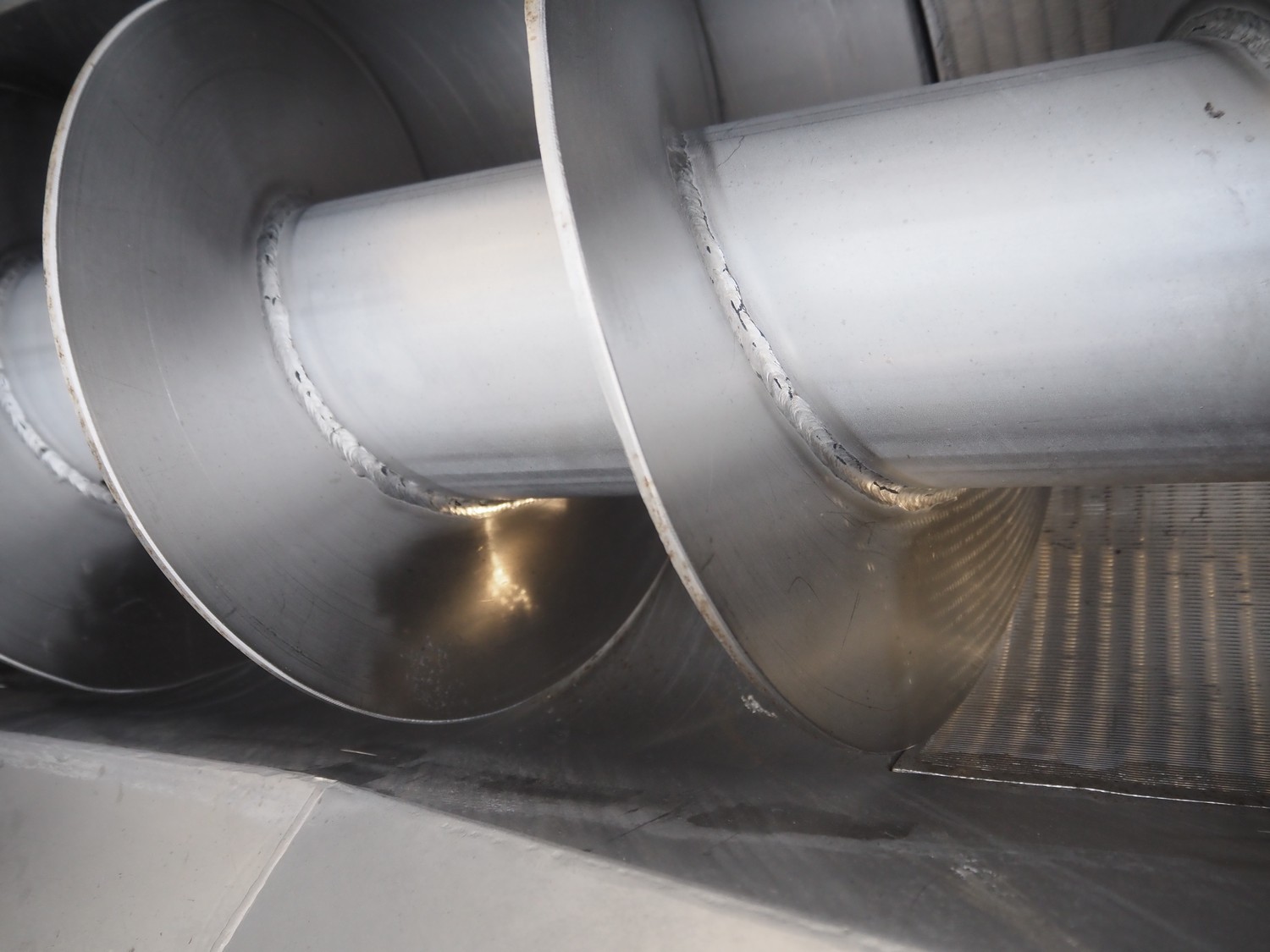 Boldt Systems elevating screw, type: BFCS 16/12, serial number: BFO 09-019.05, year of construction: 2009, s/s screw, diameter screw: 370 mm, tier: 220 mm, elevating height: 1900 mm, total dimensions: 3800 mm x 2000 mm x 3400 mm.