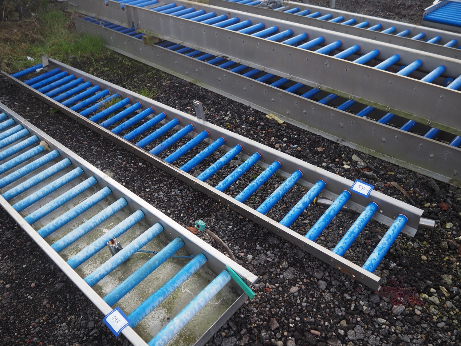 Food Technology driven roller conveyor, plastic rollers, roller width: 400, total dimensions: 6350 mm x 600 mm x 350 mm.