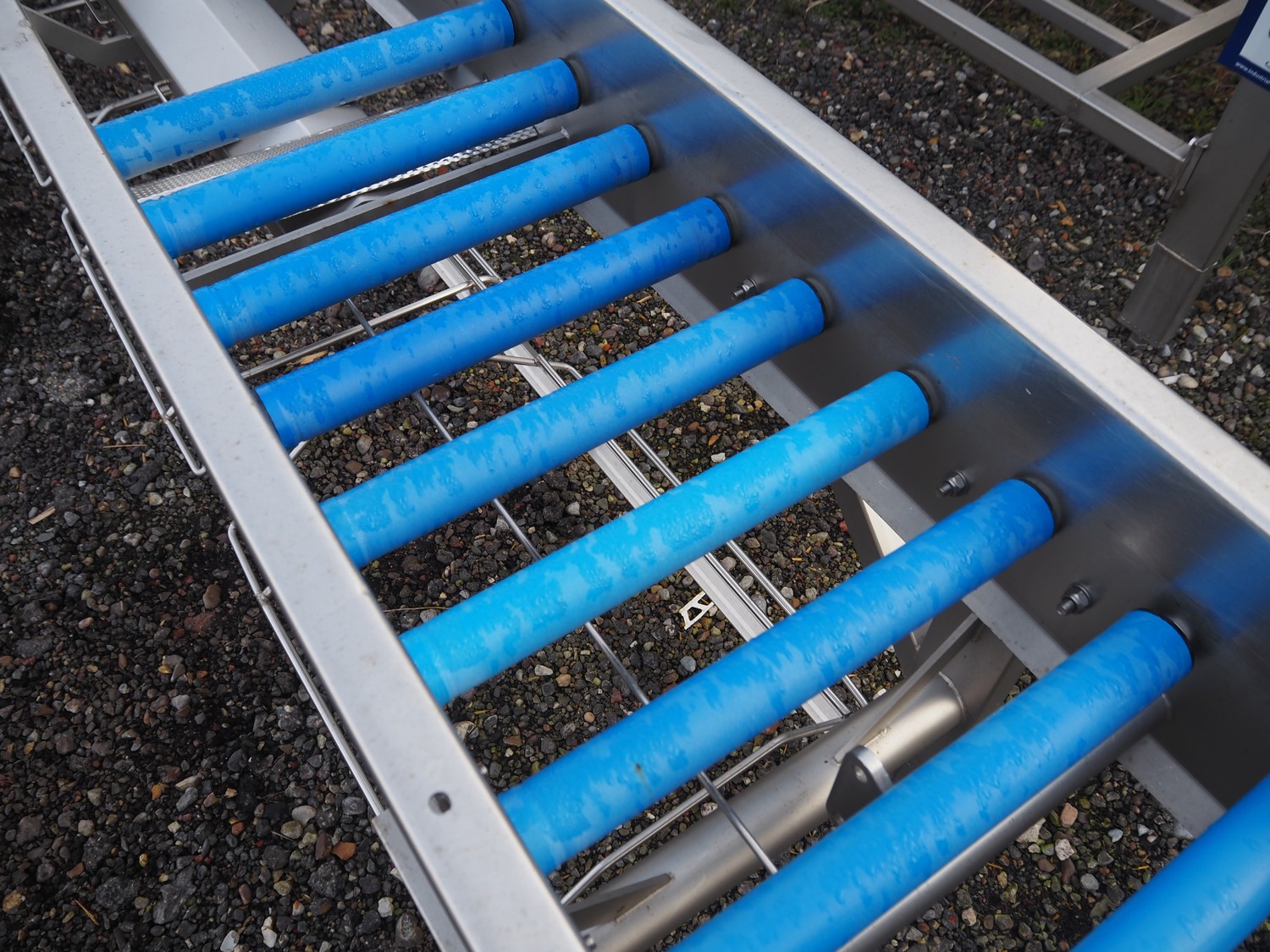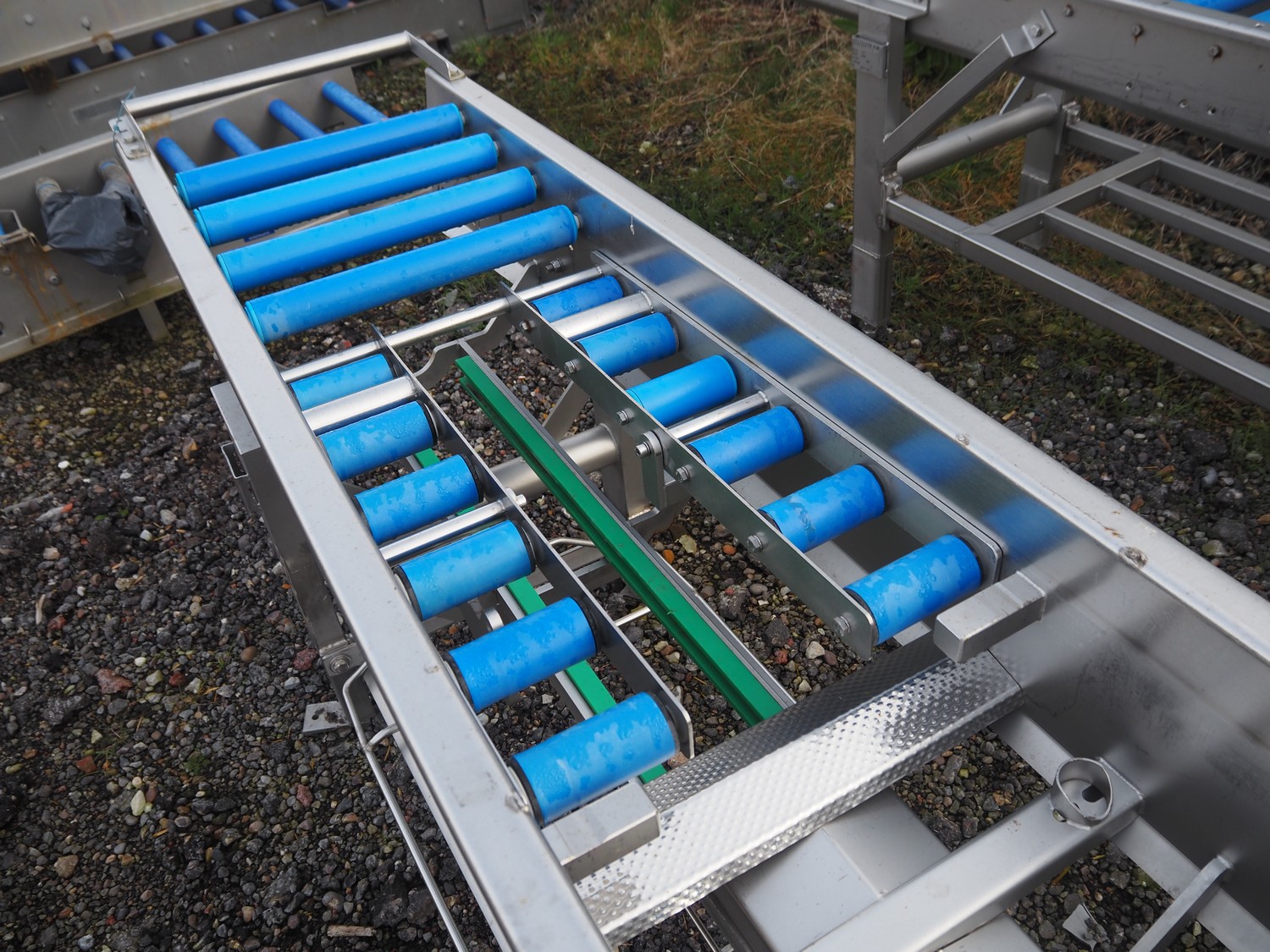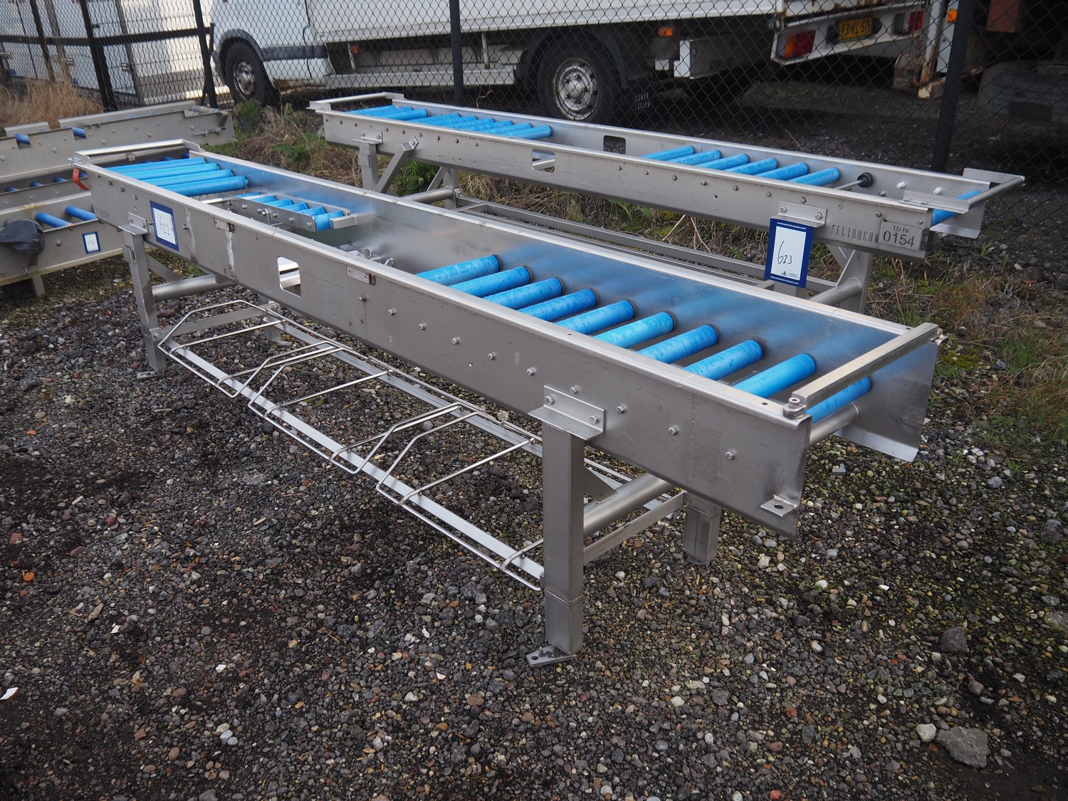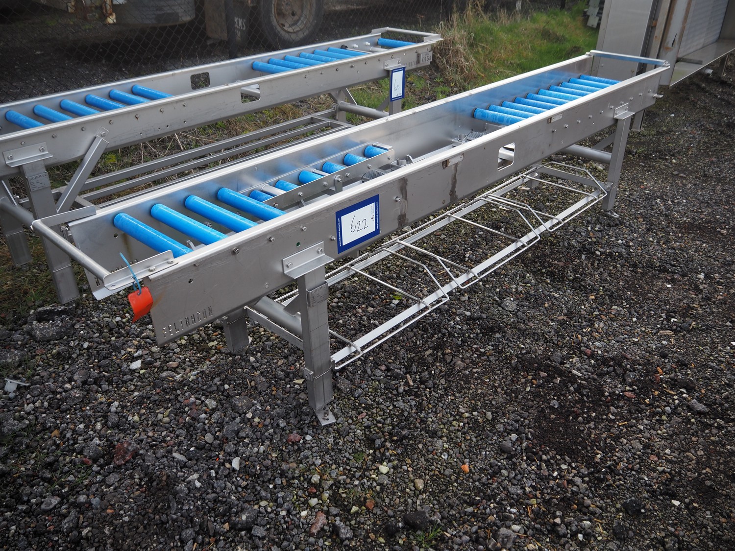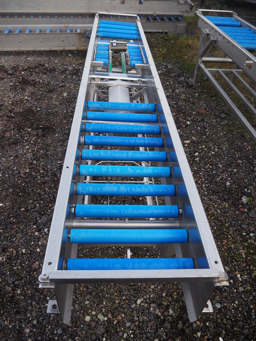 Feltracon roller conveyor, s/s frame, type: 72K, number: 3580-72K1, year of construction: 2008, plastic rollers, roller width: 400 mm, total dimensions: 3100 mm x 500 mm x 800 mm.