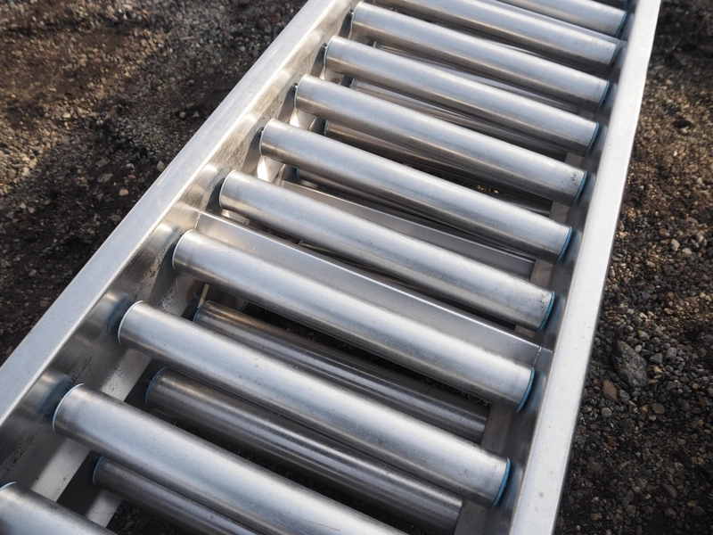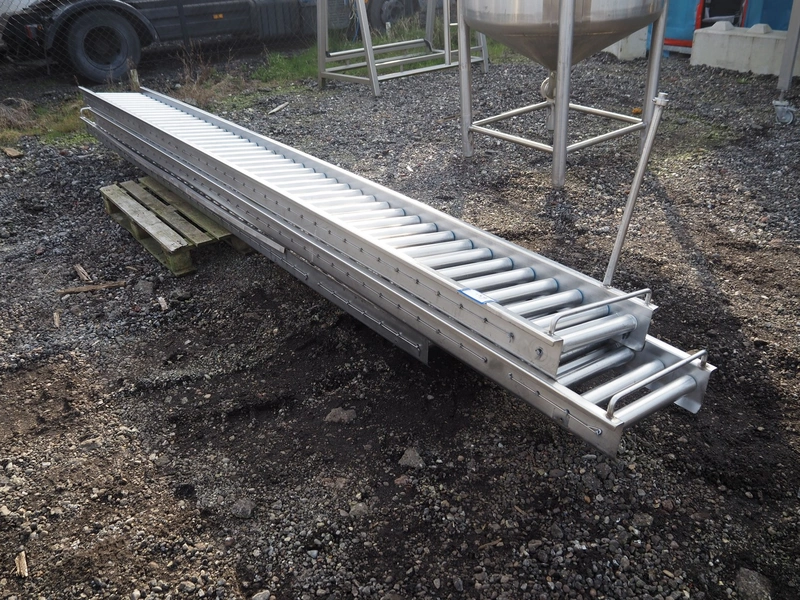 3 roller conveyors, s/s rollers, roller width: (3x) 400 mm, total dimensions: 13000 mm x 500 mm x 200 mm.