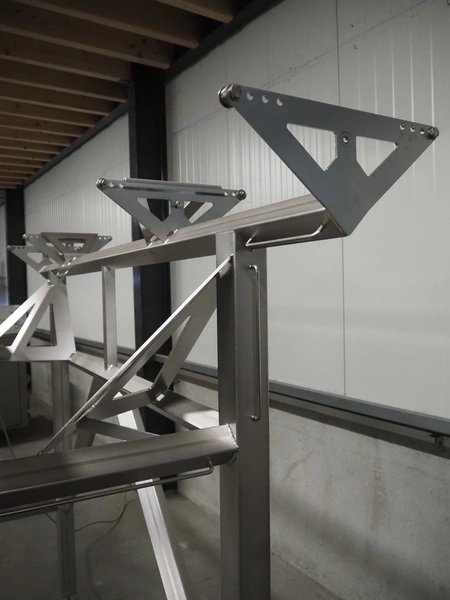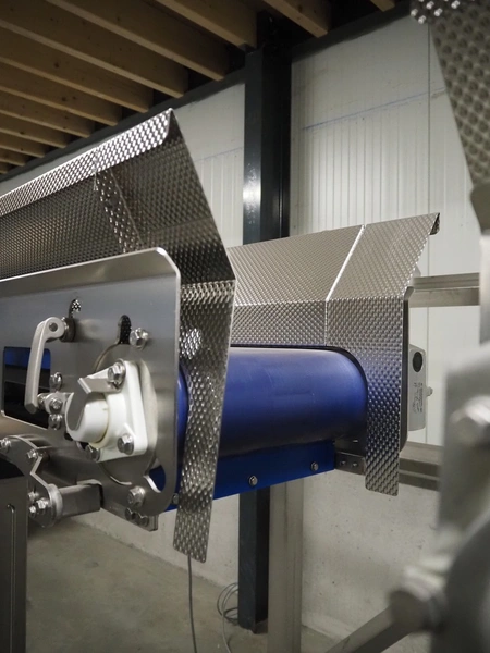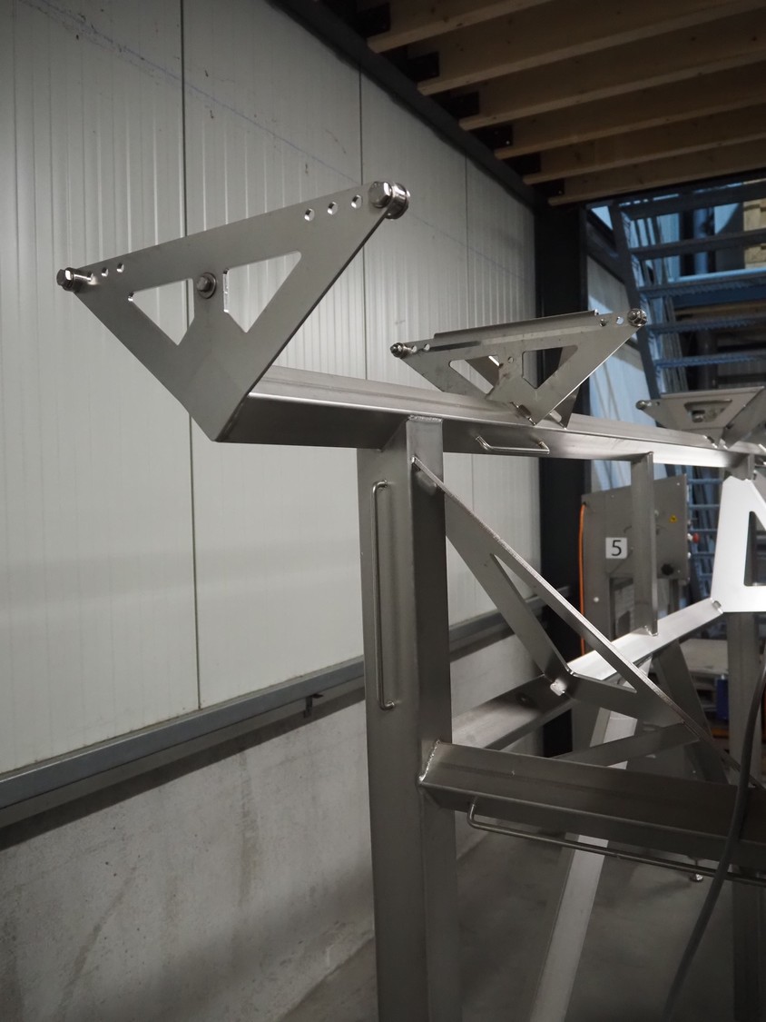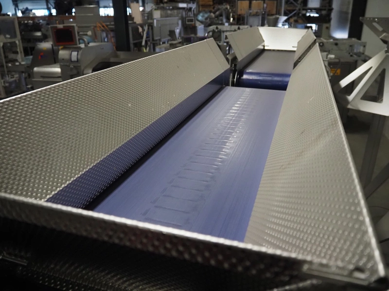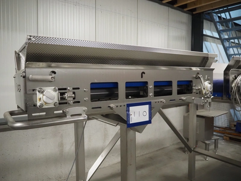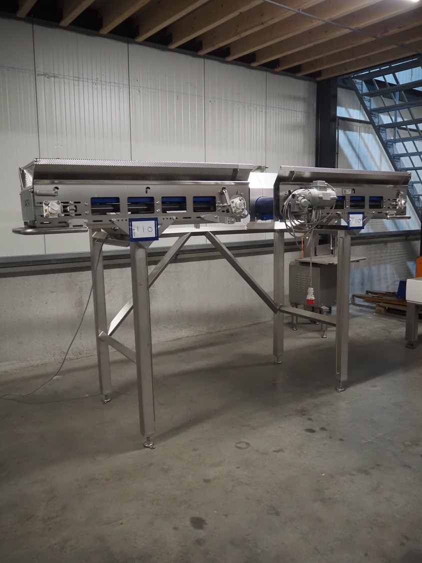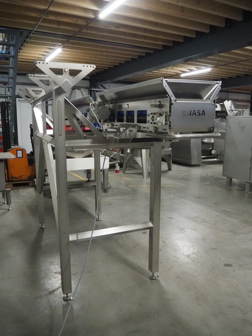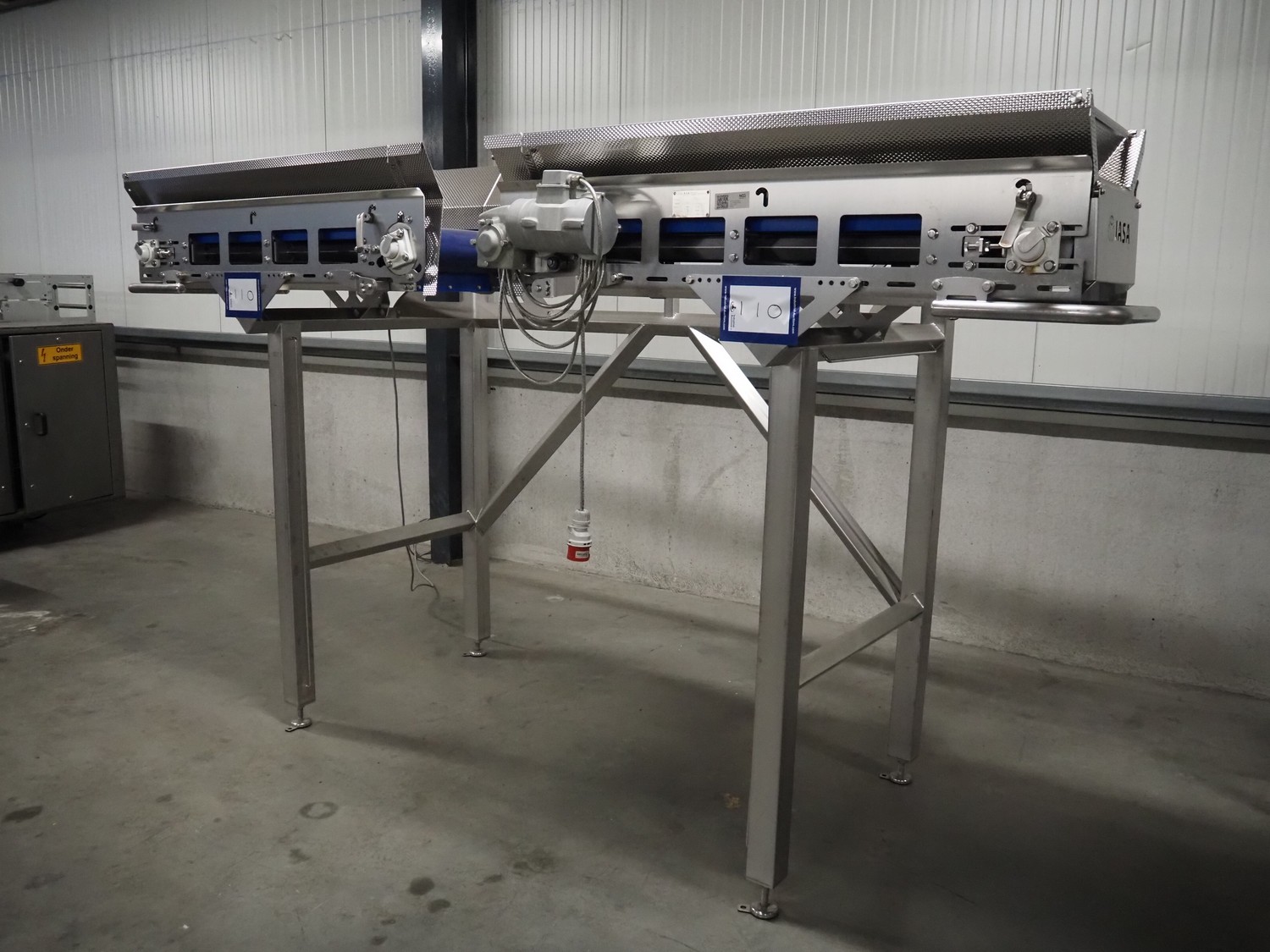 Jasa Packaging Solutions double transport belt on s/s frame, model: 19100060300000, machine number: 14666, year of construction: 2019, 230 V, 3 Ph, 0.37 kW, 1.7 A, weight: 110 kg, belt width: (2x) 350 mm, belt length: (2x) 1400 mm, total dimensions: 3400 mm x 1450 mm x 2000 mm.