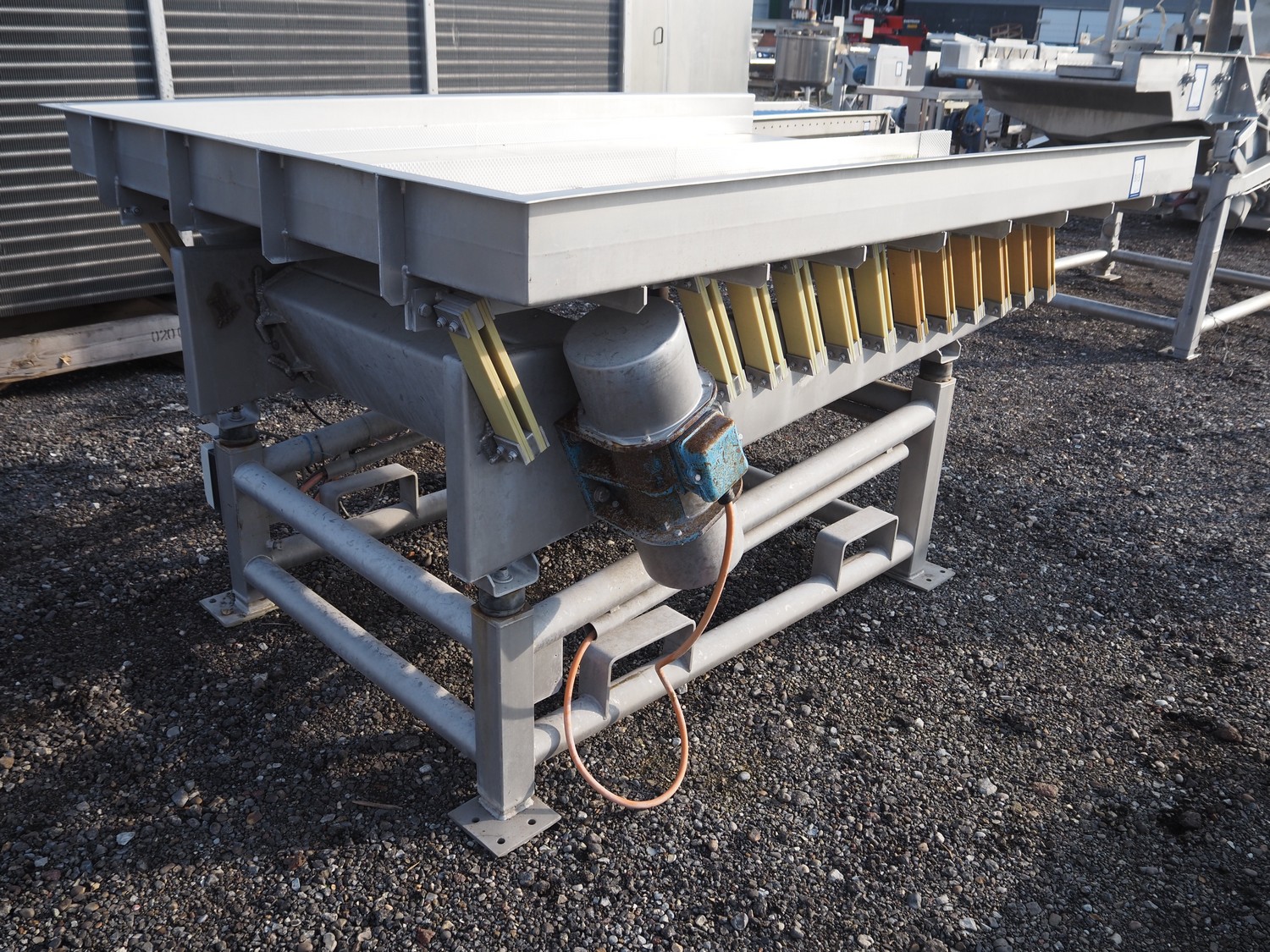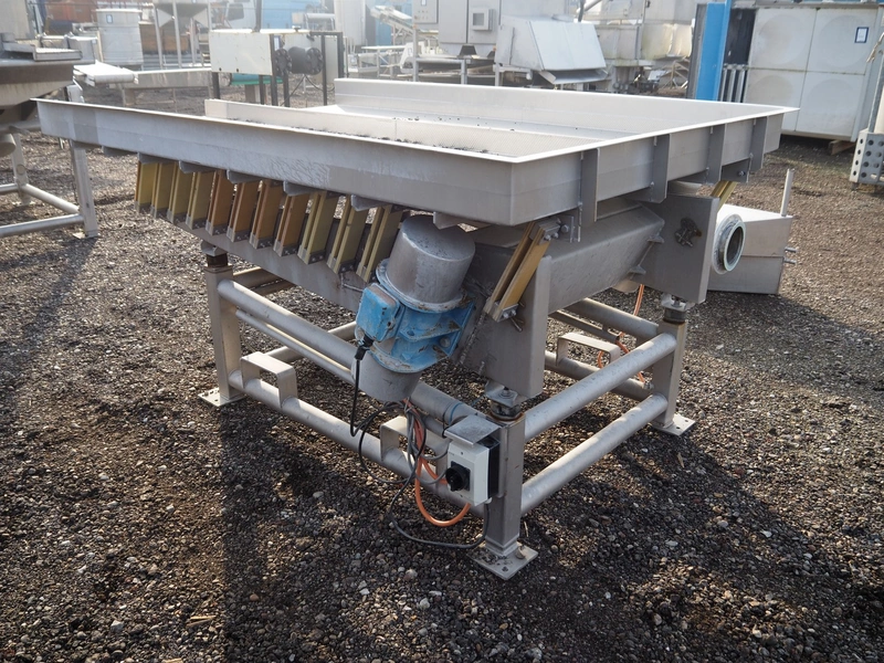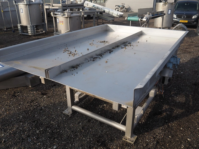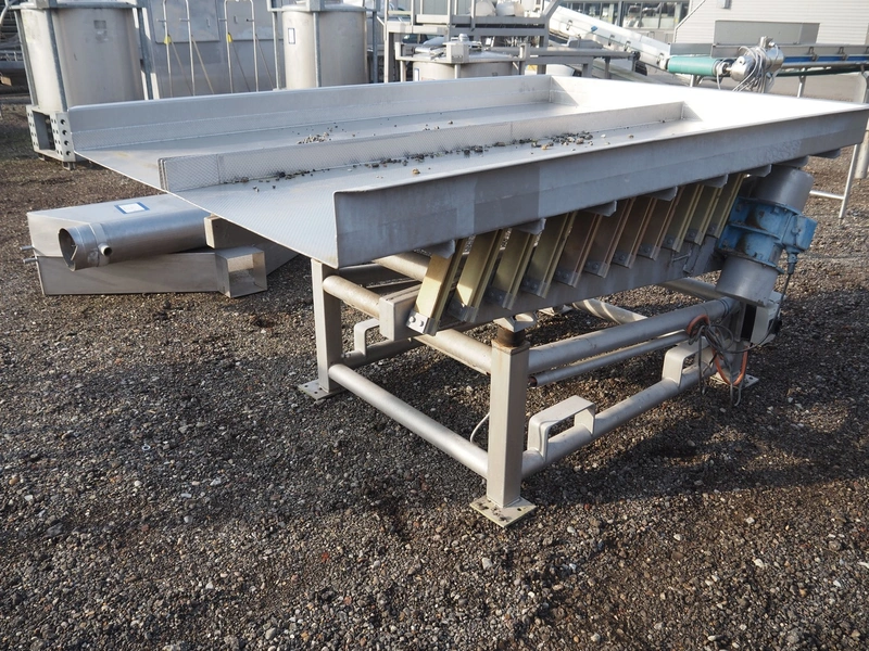 S/s vibrating gutter, gutter width: (2x) 750 mm, total dimensions: 2400 mm x 1630 mm x 1180 mm.
