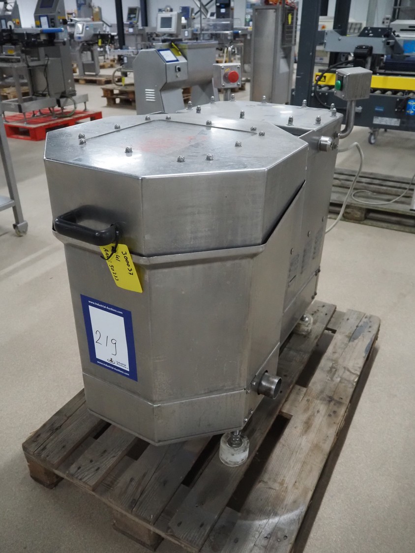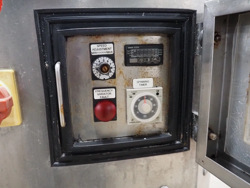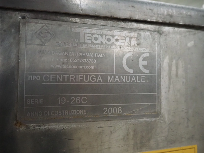 Tecnoceam salad spinner, type: CENTRIFUGA MANUALE, serie: 19-26C, year of construction: 2008, inside dimensions: Ø 420 mm x 300 mm, total dimensions: 1120 mm x 590 mm x 950 mm. Without baskets.
