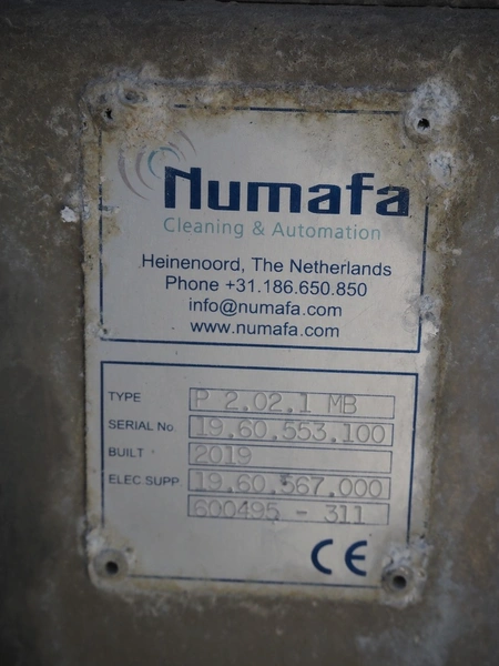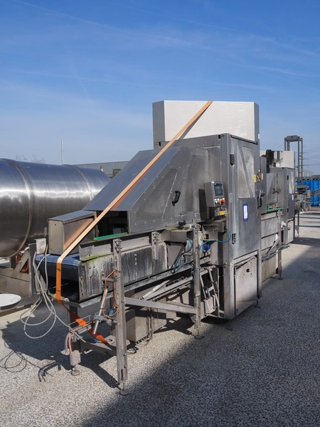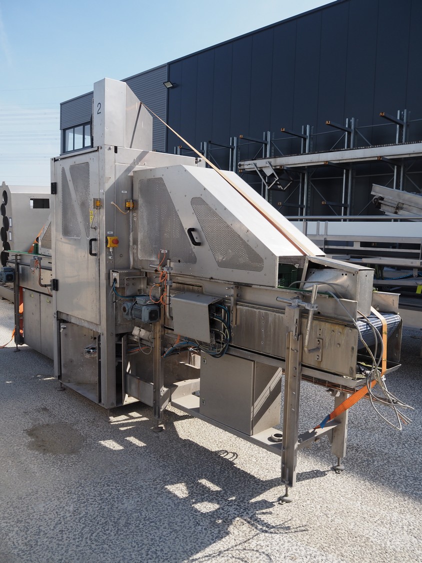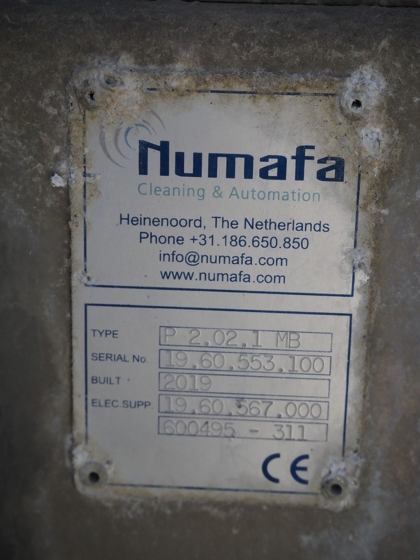 Numafa crate dryer, type: P 2.0.2.1 MB, serial number: 19.60.553.100, year of construction: 2019, plastic mesh belt, belt width: 450 mm, total dimensions: 5000 mm x 1000 mm x 2700 mm.