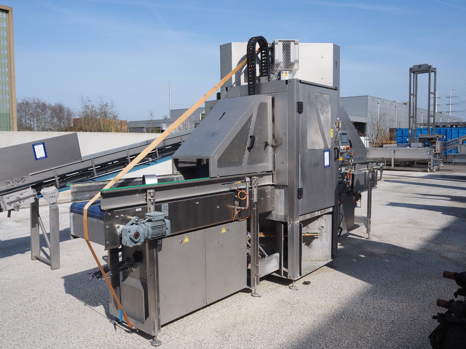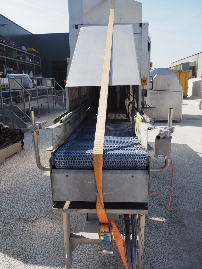 Numafa crate dryer, type: P 3.02 V.CENT, serial number: 19.60.566700, year of construction: 2019, plastic mesh belt, belt width: 450 mm, total dimensions: 5000 mm x 1000 mm x 2700 mm.